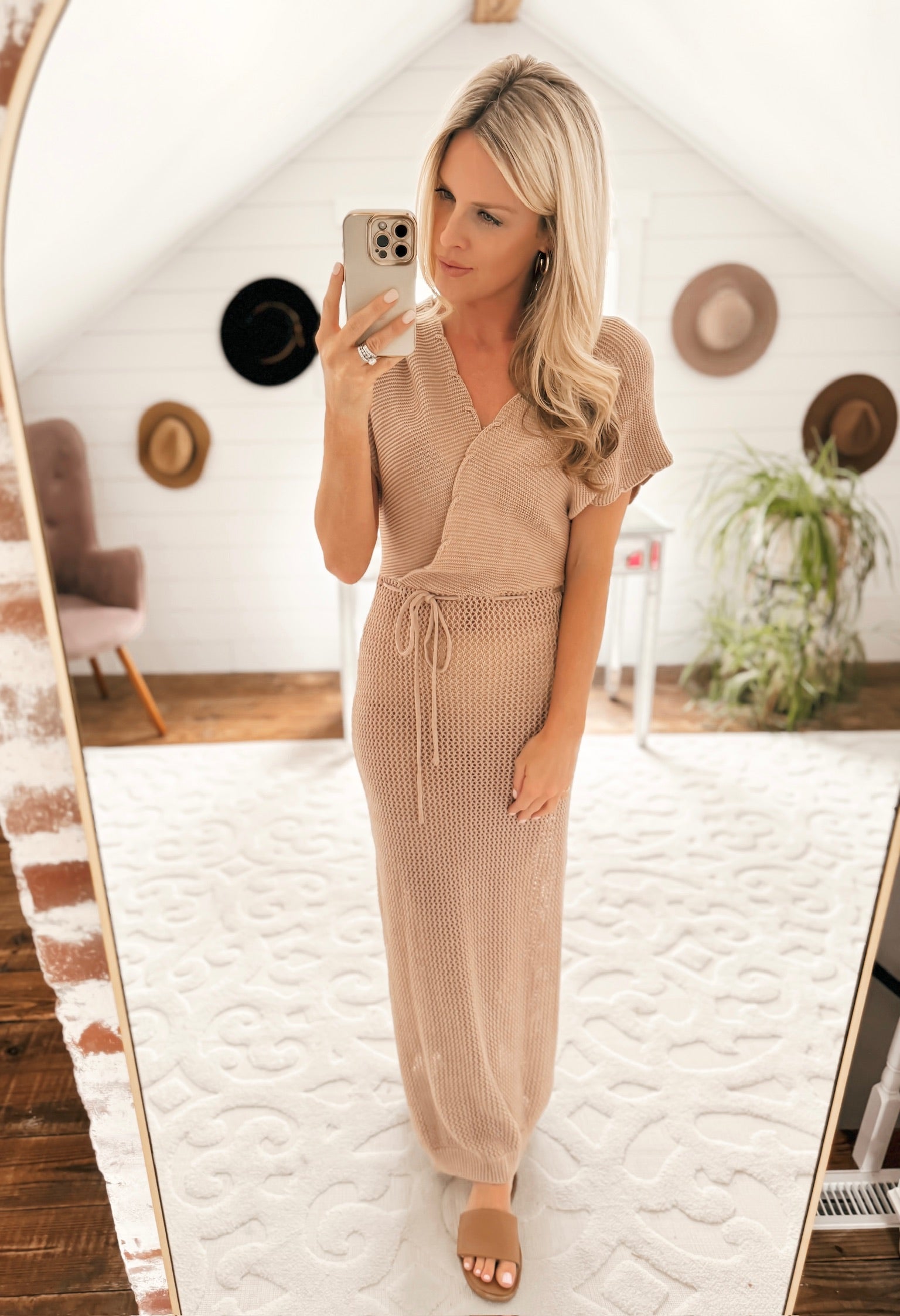 Beach Crush Taupe Open-Knit Cover Up Dress