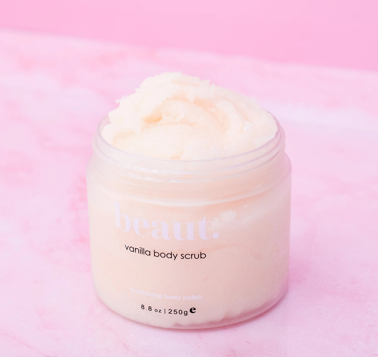 To use: In the shower, apply to wet skin in circular motions. Let it sit for 2 minutes after scrubbing. Rinse and pat skin dry with a towel. Follow up with the beaut. body oil for an extra luxurious experience.