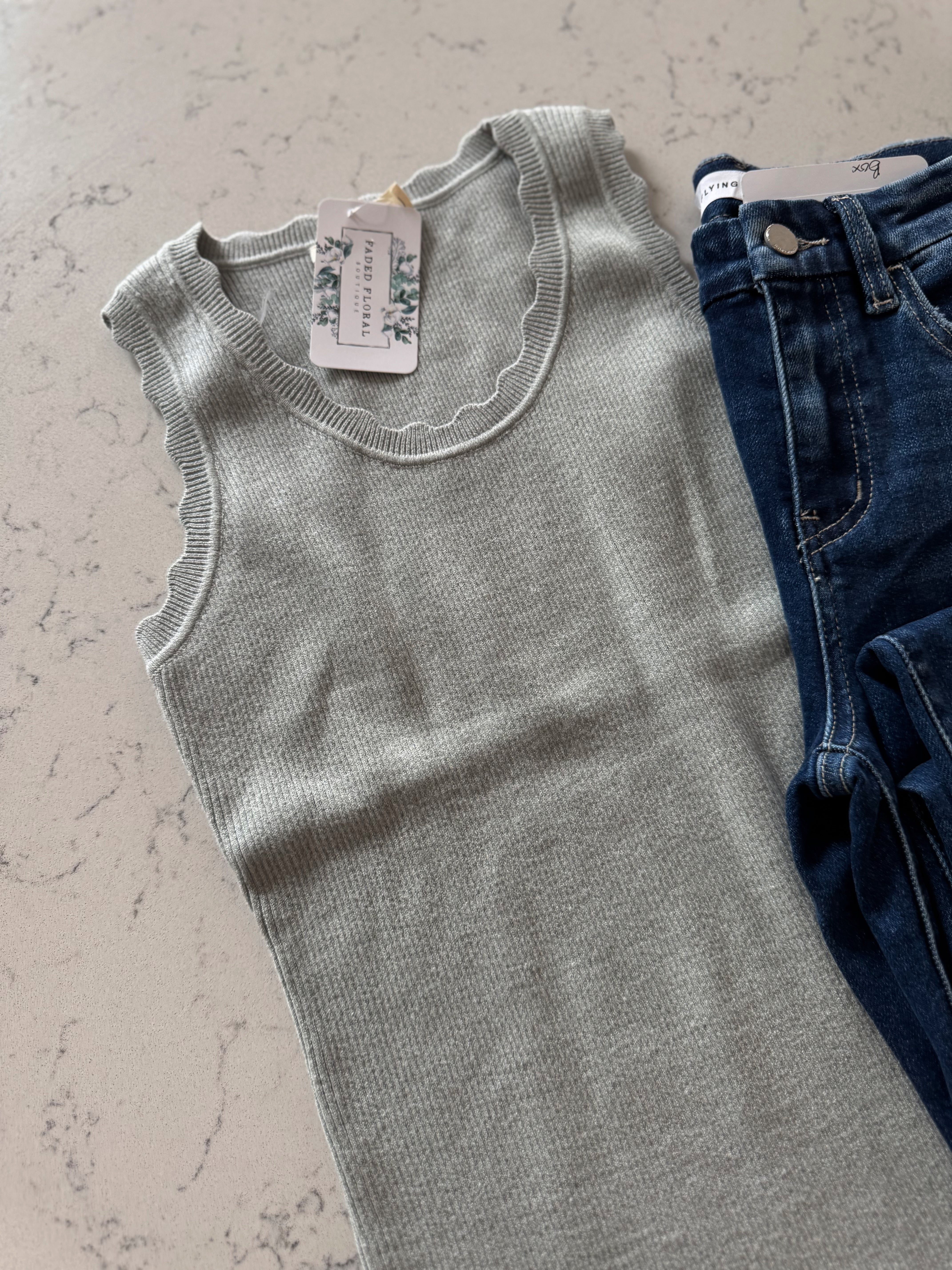 Becky Pistachio Scalloped Scoop Neck Tank