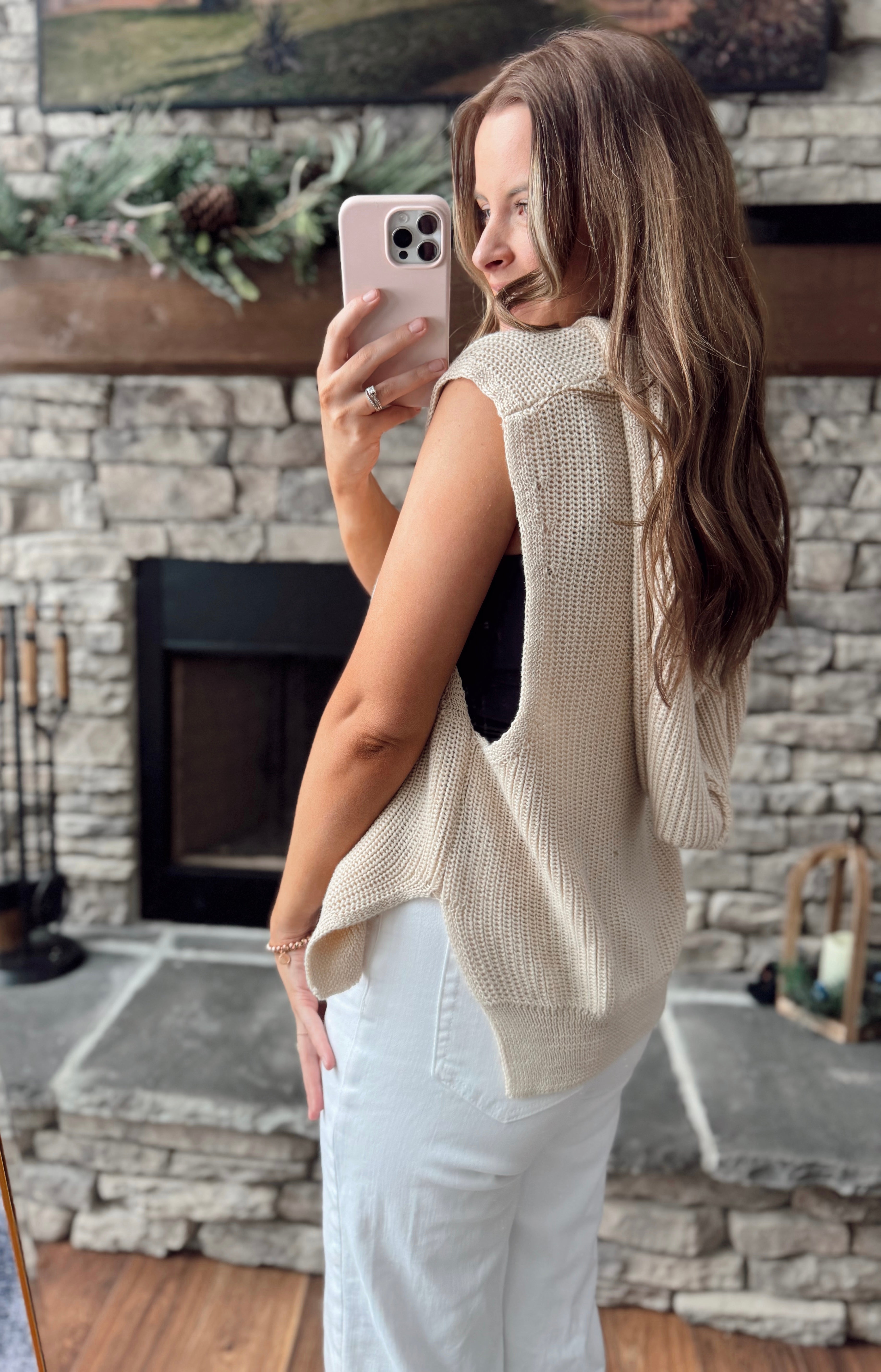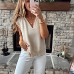 Bennett Natural V Neck Hooded Sleeveless Sweater
