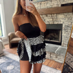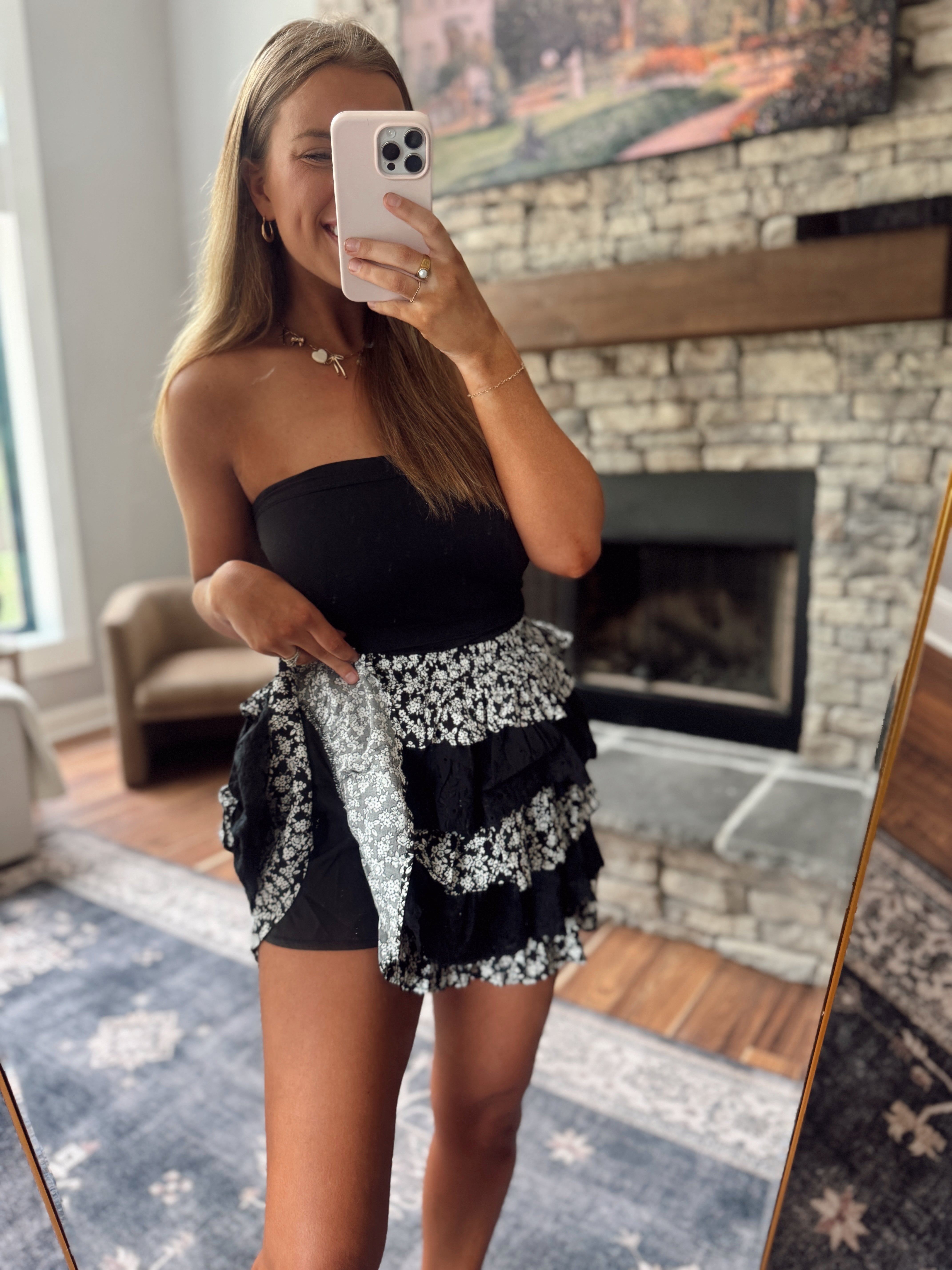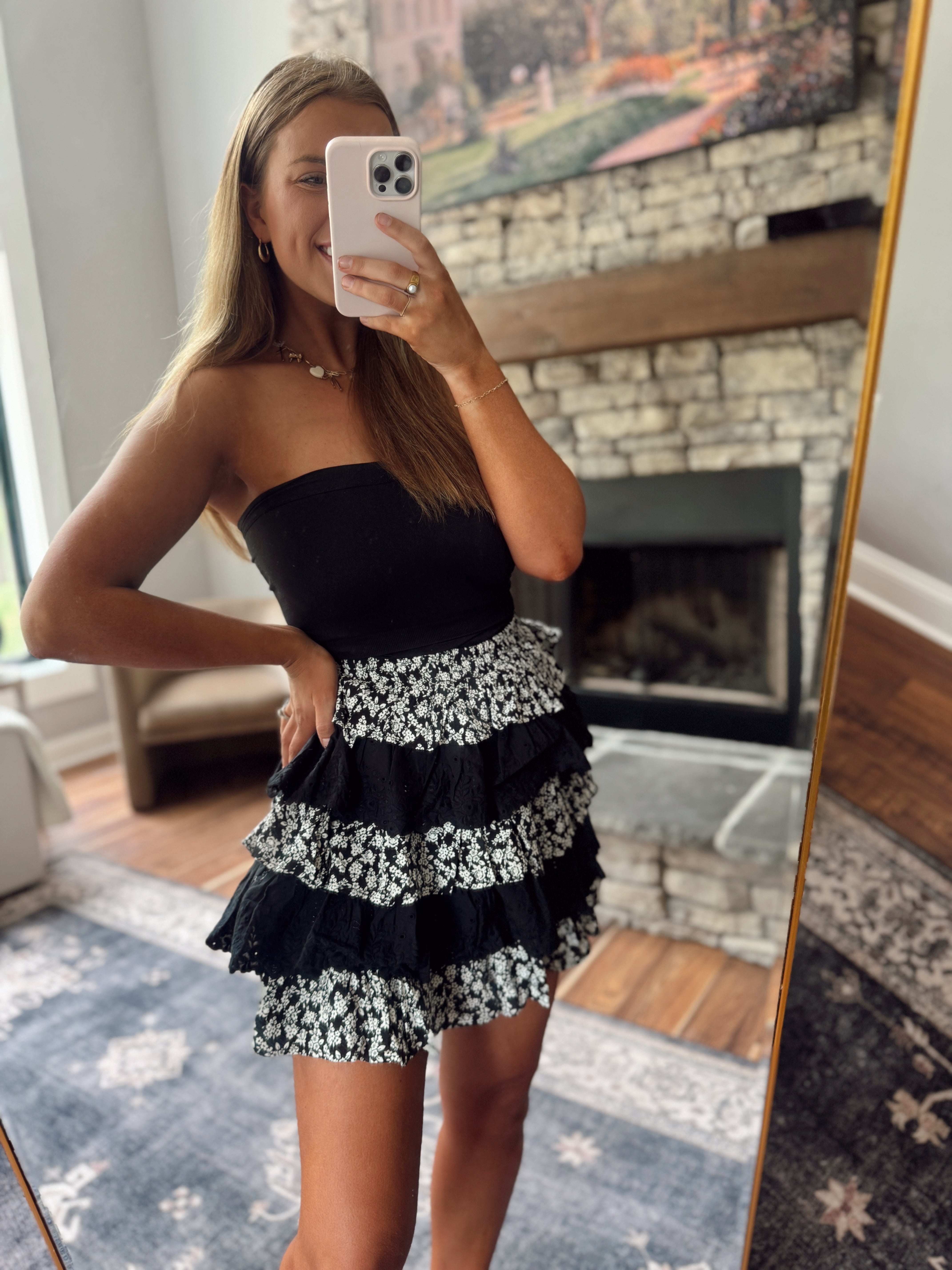 Black Annette Floral Tiered Ruffle Mini Skirt