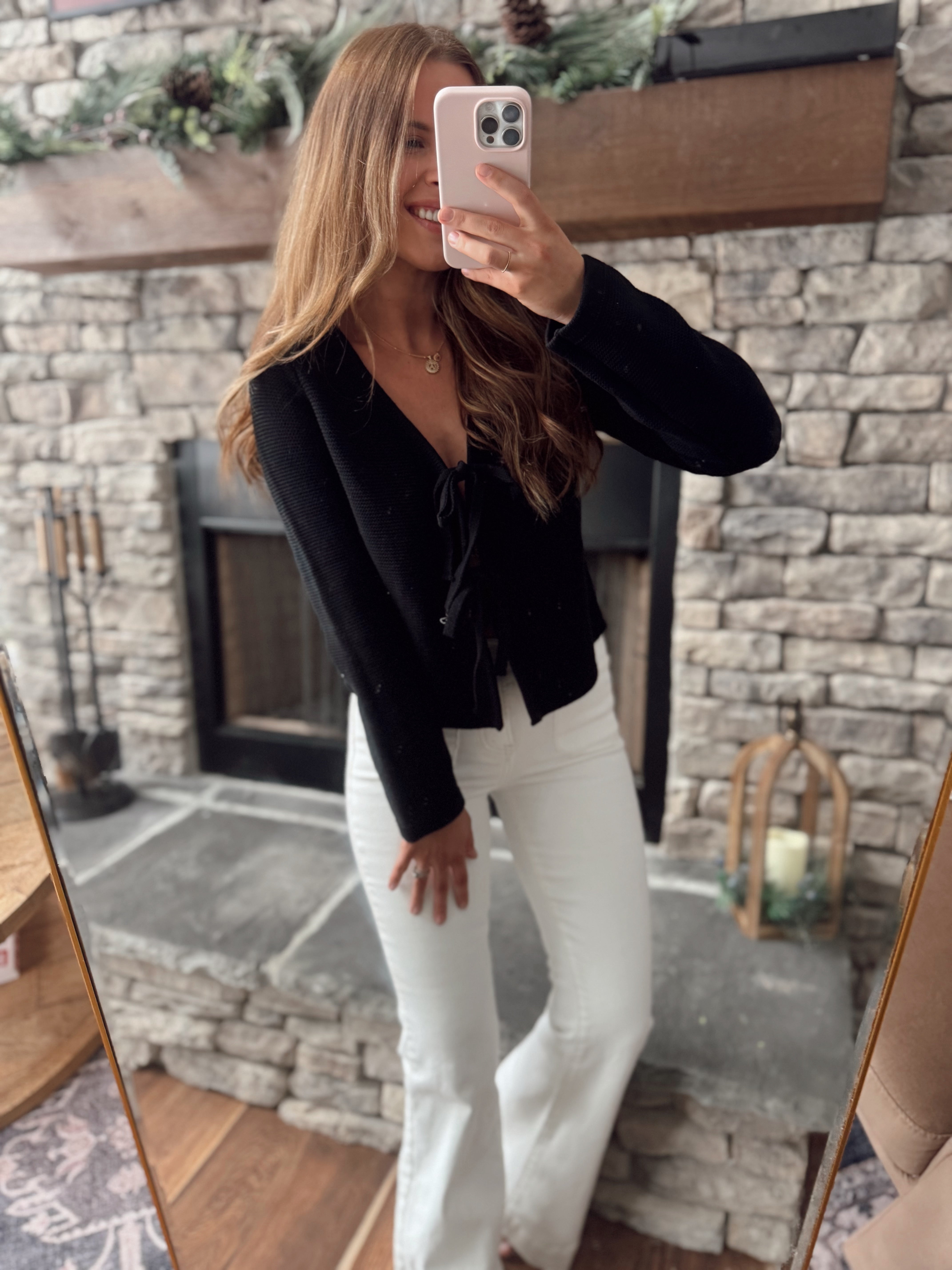 Black Gorgina Tie Front Knitted Cardigan