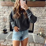 So soft! Fleece inside but still lightweight. Relaxed fit.