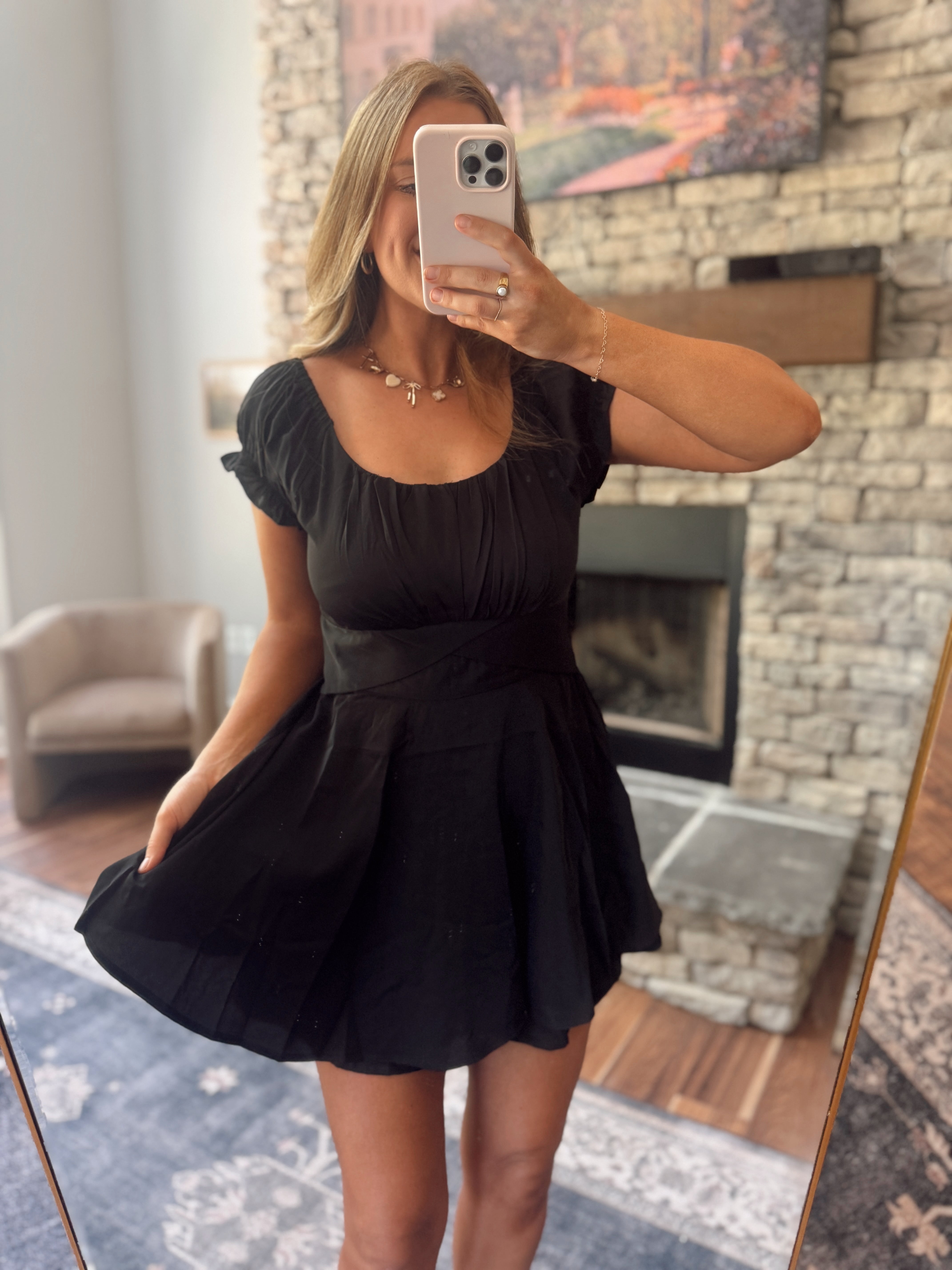 This black version is giving chic, easy, and totally timeless. From dinner dates to girl’s night, she’s that go-to.
