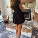 Black Puff Sleeve Tie Waist Romper
