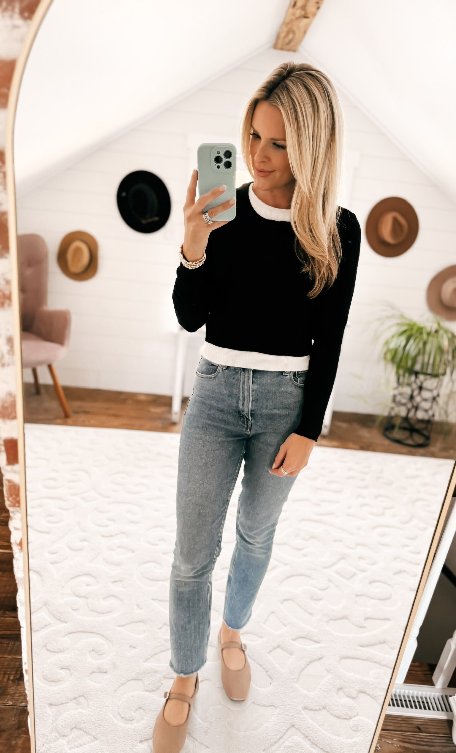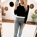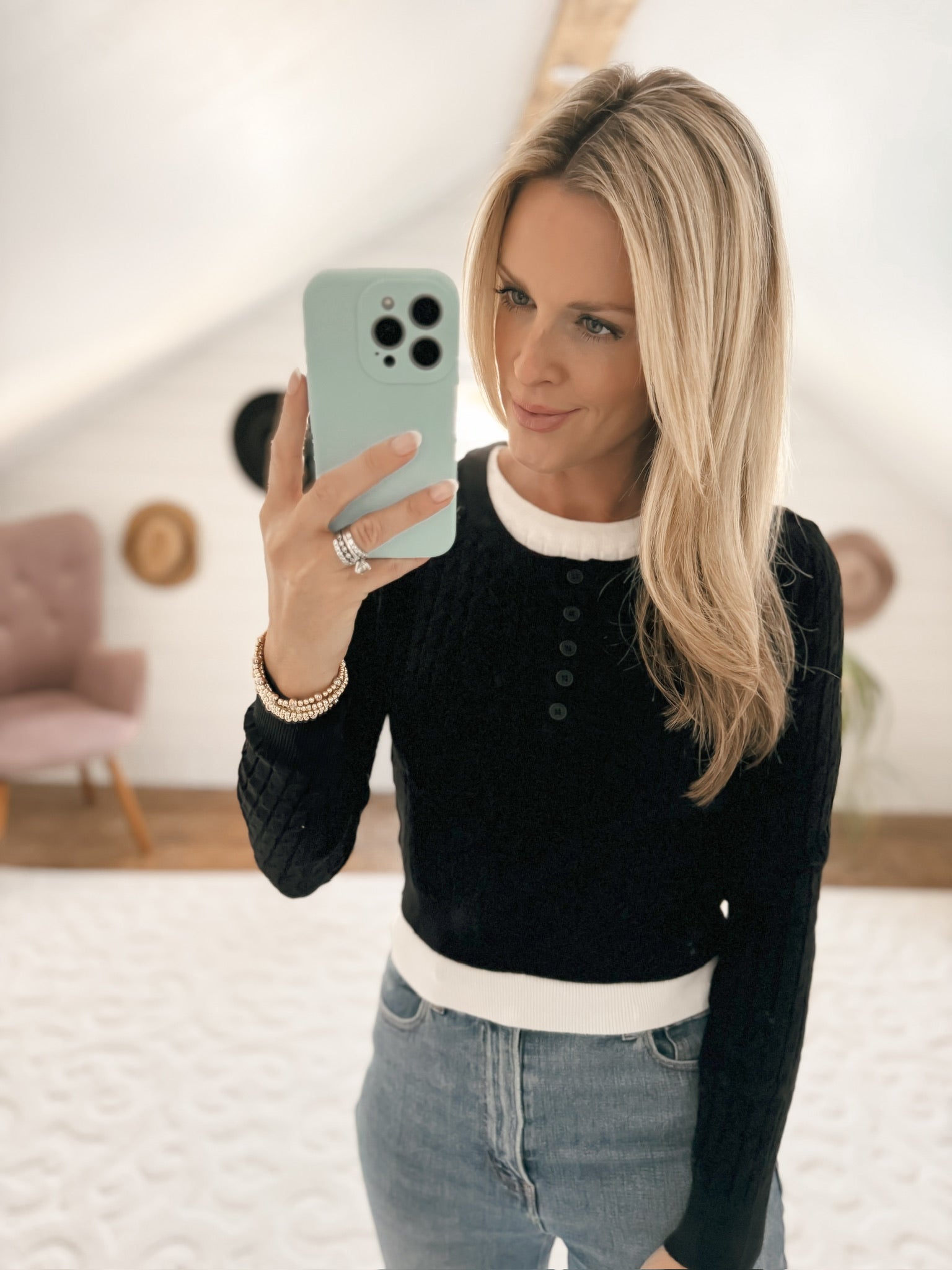 Black Smarty Pants Cable Knit Henley layered Sweater