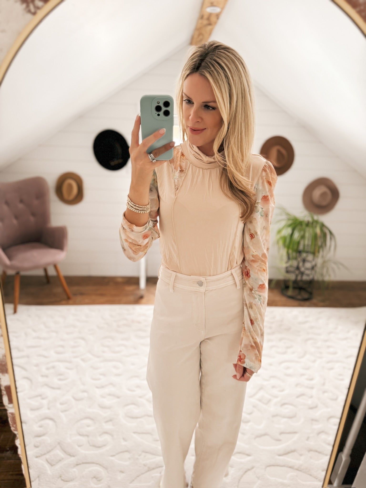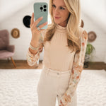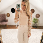 Blooming Hues Almond Multi Mesh and Jersey Long Sleeve Body Suit