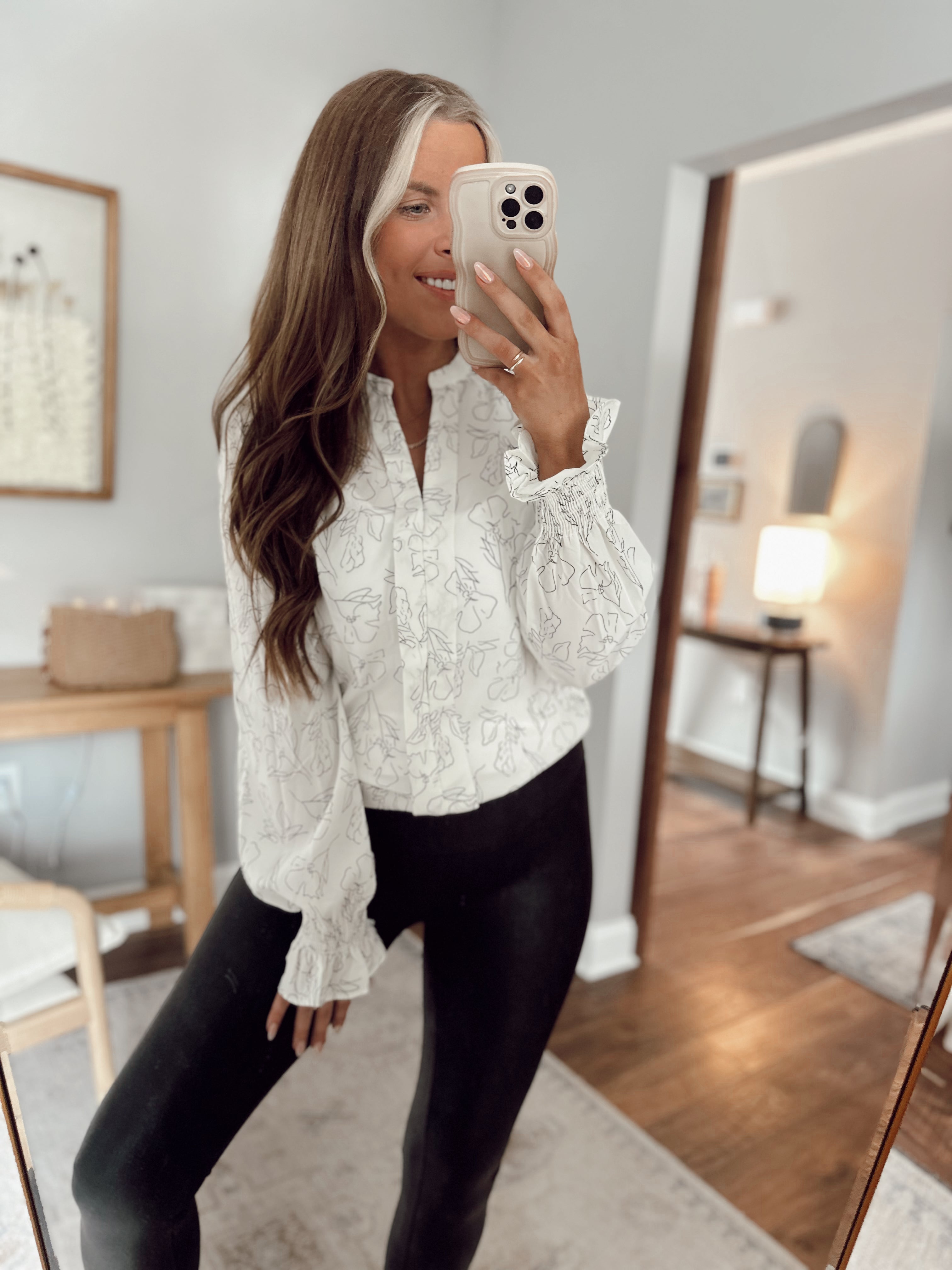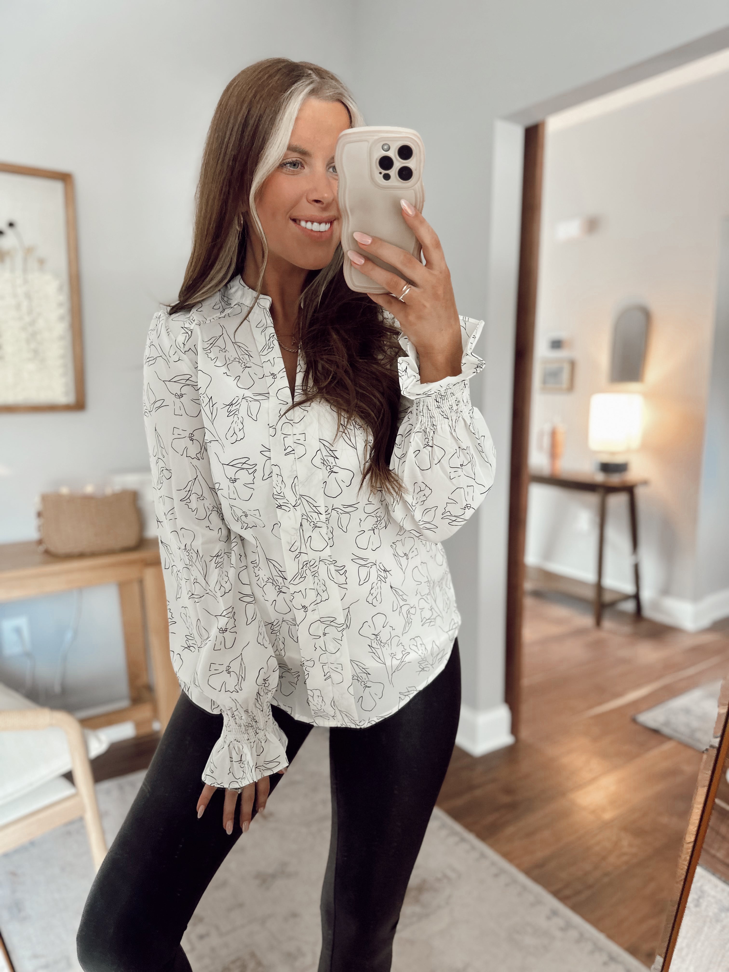 Blooming Shadows White Floral Top