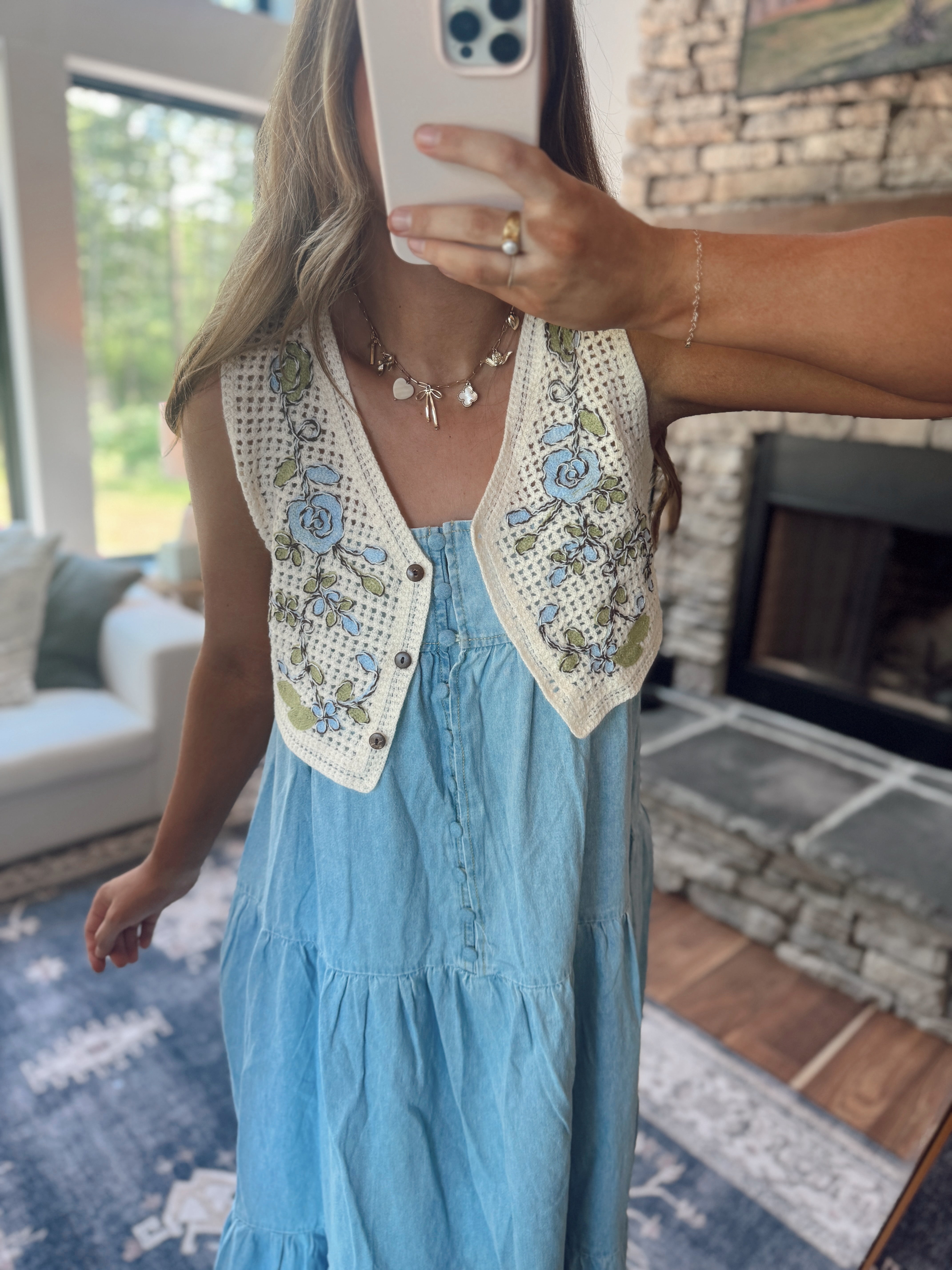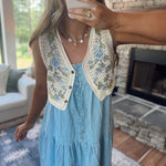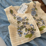 Blue Belle Natural Crochet Knit V-Neck Cropped Tank
