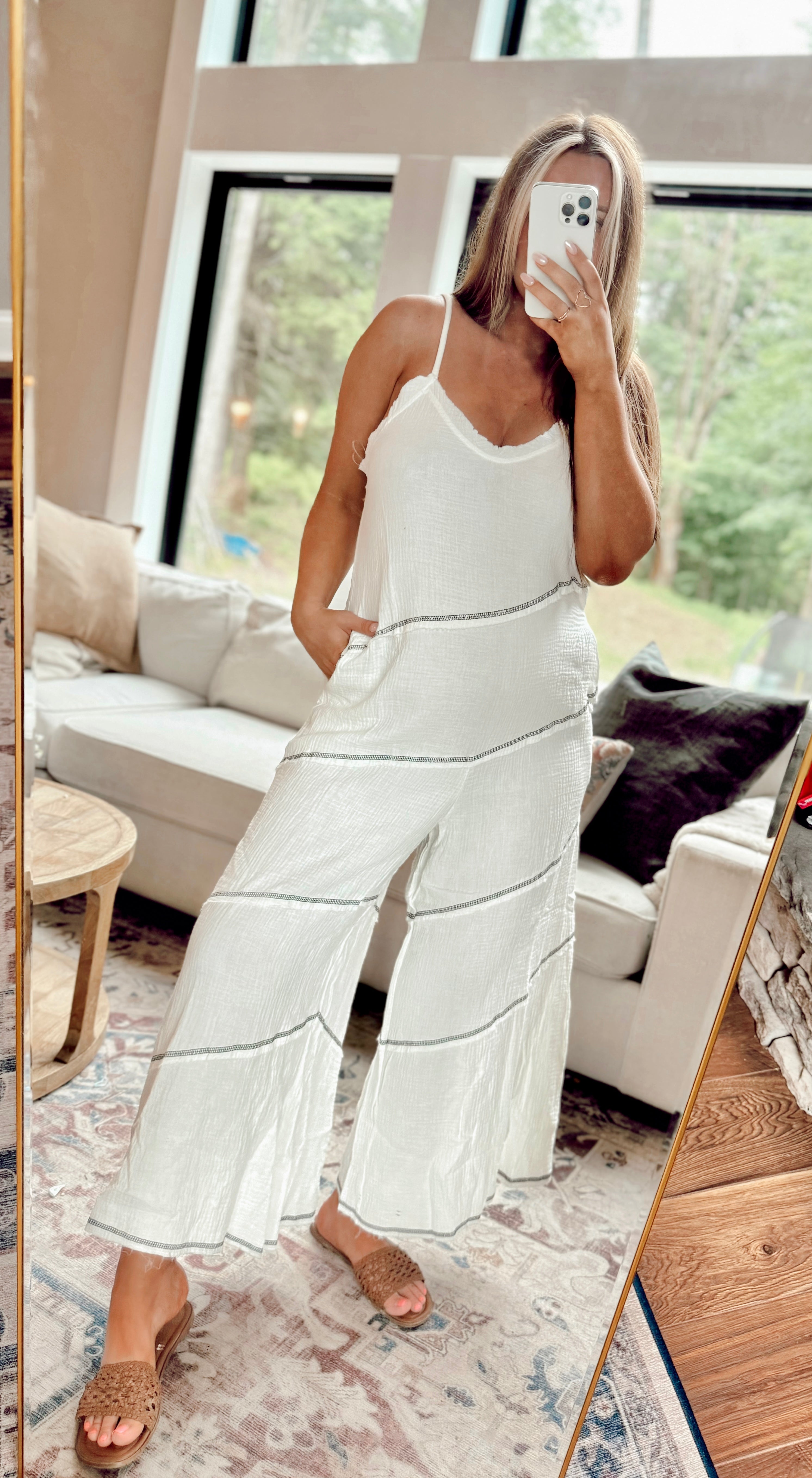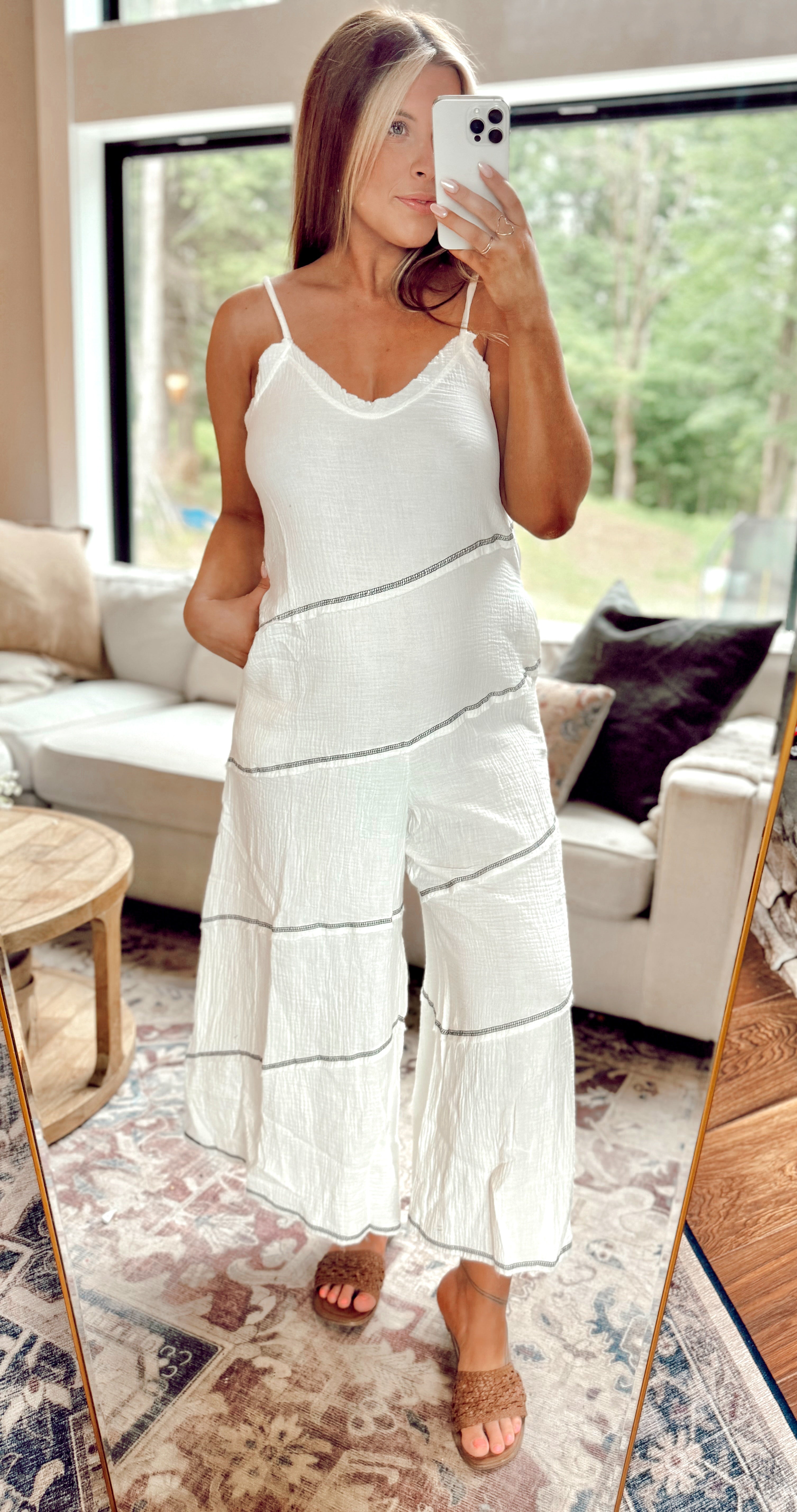 Boardwalk Daze White and Black Gauze Jumpsuit