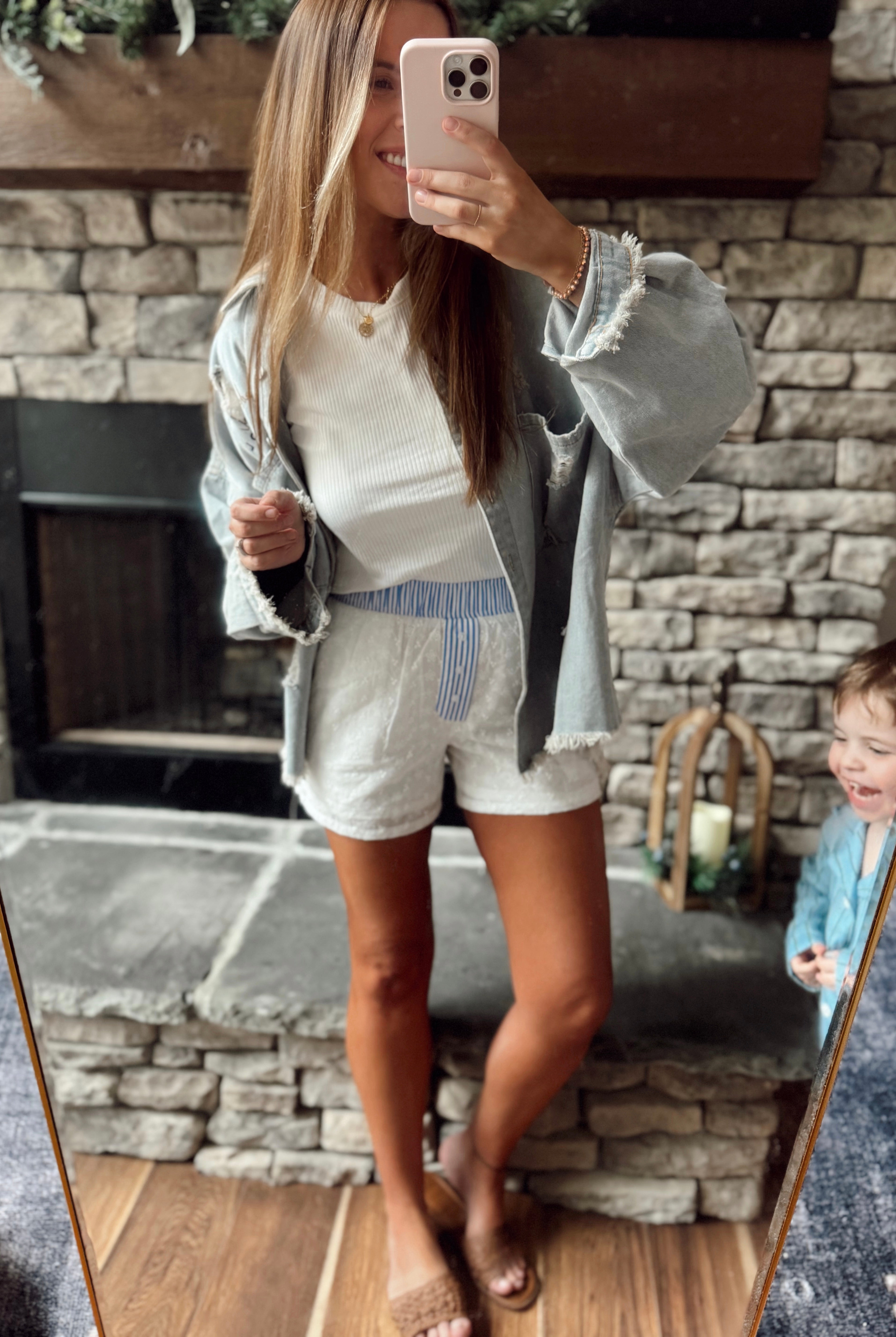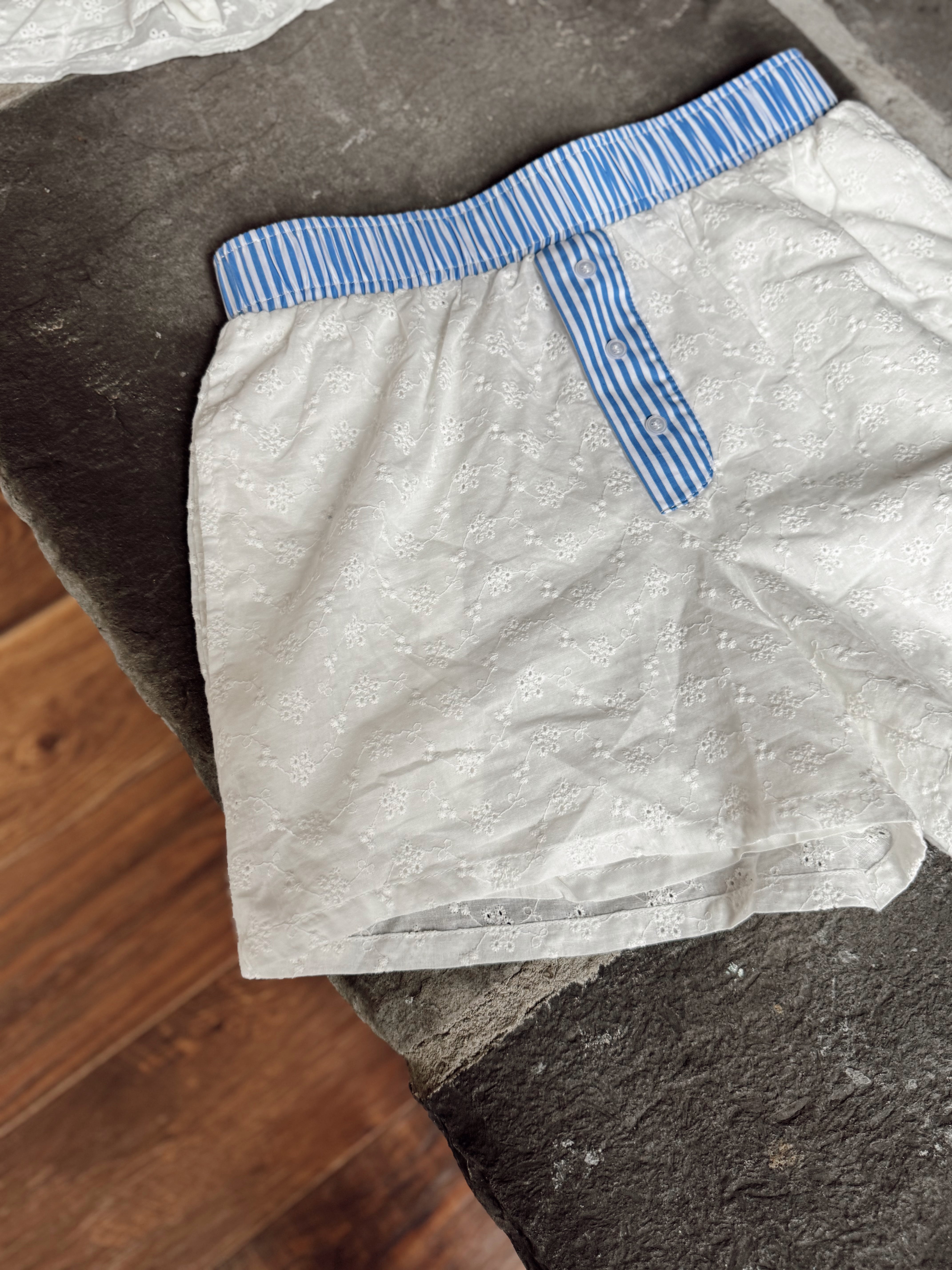 Boat Days White/Blue Eyelet Boxer Style Shorts