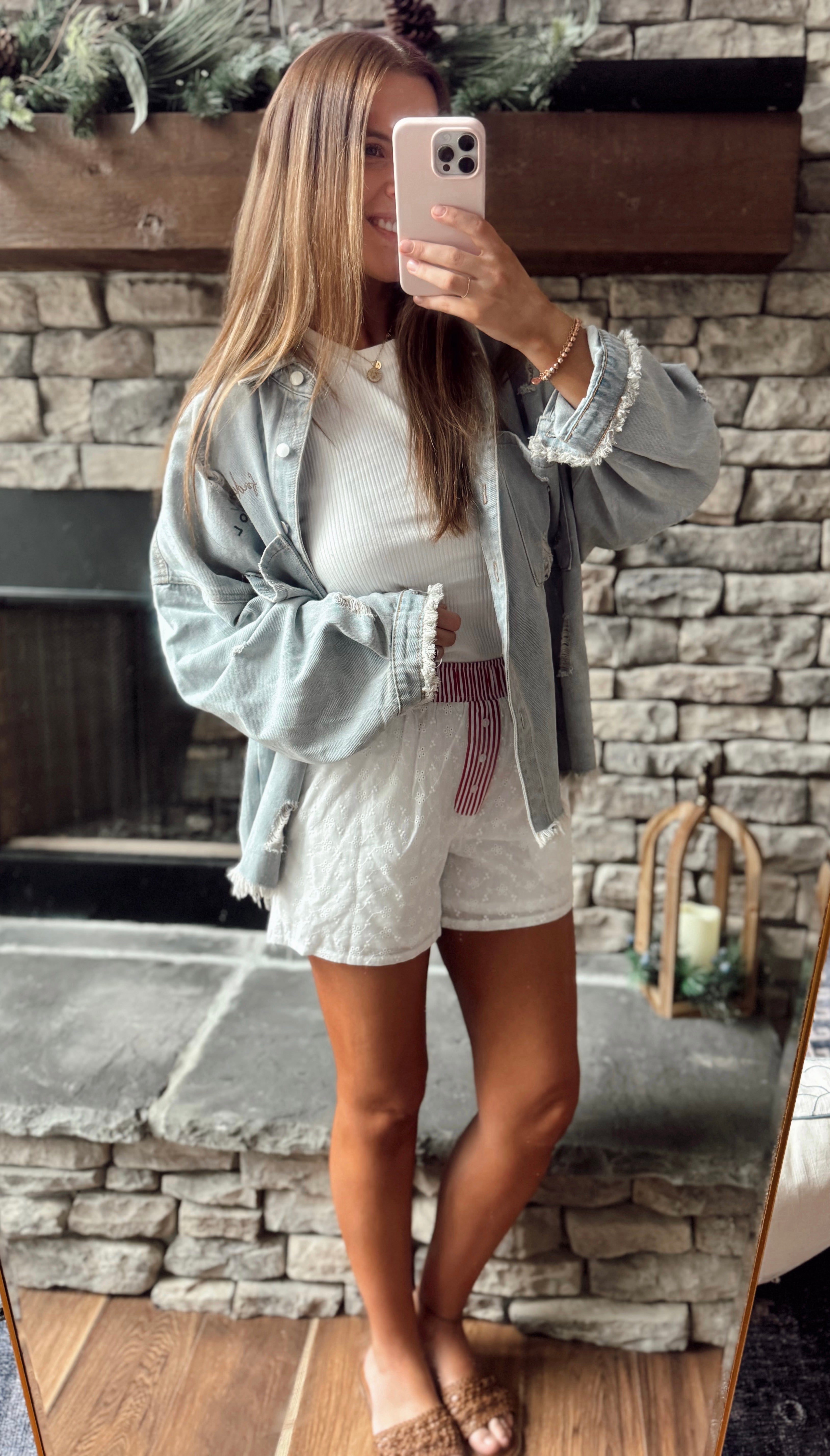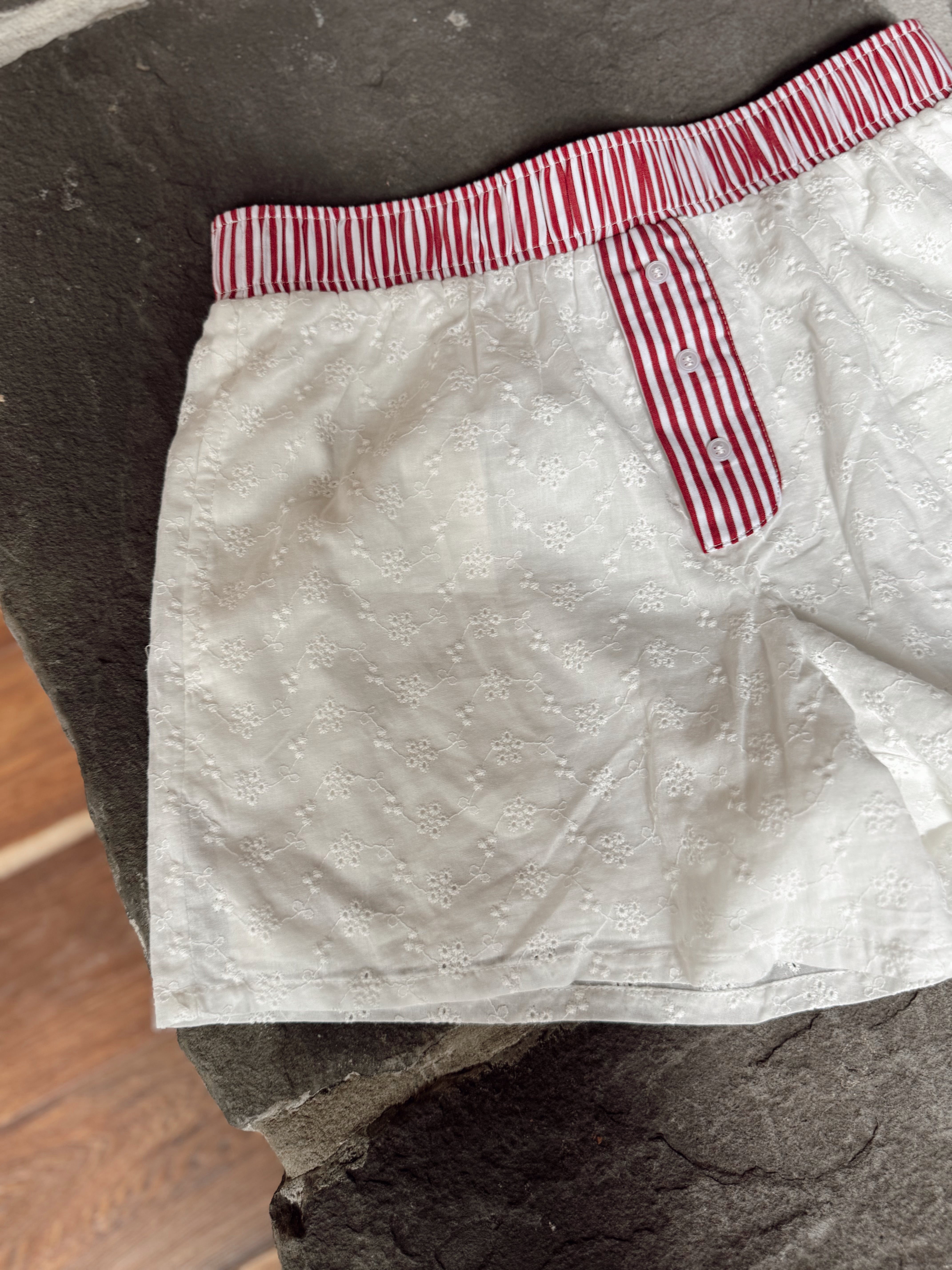 Boat Days White/Red Eyelet Boxer Style Shorts