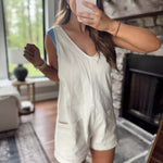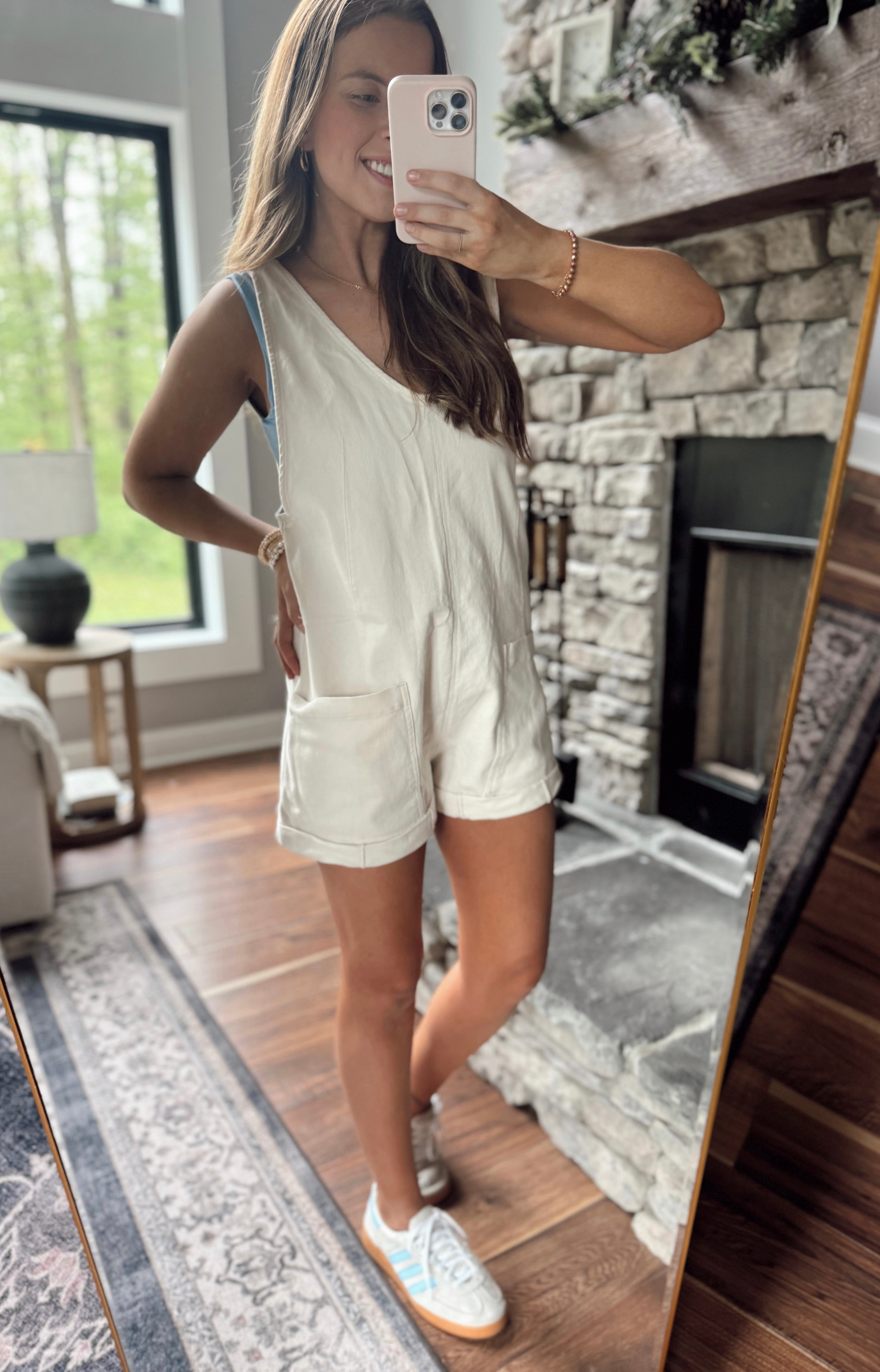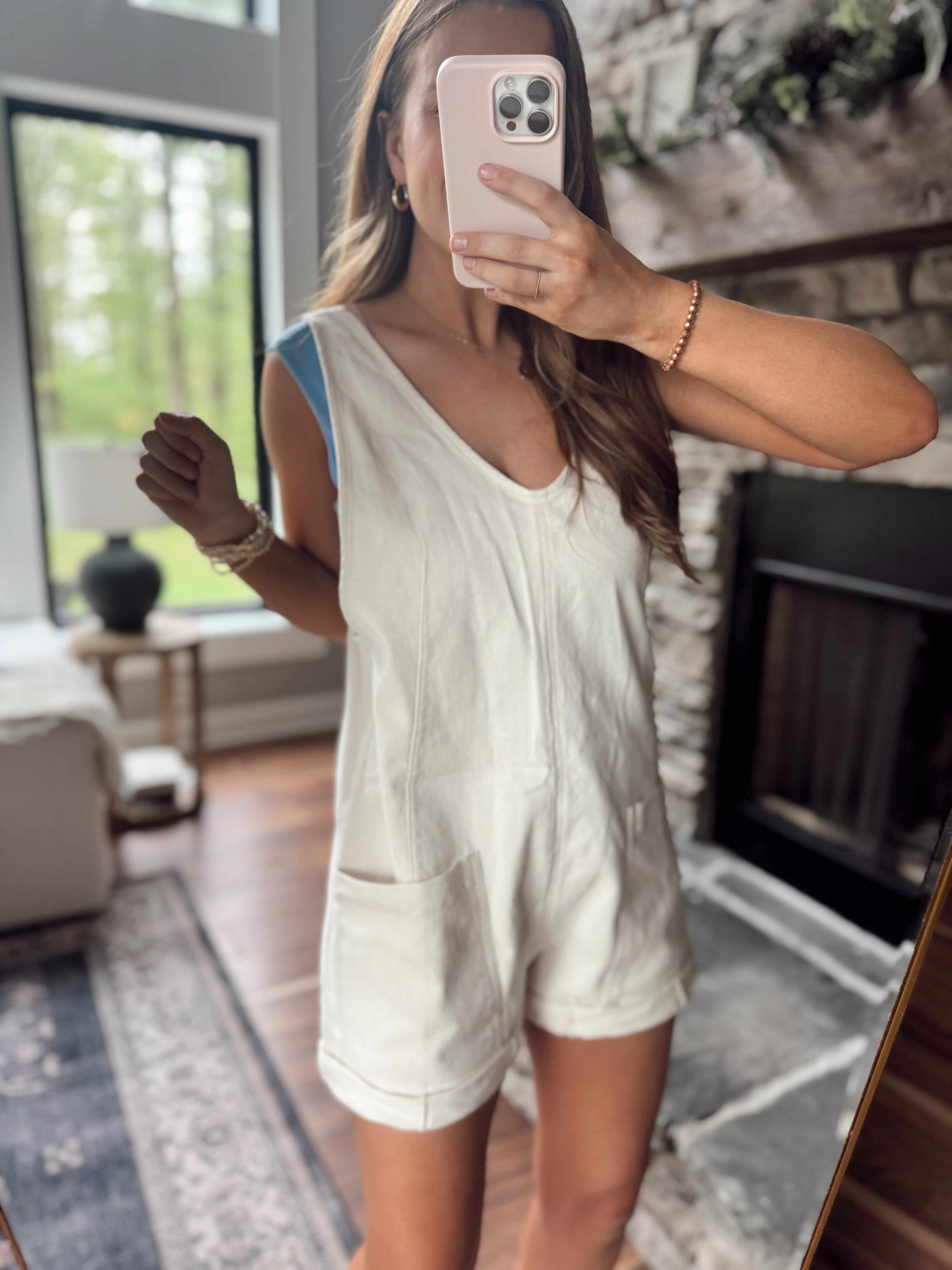 Features: - Cotton twill fabric - Relaxed fit / Oversized - Romper / Onesie / Jumpsuit - Pull on style - Low scoop neckline - Dropped crotch - Low back with adjustable shoulder strap - Twisted roll-up hemline - Patch pockets - Seam details throughout size Small.