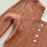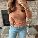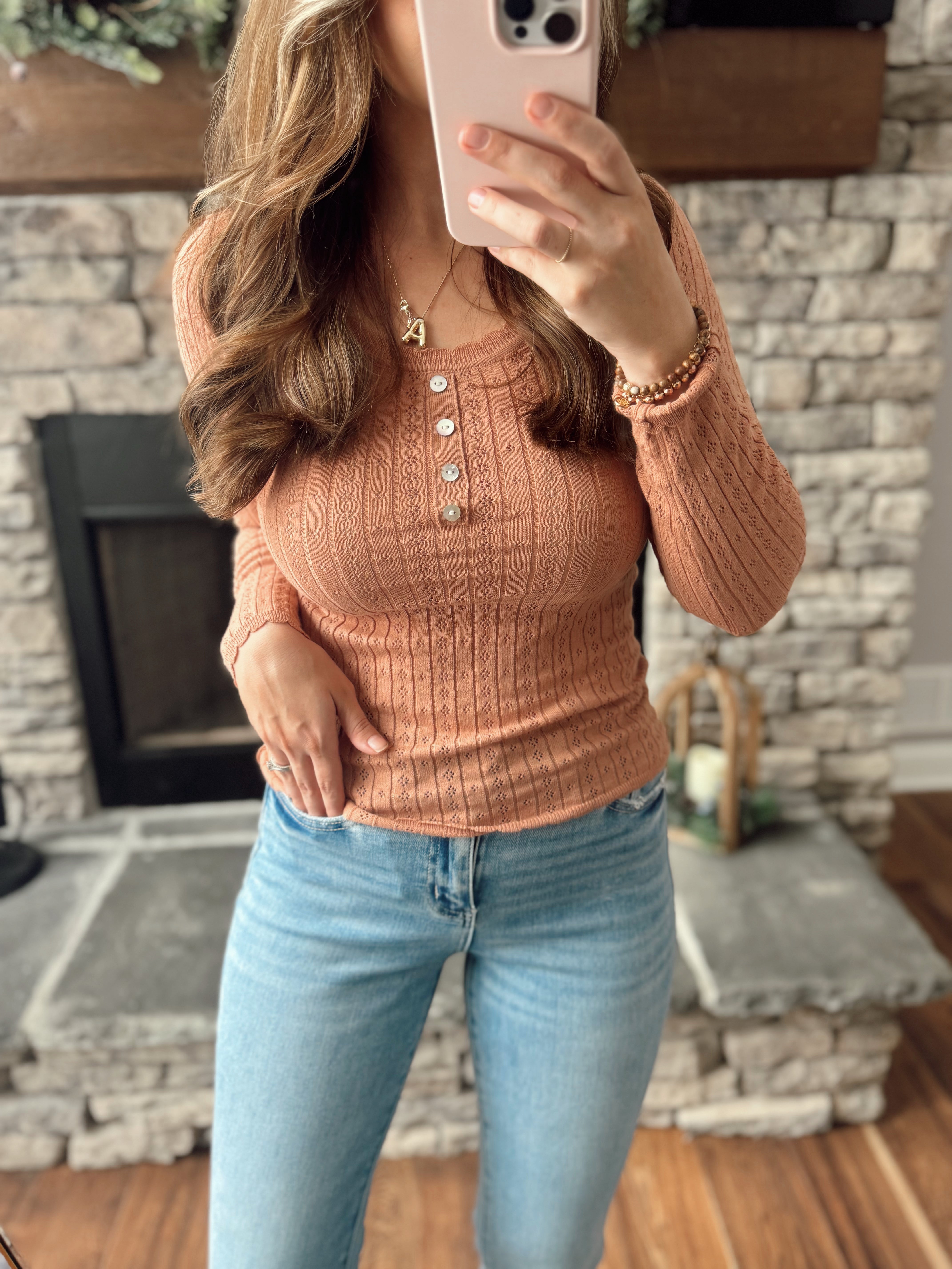 Breann Desert Sand Pointelle Knit Scoop Neck Henley
