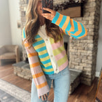 Bright Fantasy Multi Color V Neck Striped Cardi IN STORE