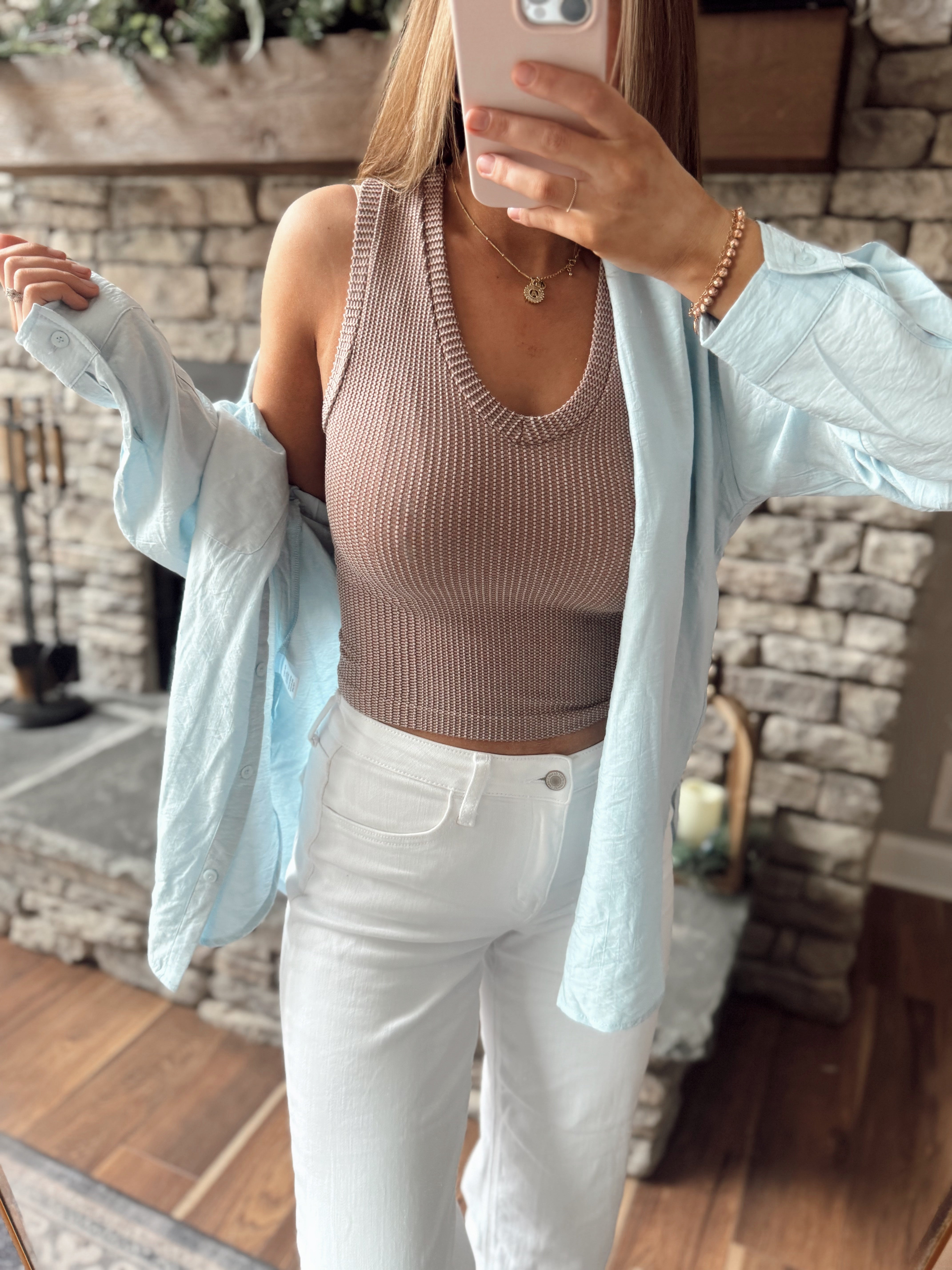 Brown Cannon Seamless Ribbed V-Neck Tank