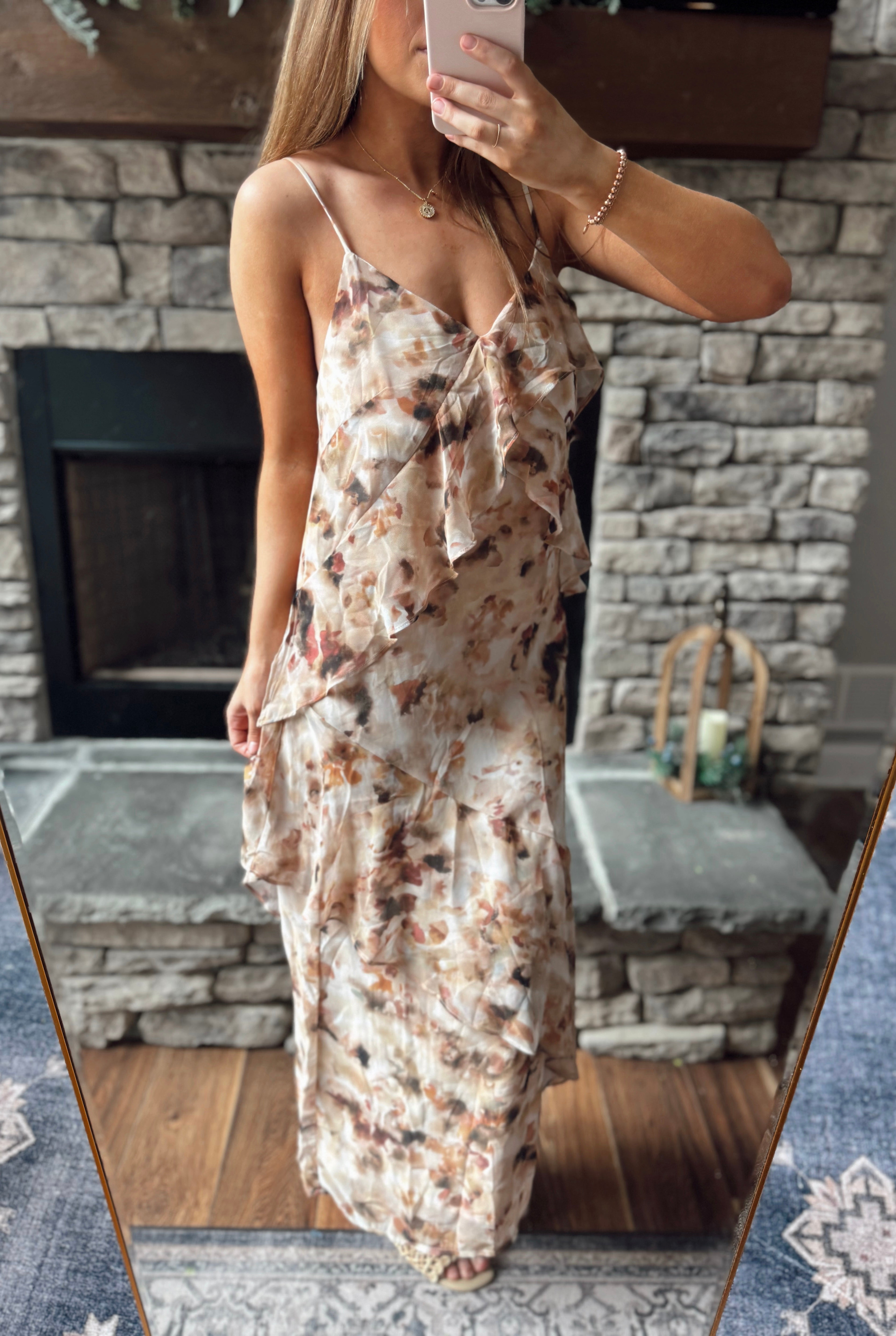 Burning Passion Taupe Multi Flowy Tiered Midi