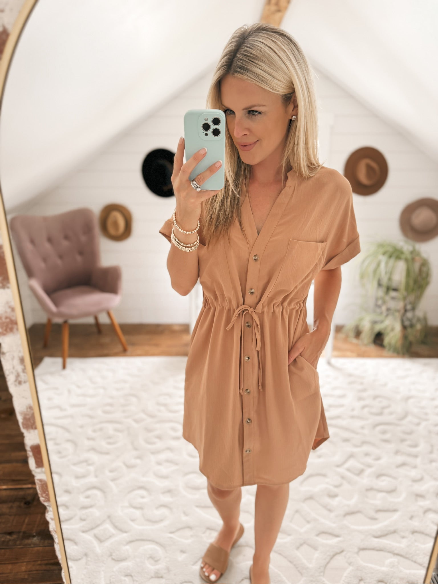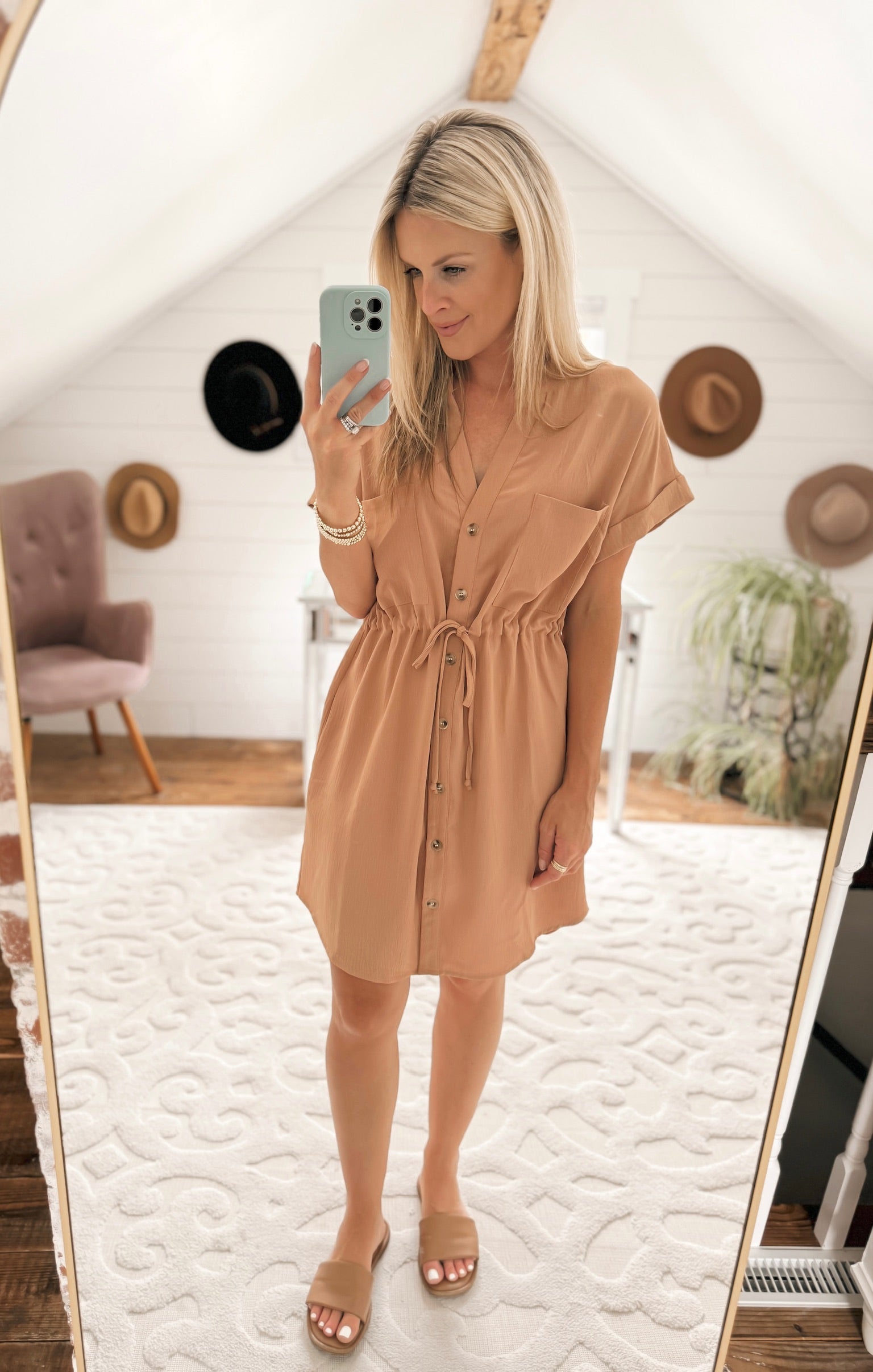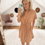 Casey Dusty Salmon Cinch Waist Shirt Dress