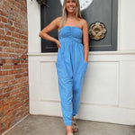 A bucket list GEM! Strapless but will stay up easily! Jenna is 5’4 and in the small. So cute with a denim jacket too!