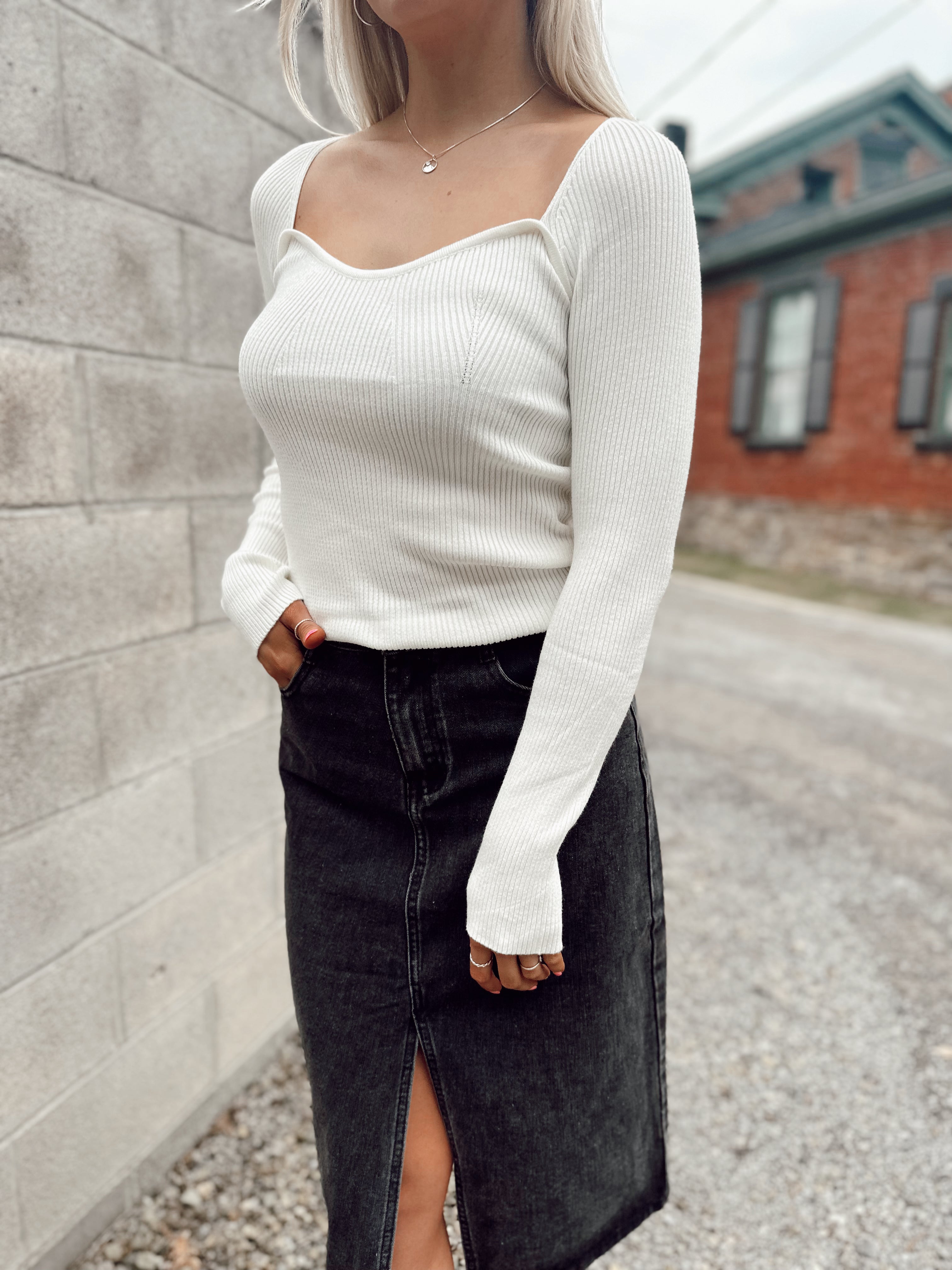 Charming Essential Ivory Square Neck Sweater