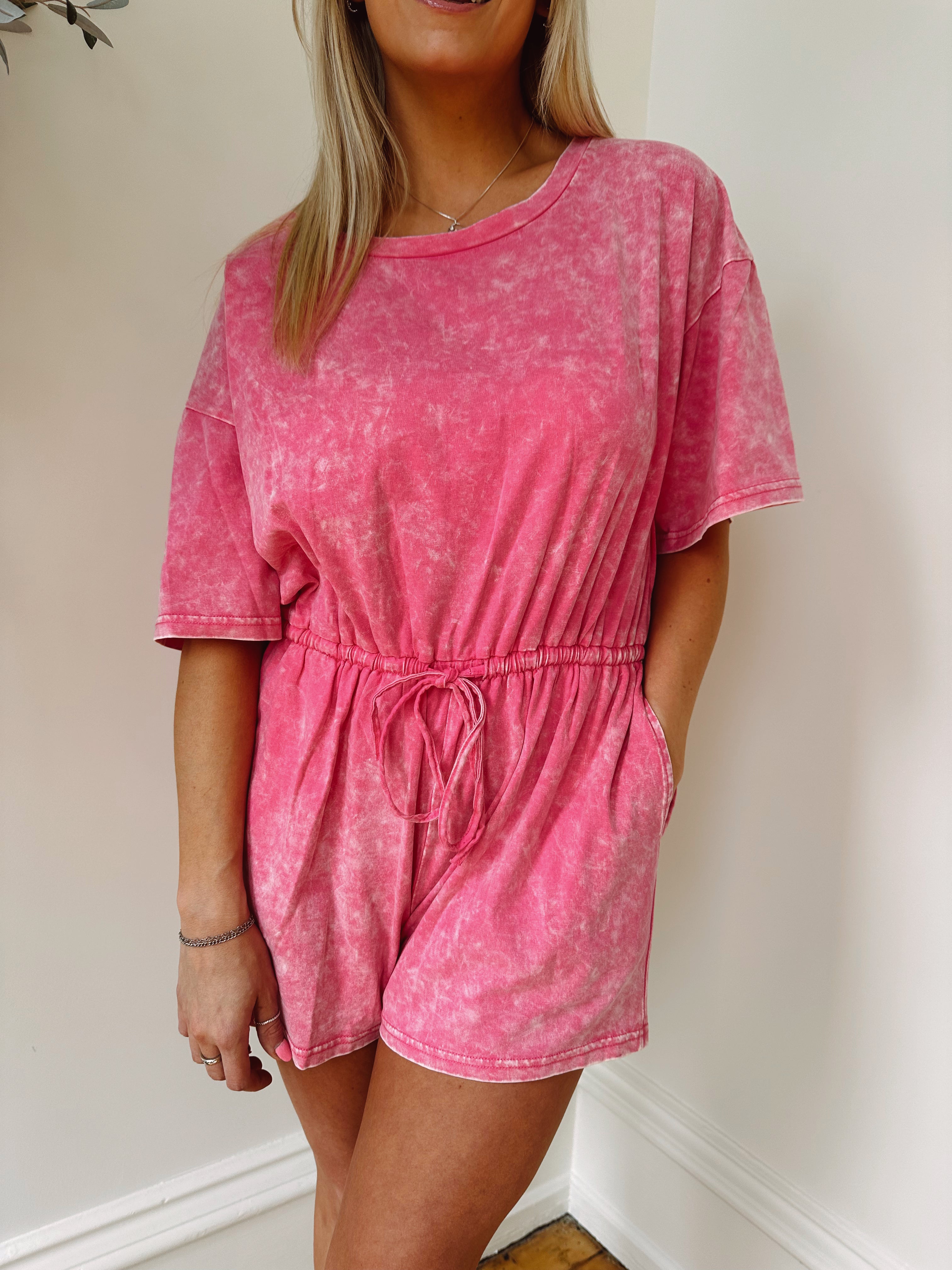 Chase The Wind Pink Mineral-Wash Romper