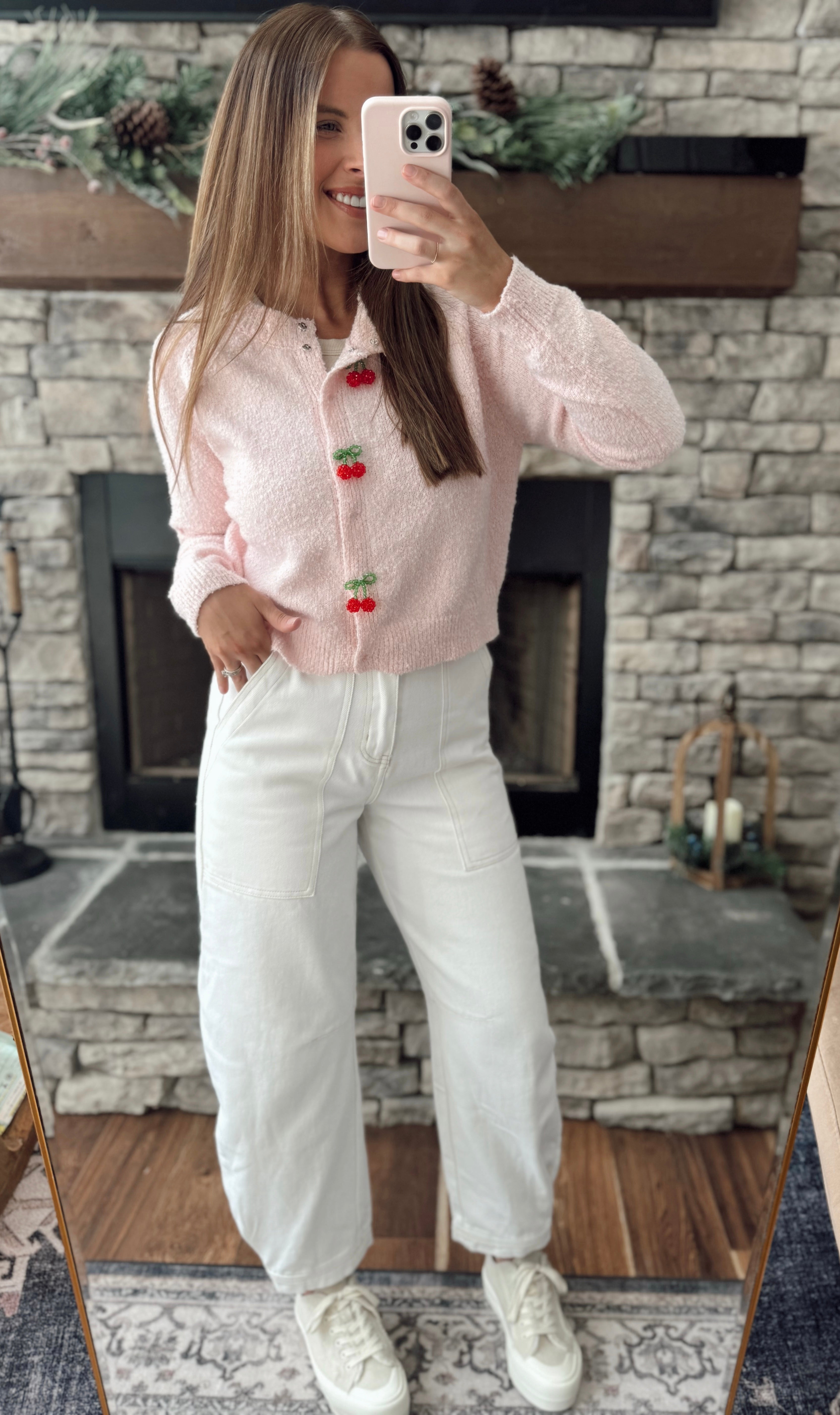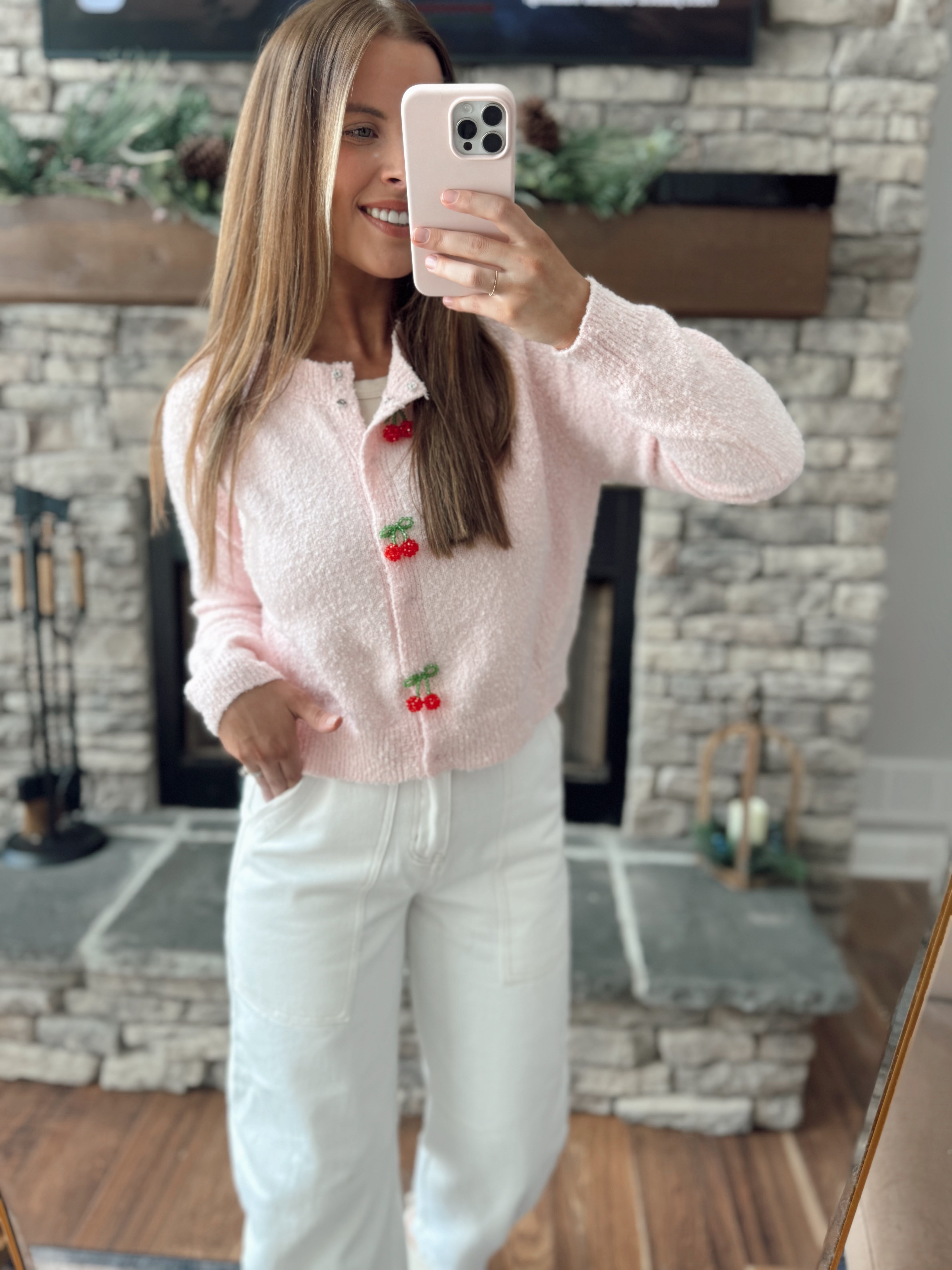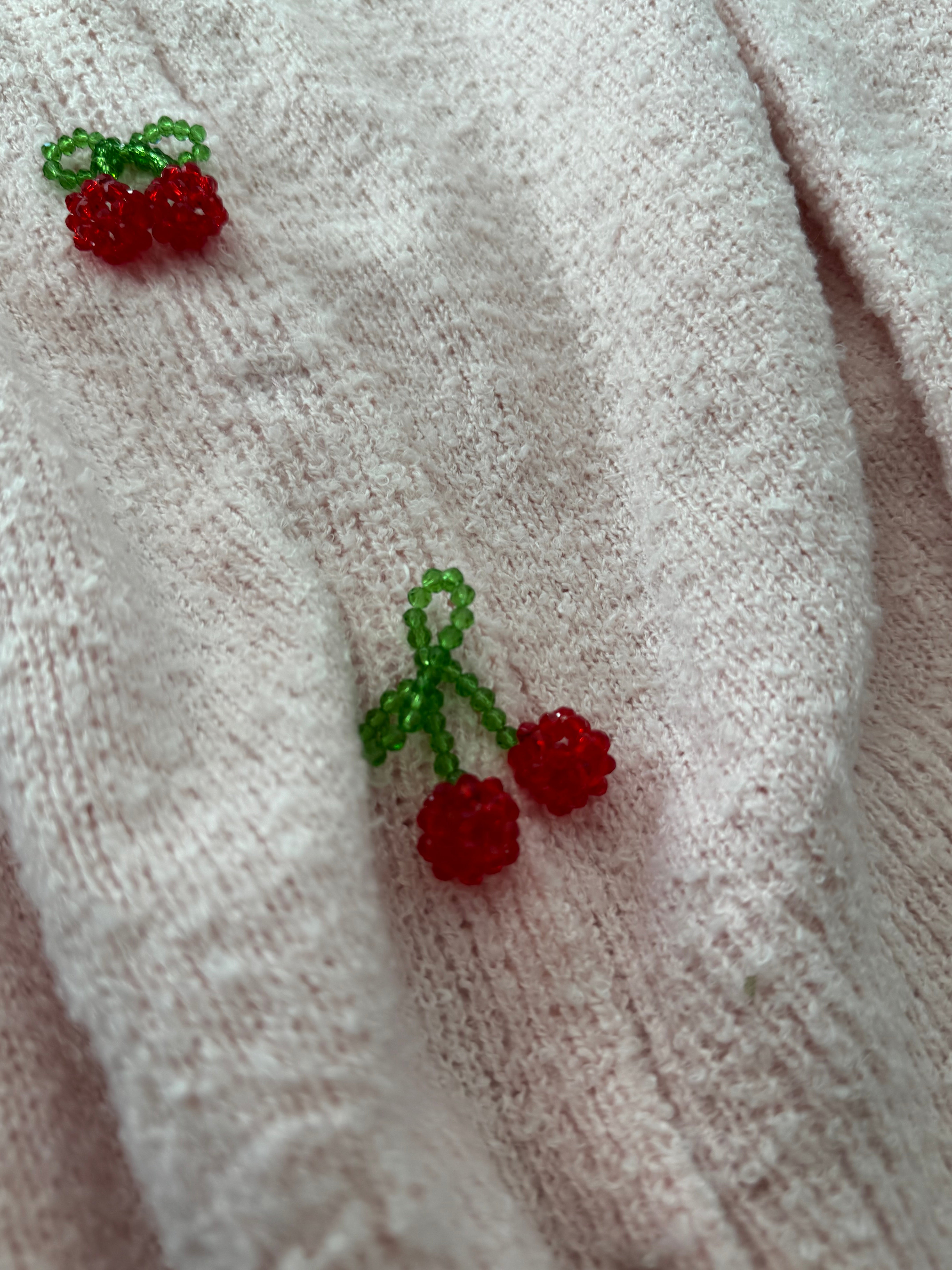 Cherry Moment Lt Pink Cardi with Beaded Cherry Buttons