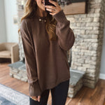Your new go-to cozy pullover. This sweater is designed with a rolled neckline for a laid-back, effortless look, long sleeves with ribbed cuffs, and a relaxed fit that works with leggings, denim, or wide-leg trousers. Soft and easy to wear, it’s the kind of piece you’ll reach for on repeat.