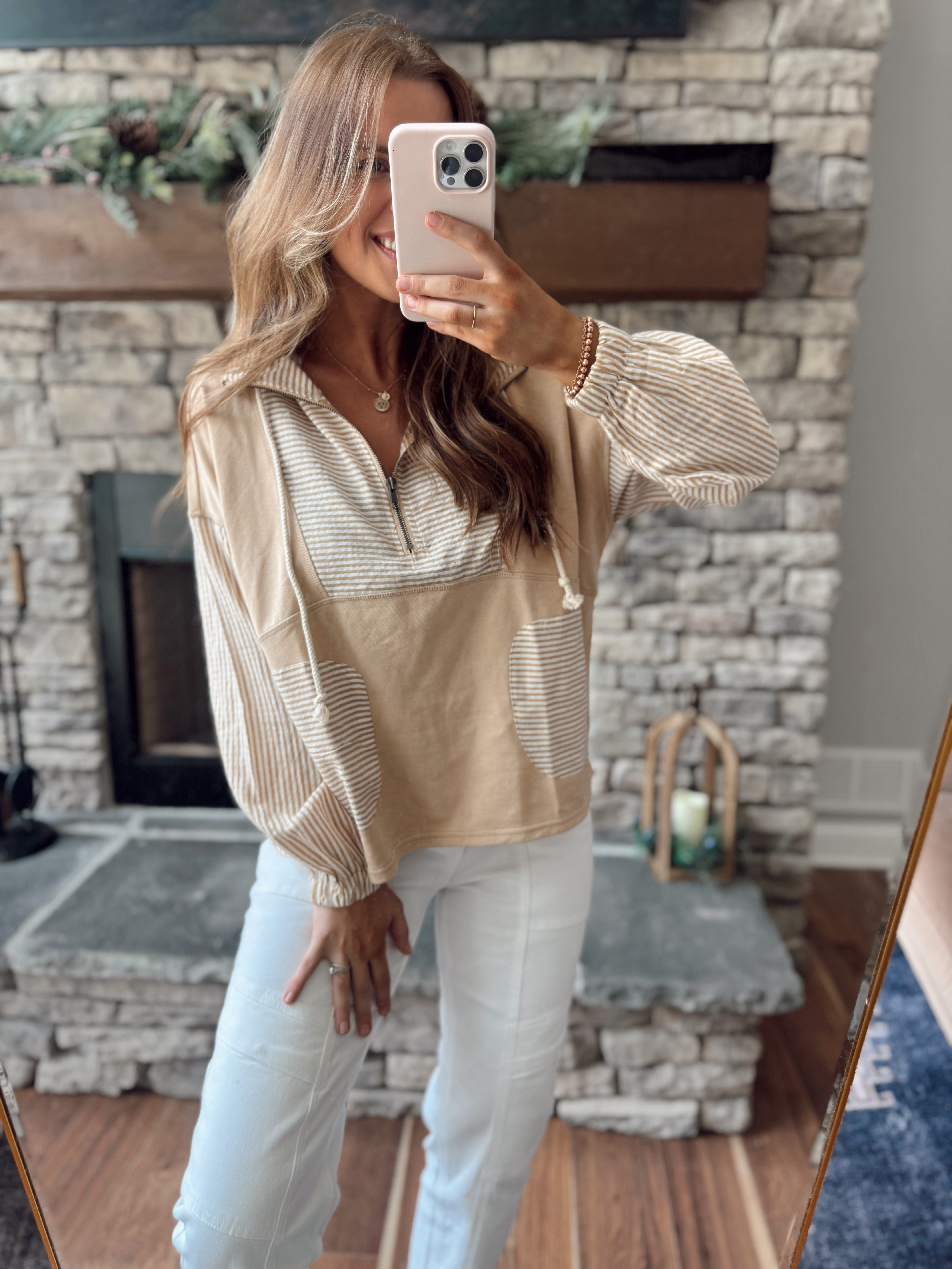 Coast Line Camel Stripe Mix French Terry Half Zip