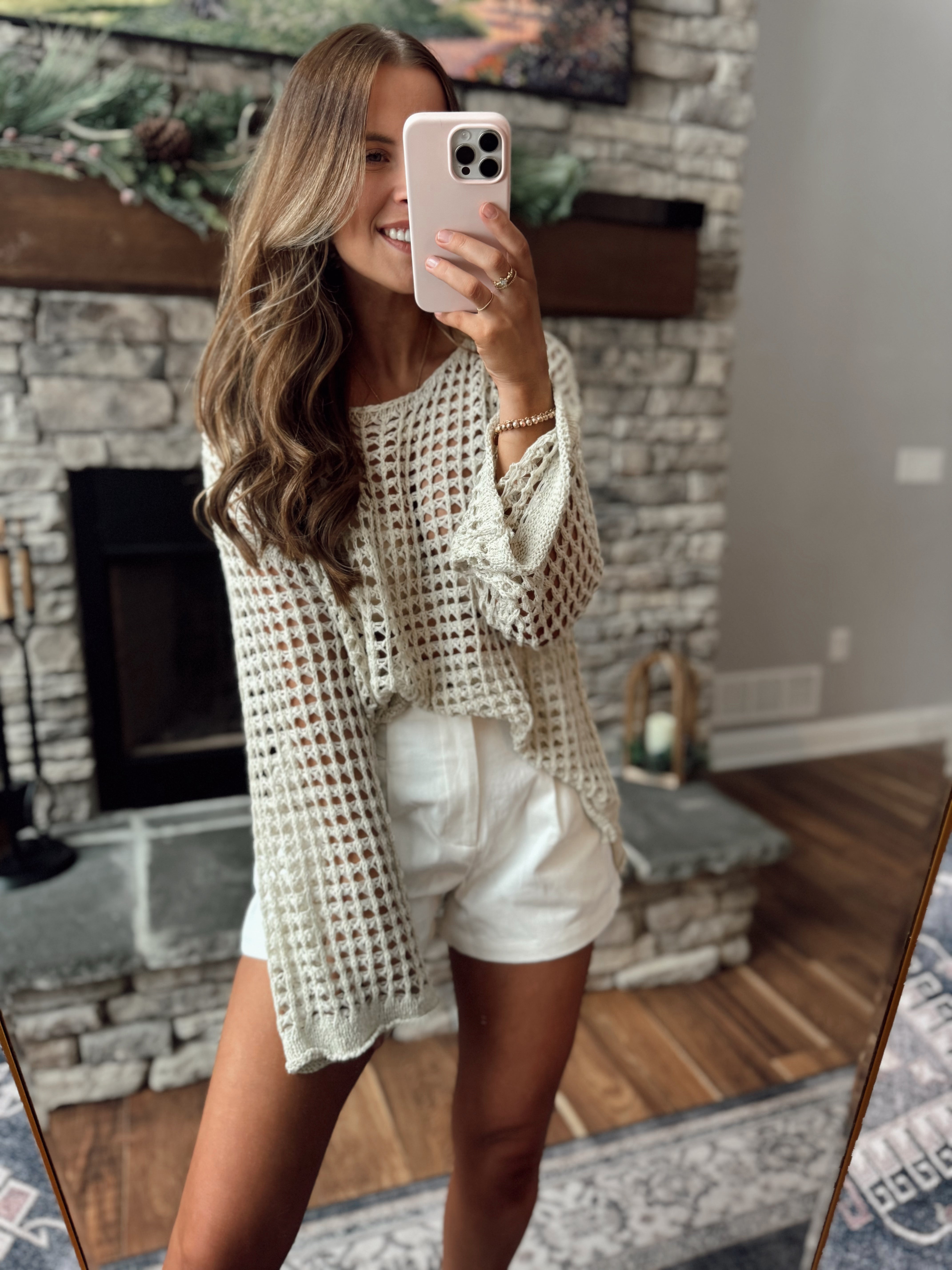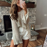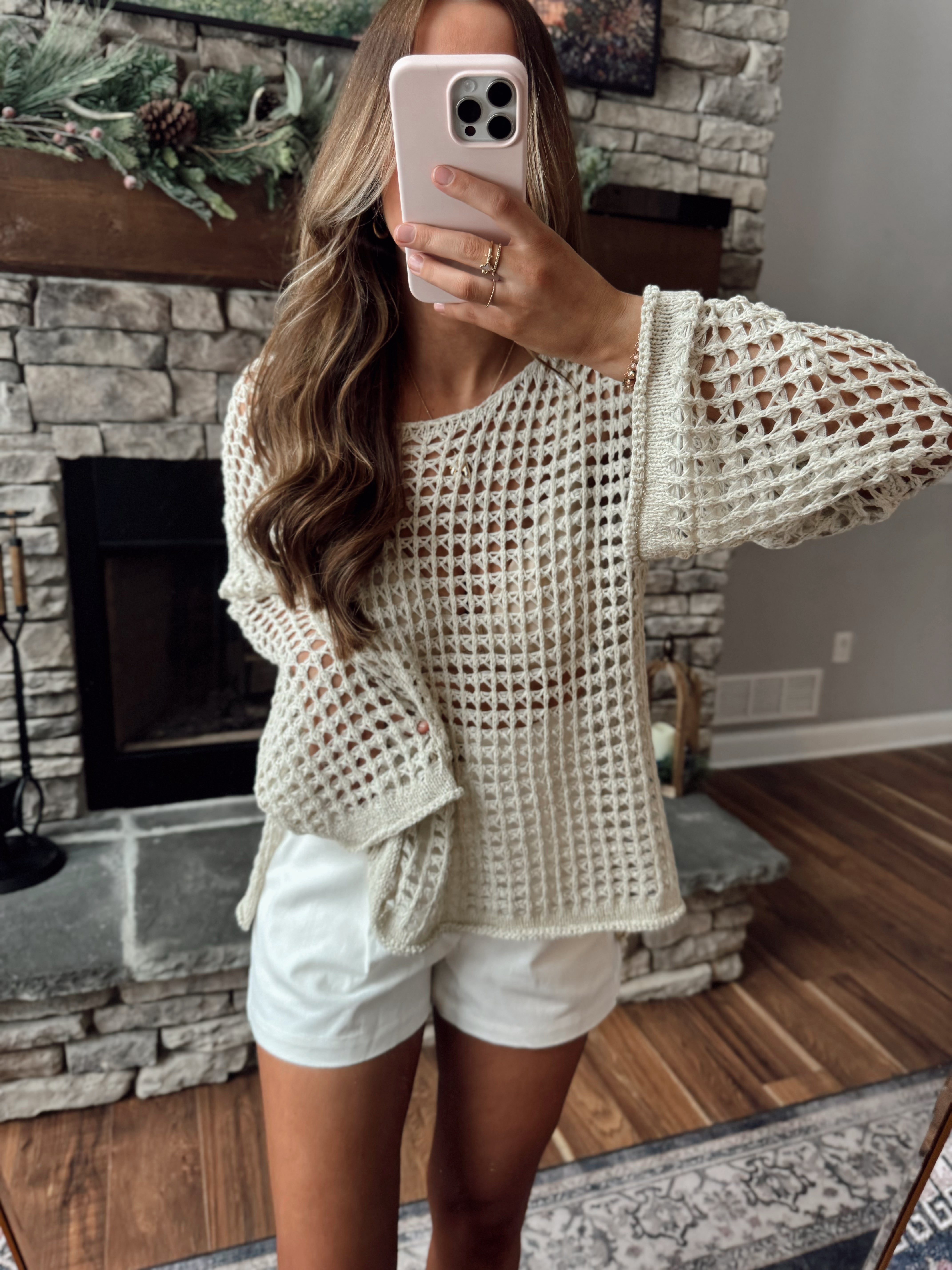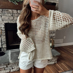 Courtney Natural Crochet Knit Long Sleeve Pullover