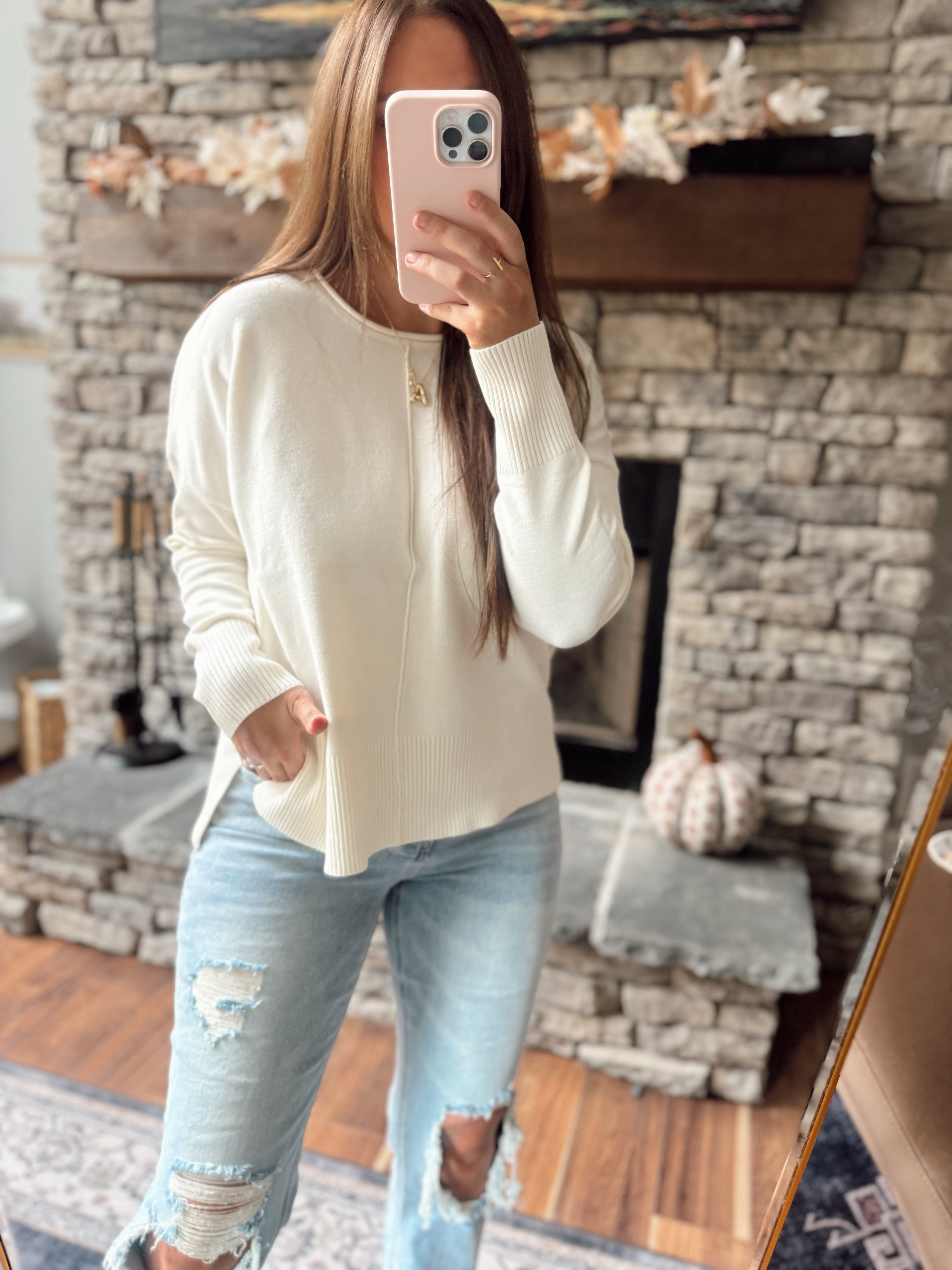 Cream Front Seam Light-Weight Sweater