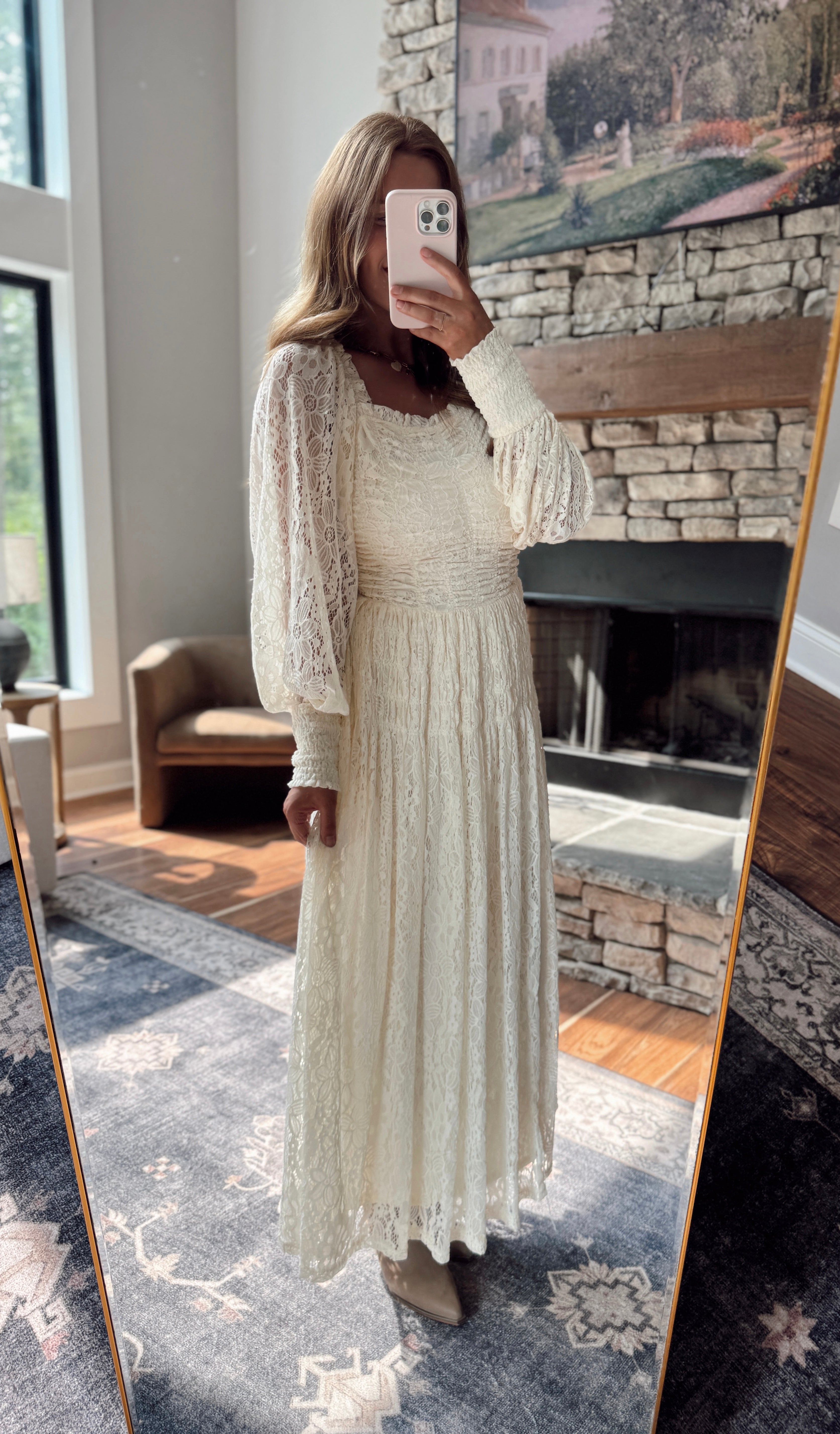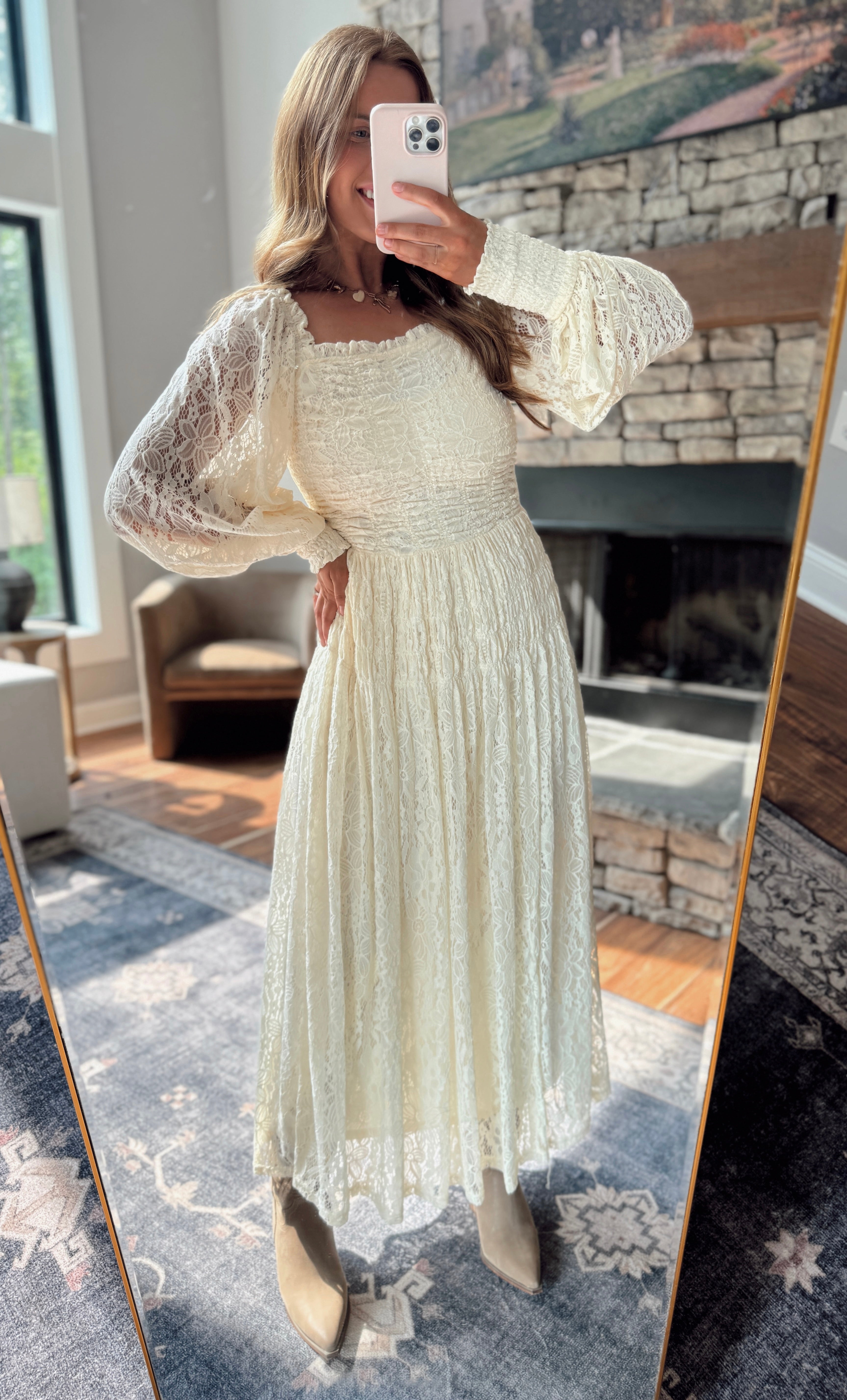 Cream Lace Enchantment Smocked Square Neck Maxi