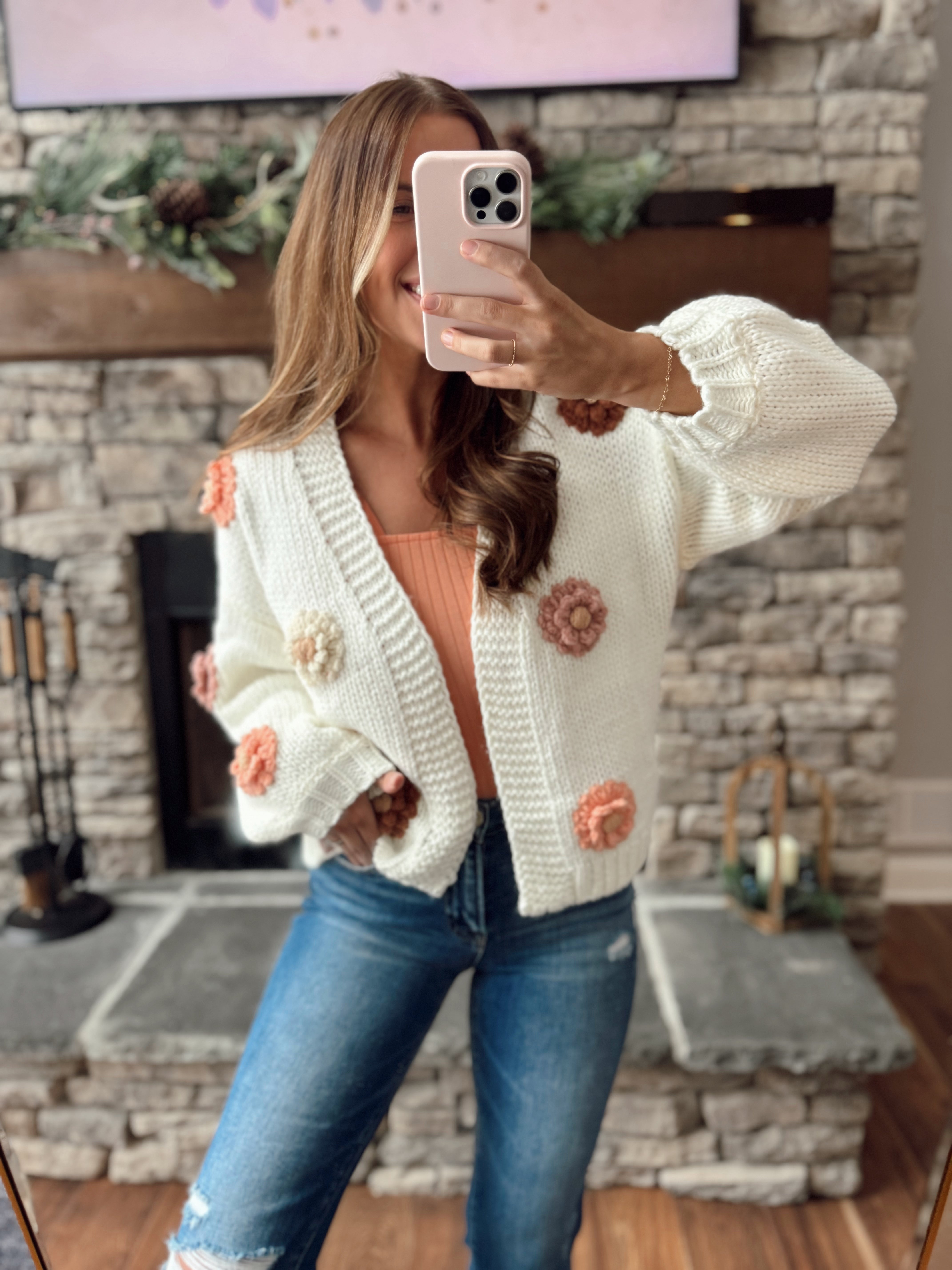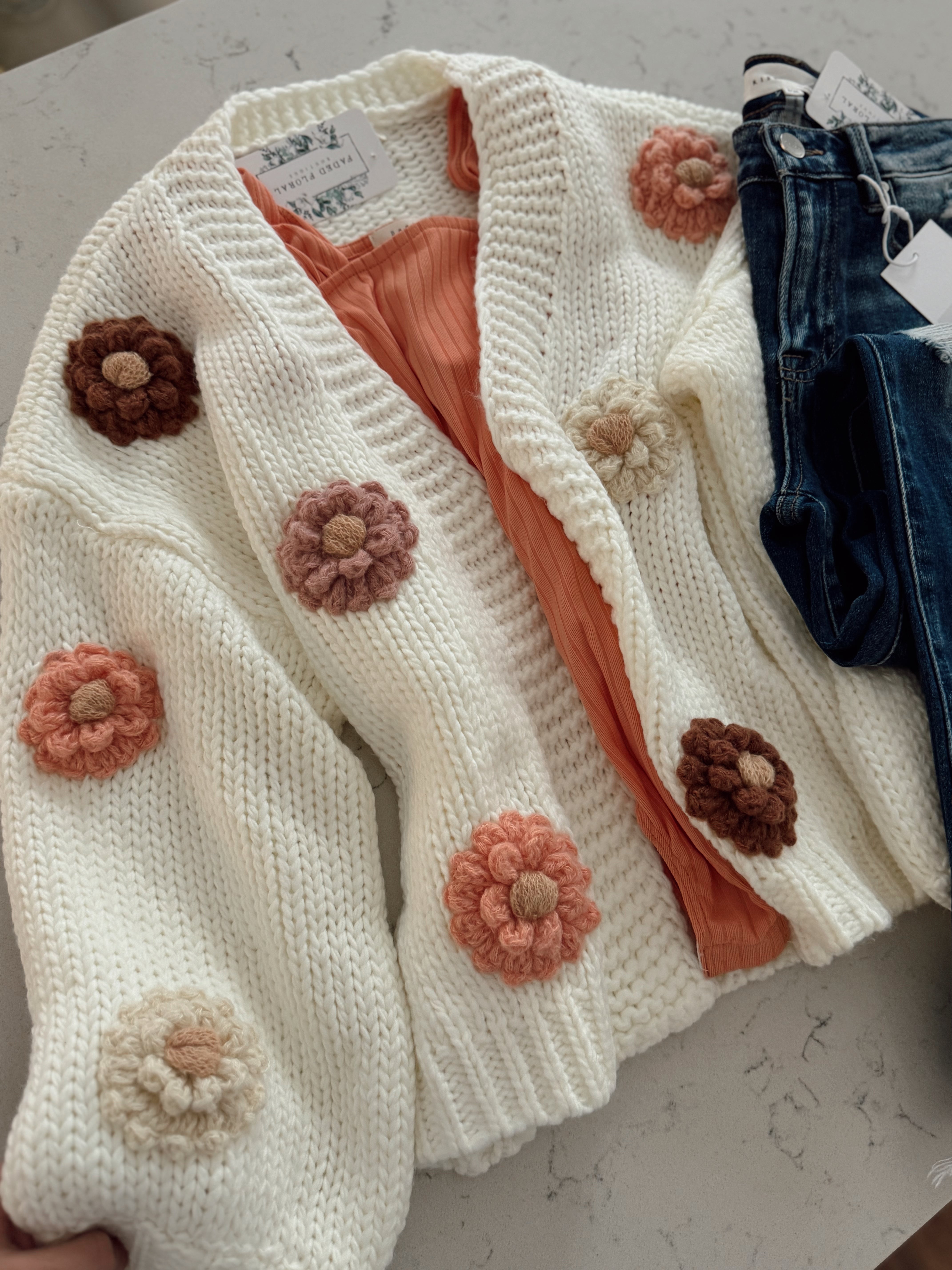 Cream Multi 3D Flower Sweater Cardi