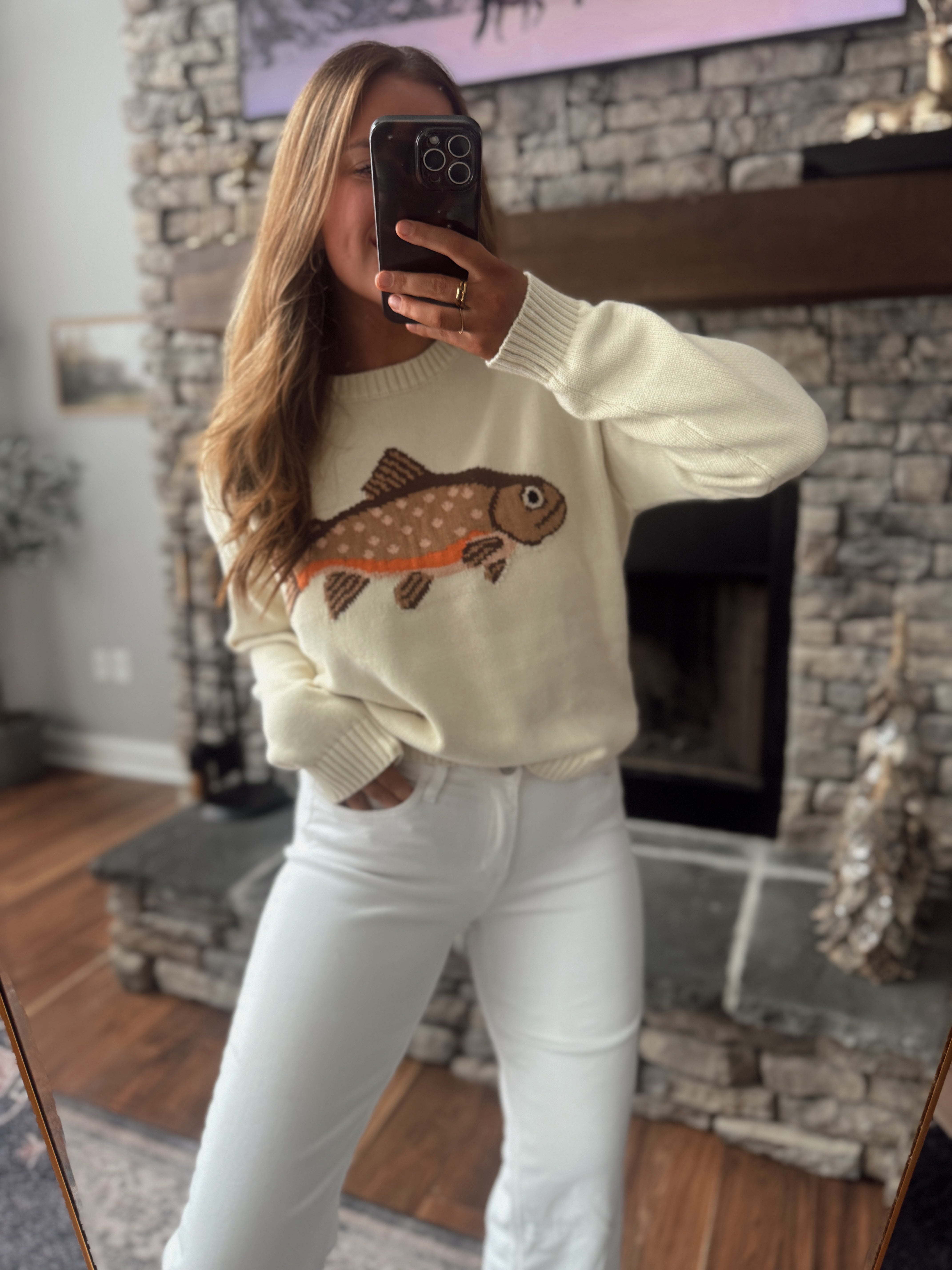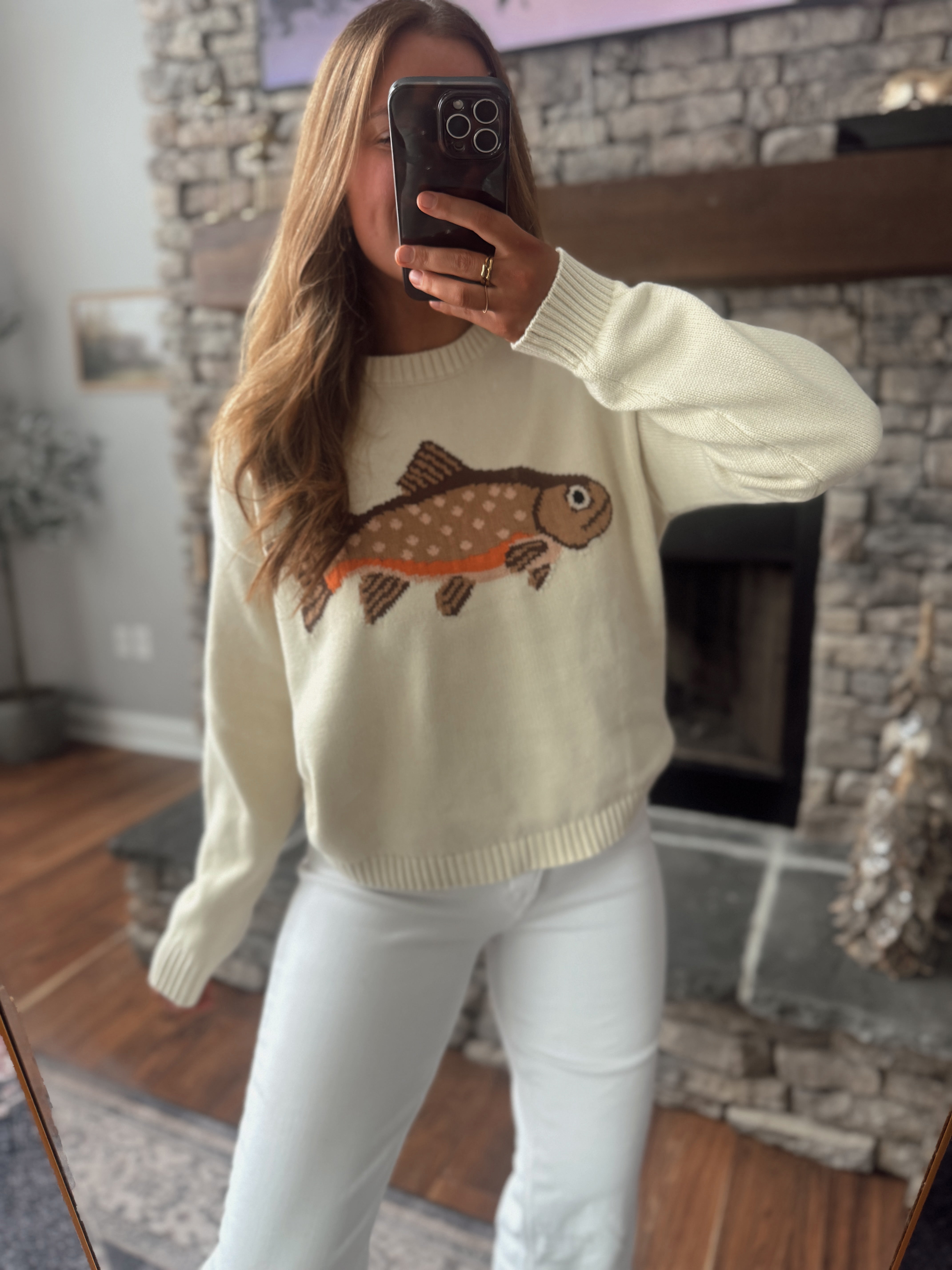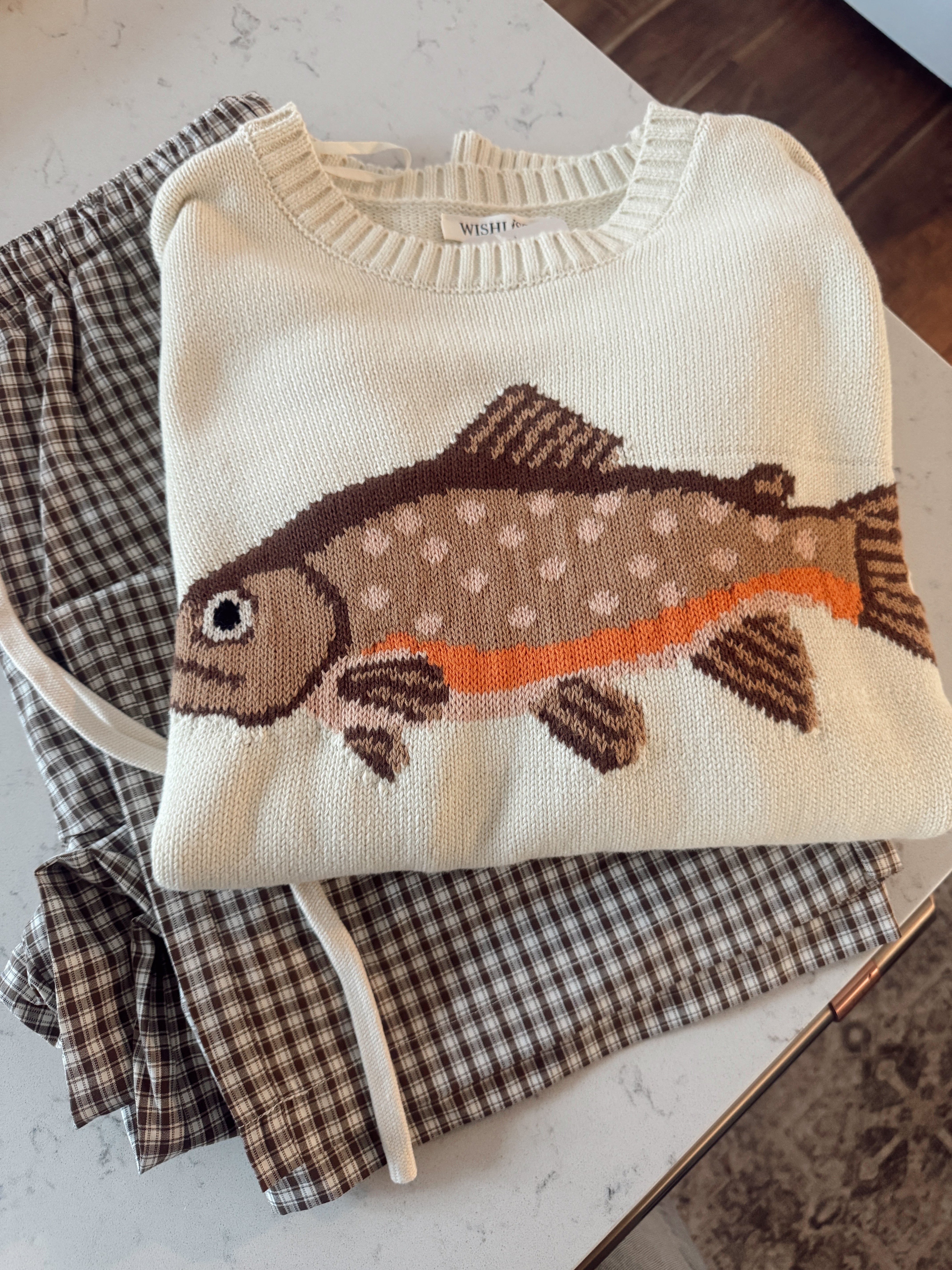 An instant conversation piece with the coziest feel. This Wishlist knit sweater features a playful trout design woven into a soft, mid-weight knit that’s comfy without being bulky. Easy to style, easy to love—this one’s a standout while still feeling neutral and wearable.