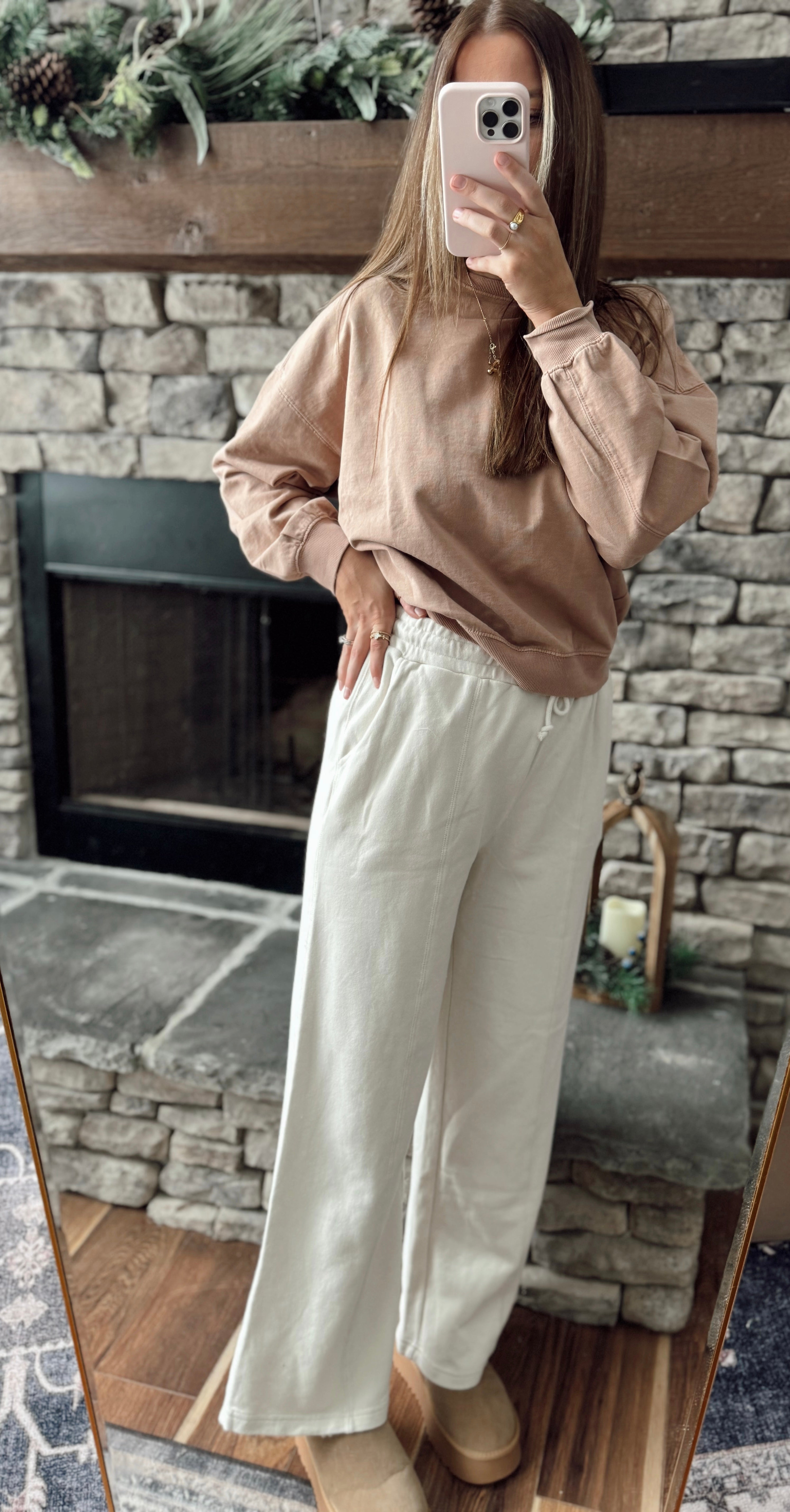 Cream Total Comfort Wide Leg Front Seam Lounge Pant