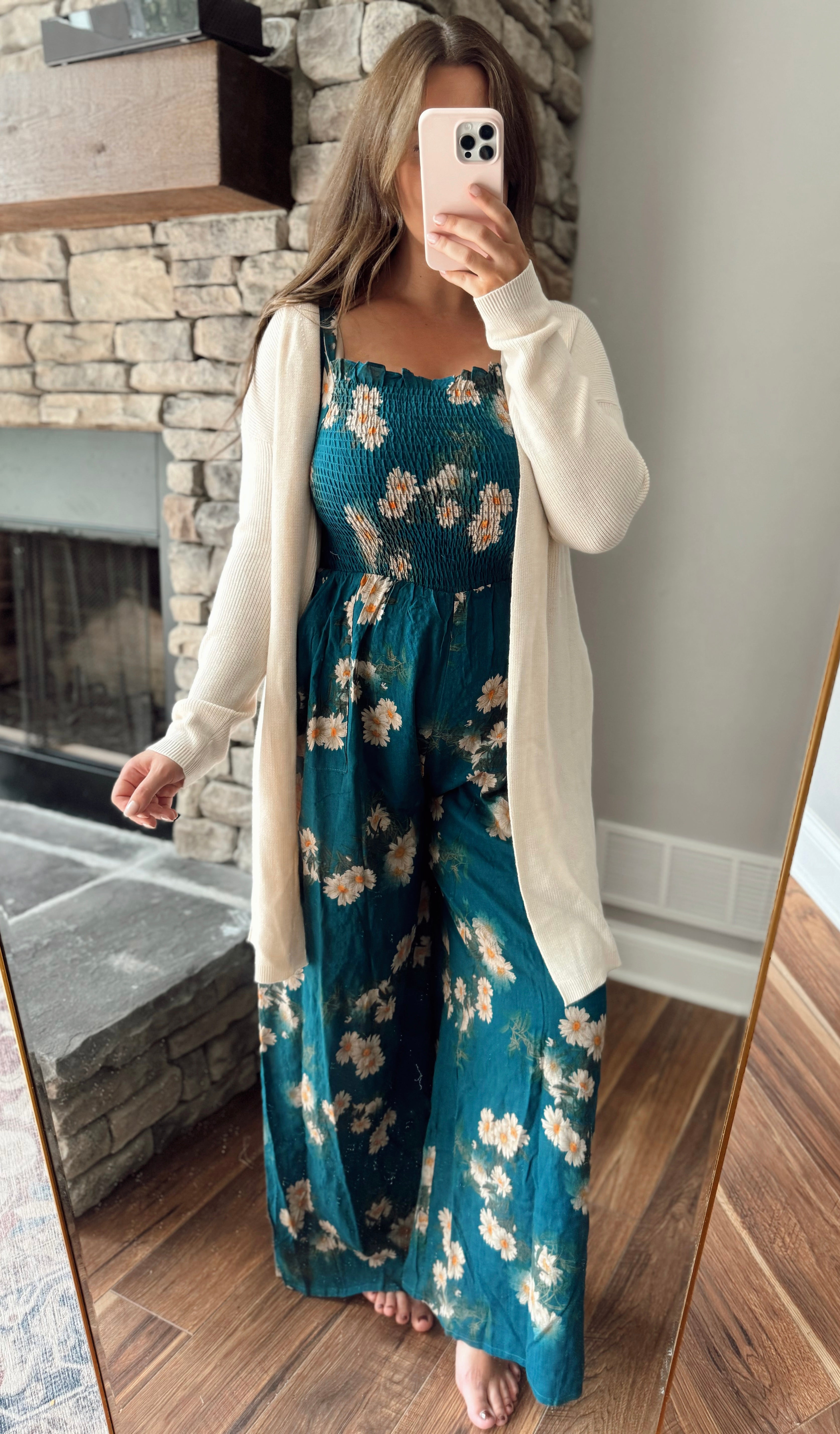 Daisy Chains Teal Square Neck Smock Jumpsuit