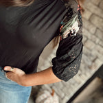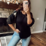 Dark Allure Black Knit Top with Detailed Sleeves