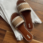 Deal Breaker Tan Embroidered Sandal