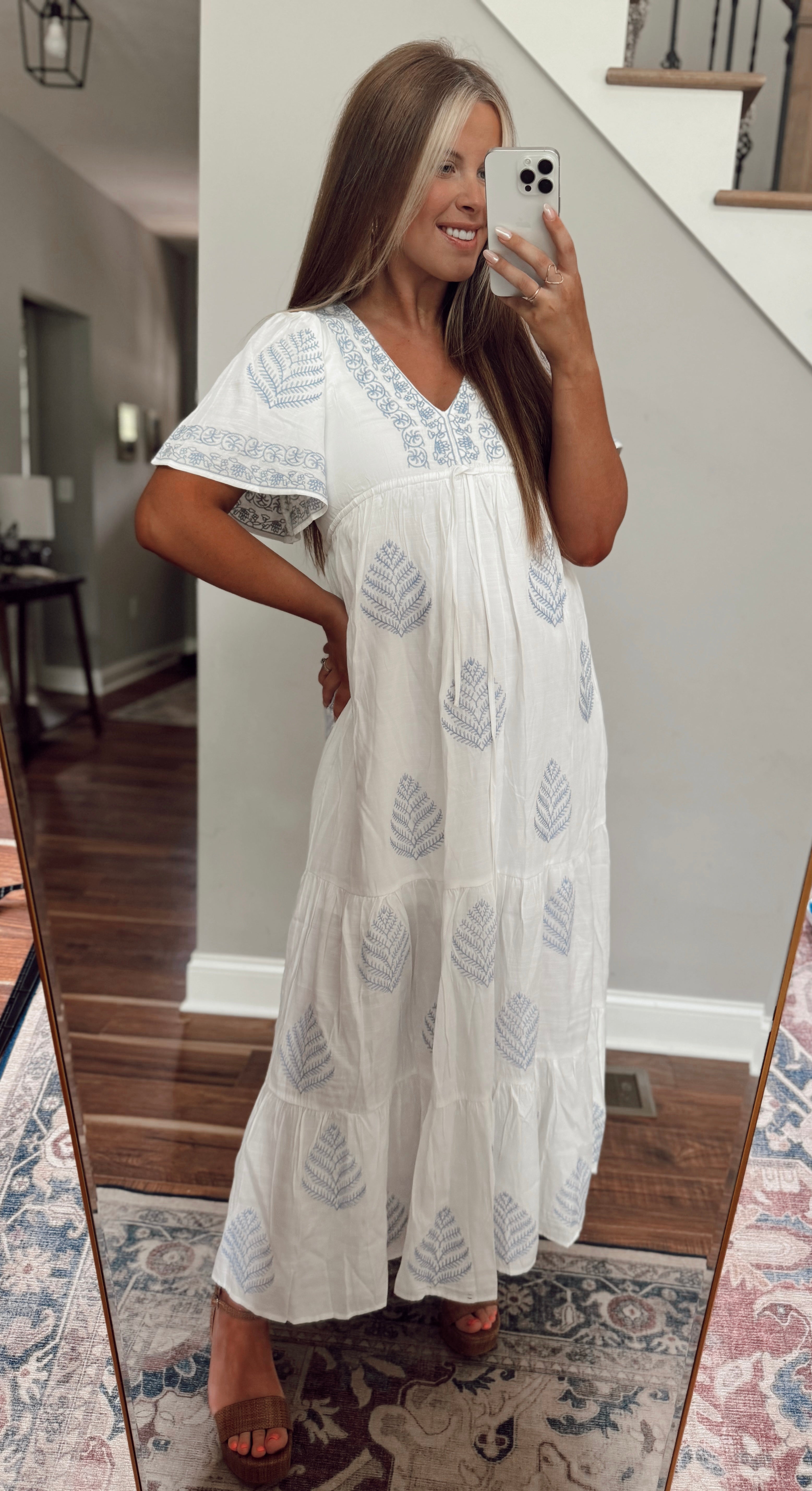 Dreamy Designs Ivory Embroidered Maxi Dress
