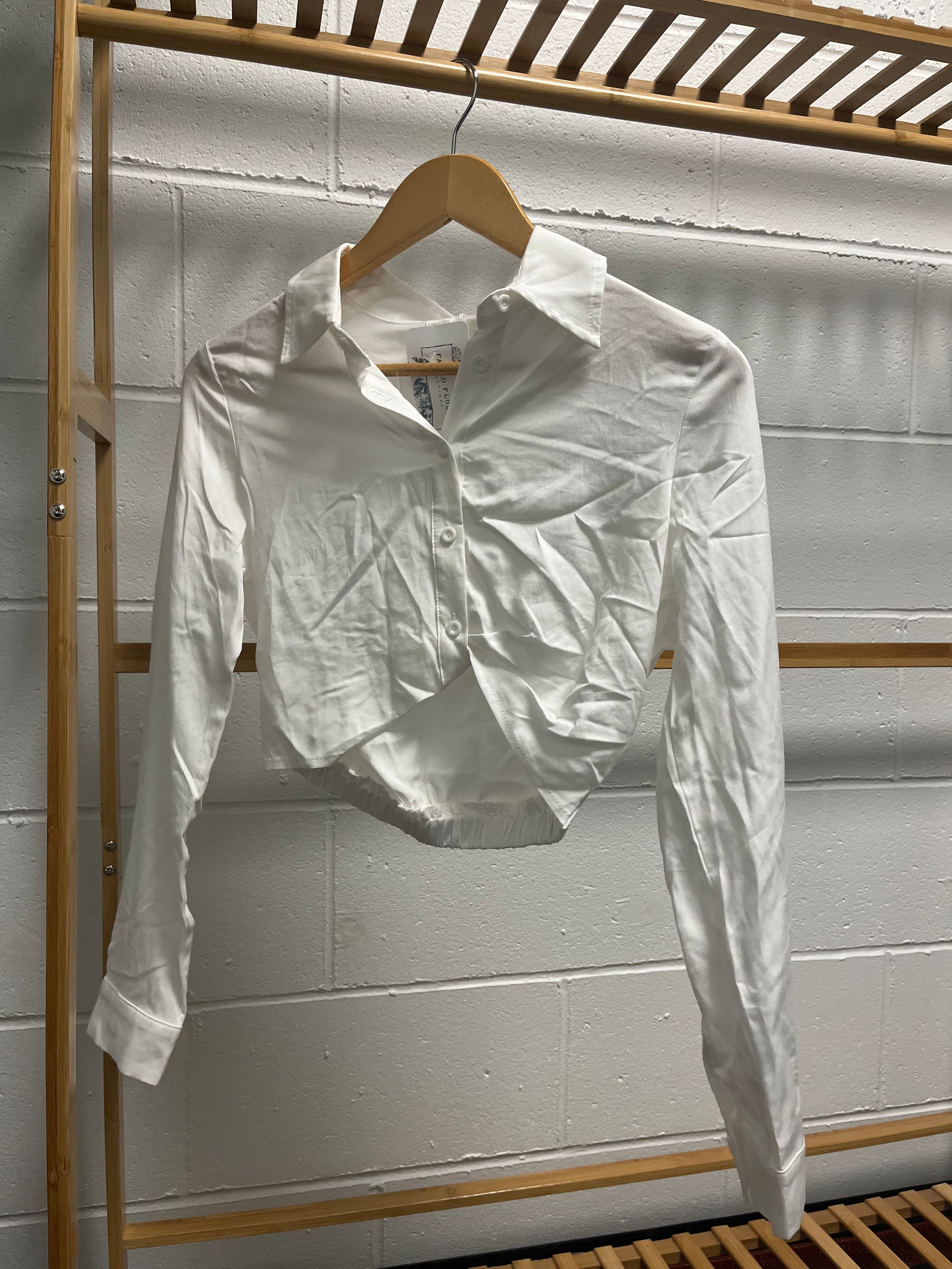 Dress Up White Button Down Cropped Top FINAL SALE