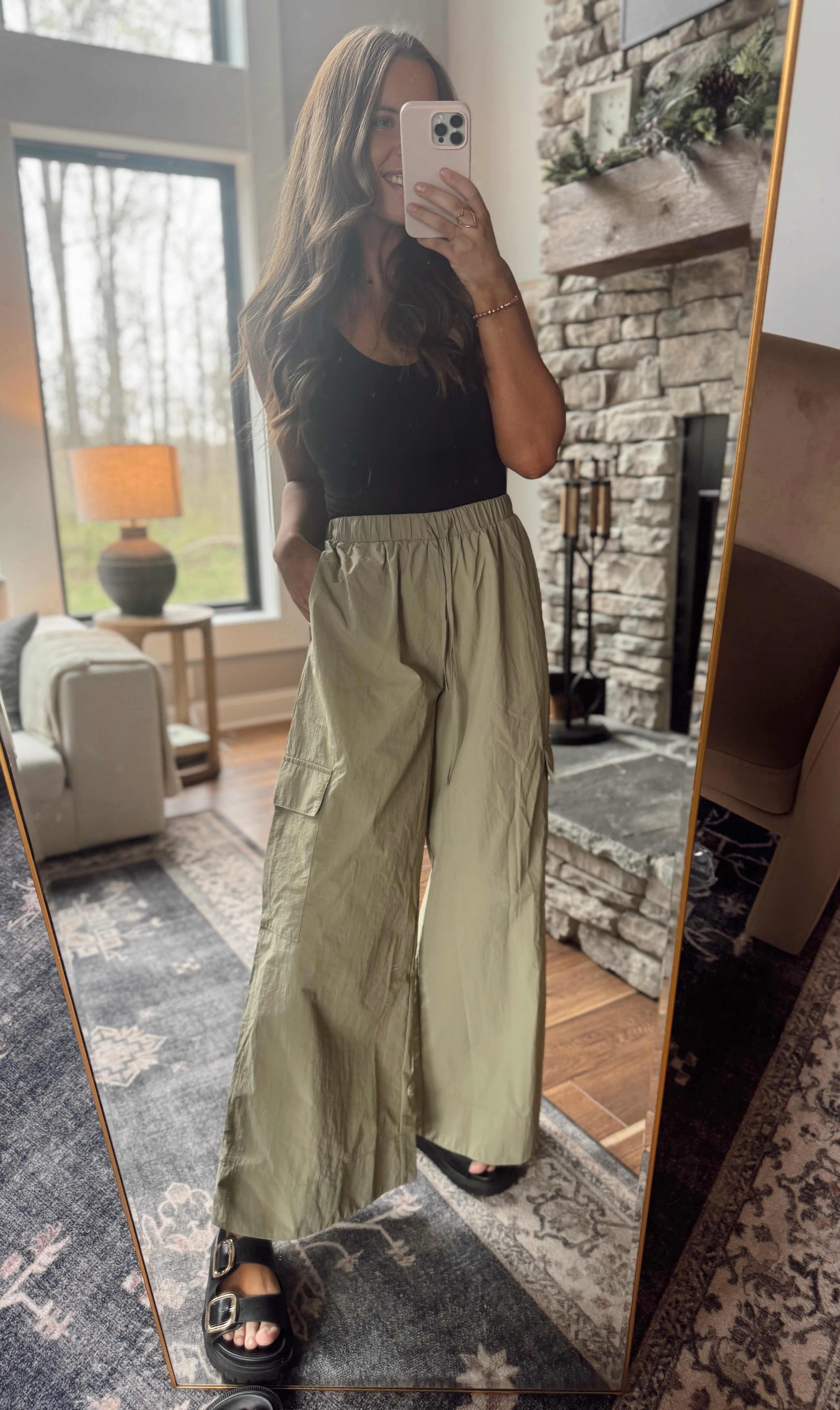 Dusty Olive Cloud Nine Wide Leg Cargo Pants