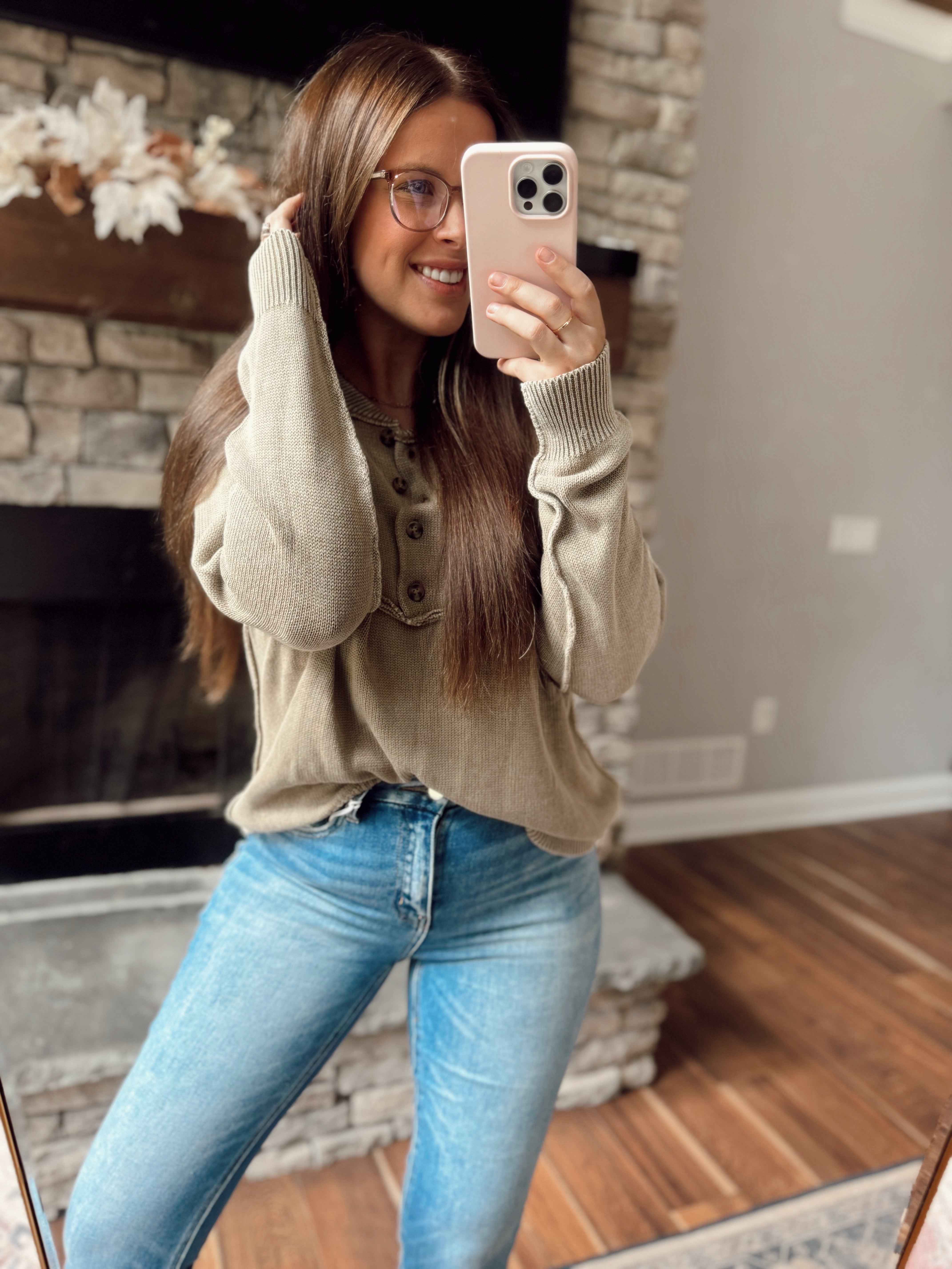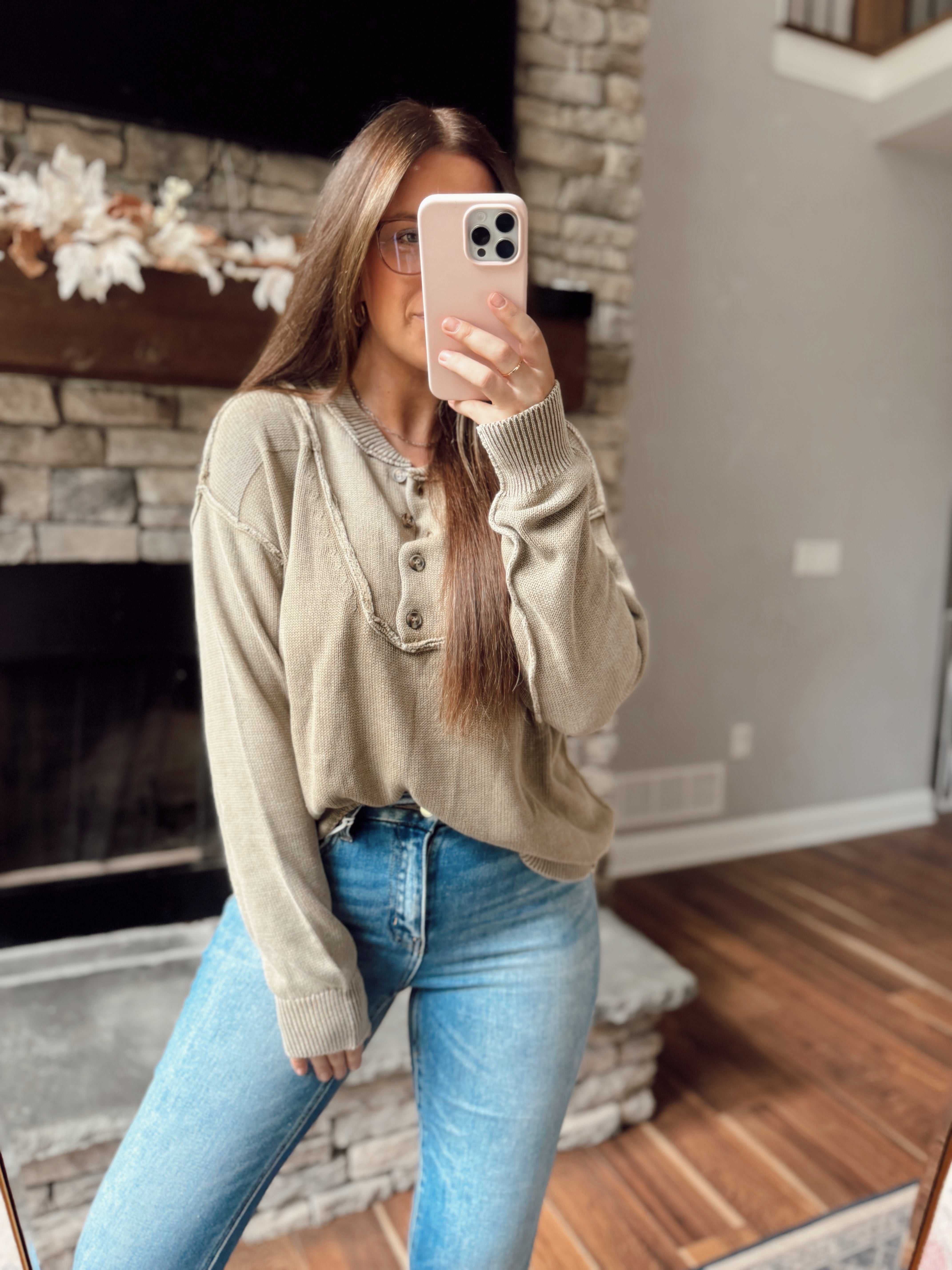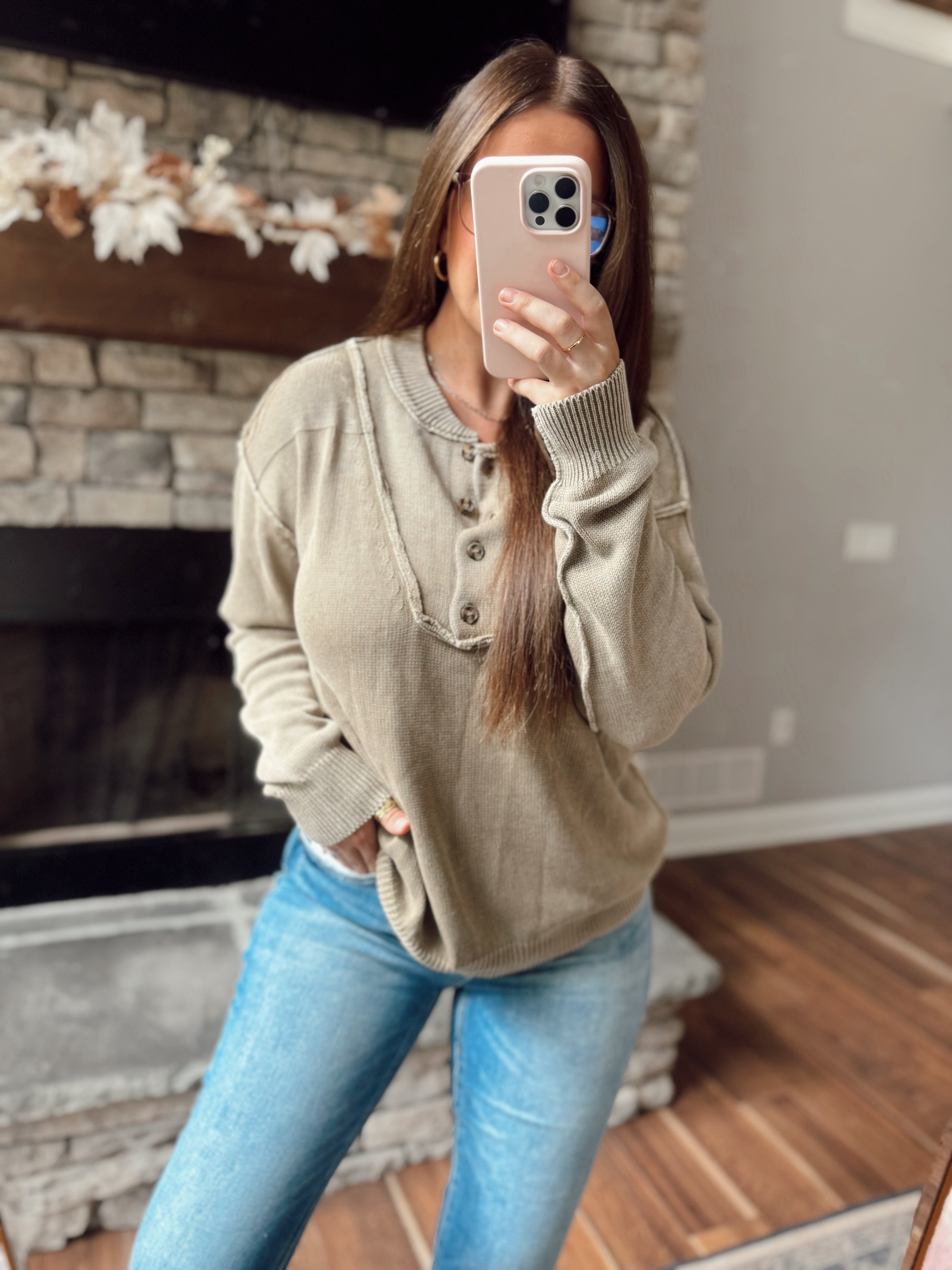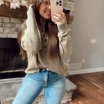 Dusty Roads Olive Mineral-Washed Button Up Knit Sweater