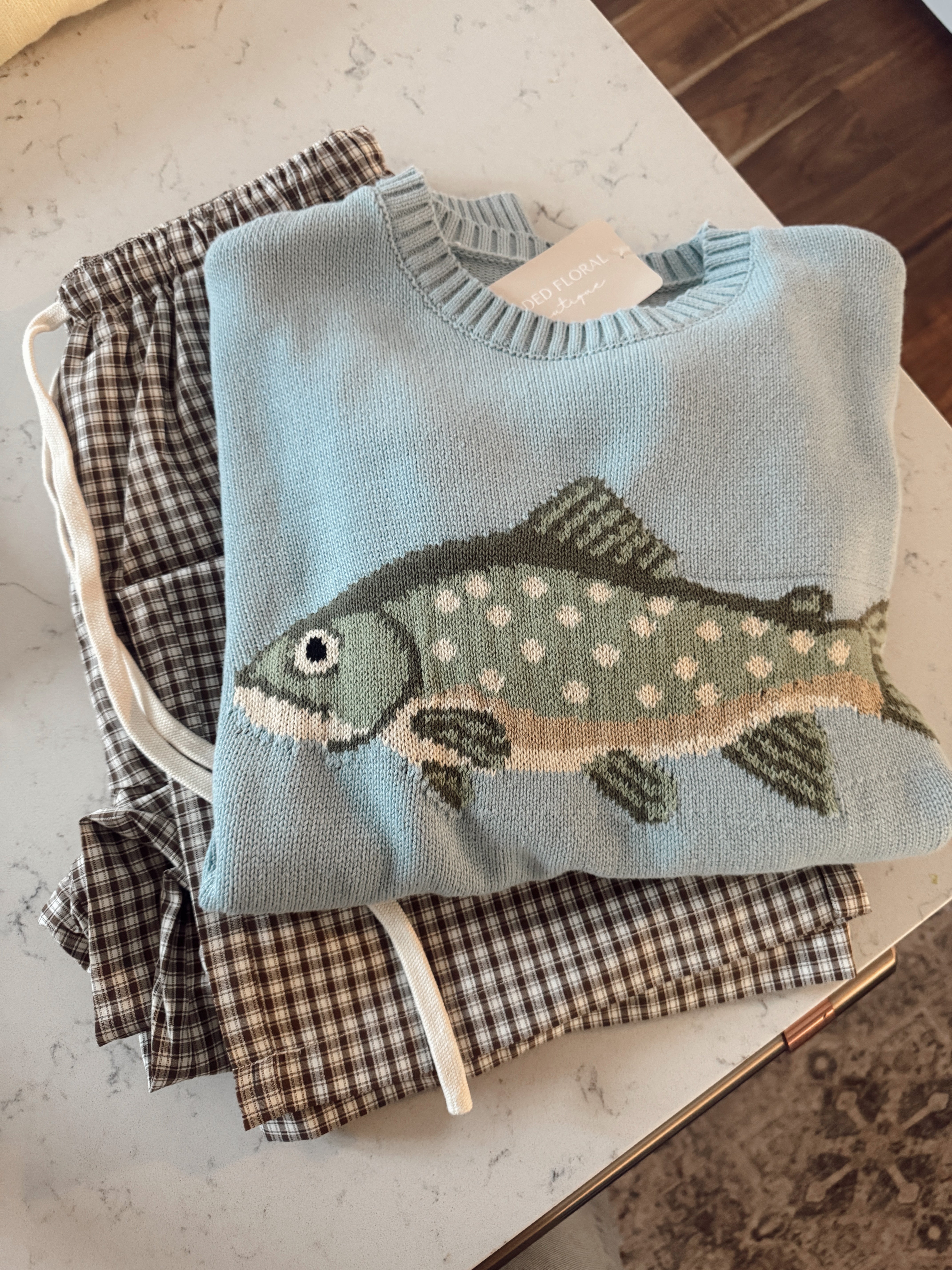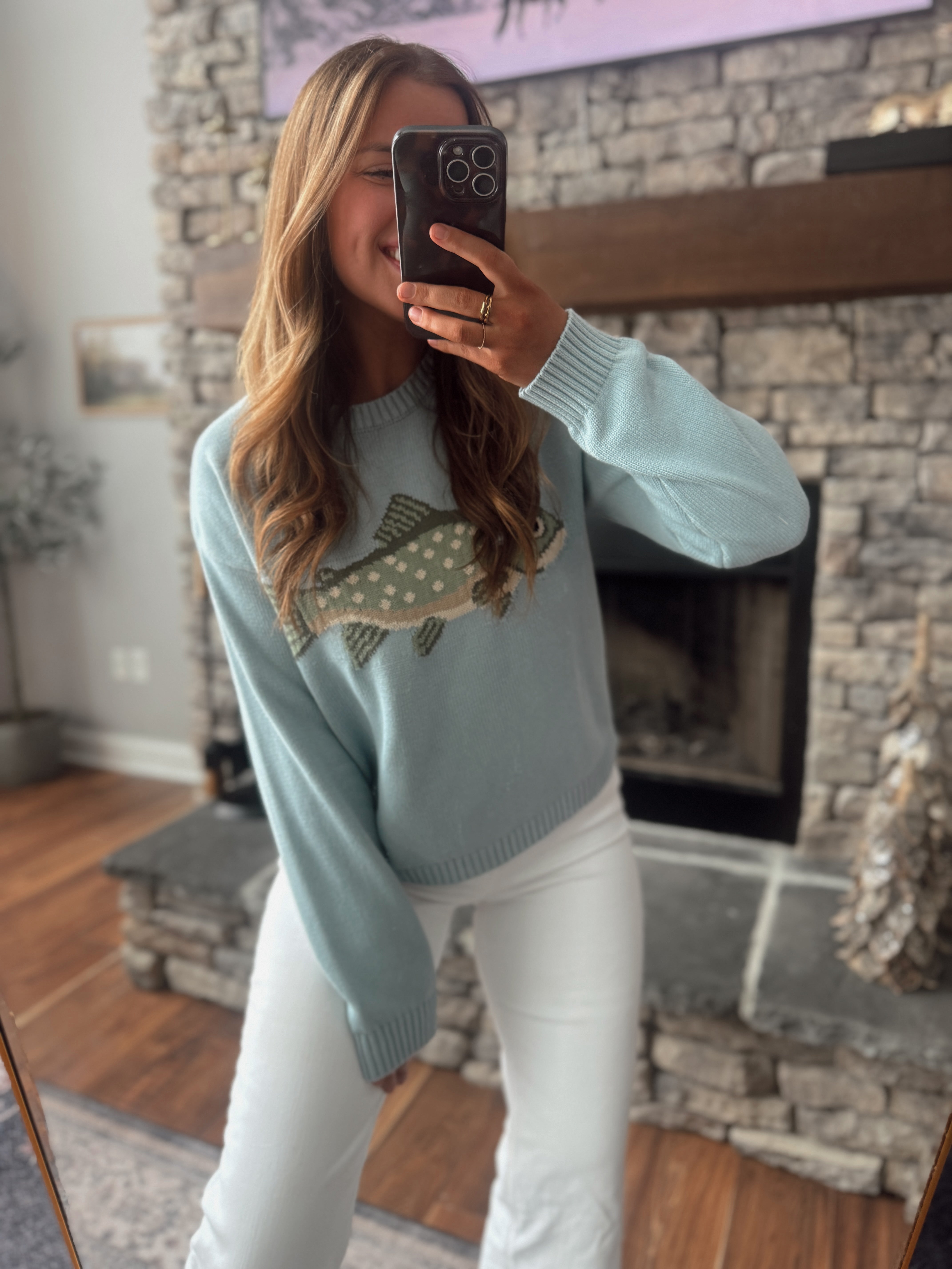 An instant conversation piece with the coziest feel. This Wishlist knit sweater features a playful trout design woven into a soft, mid-weight knit that’s comfy without being bulky. Easy to style, easy to love—this one’s a standout while still feeling neutral and wearable.