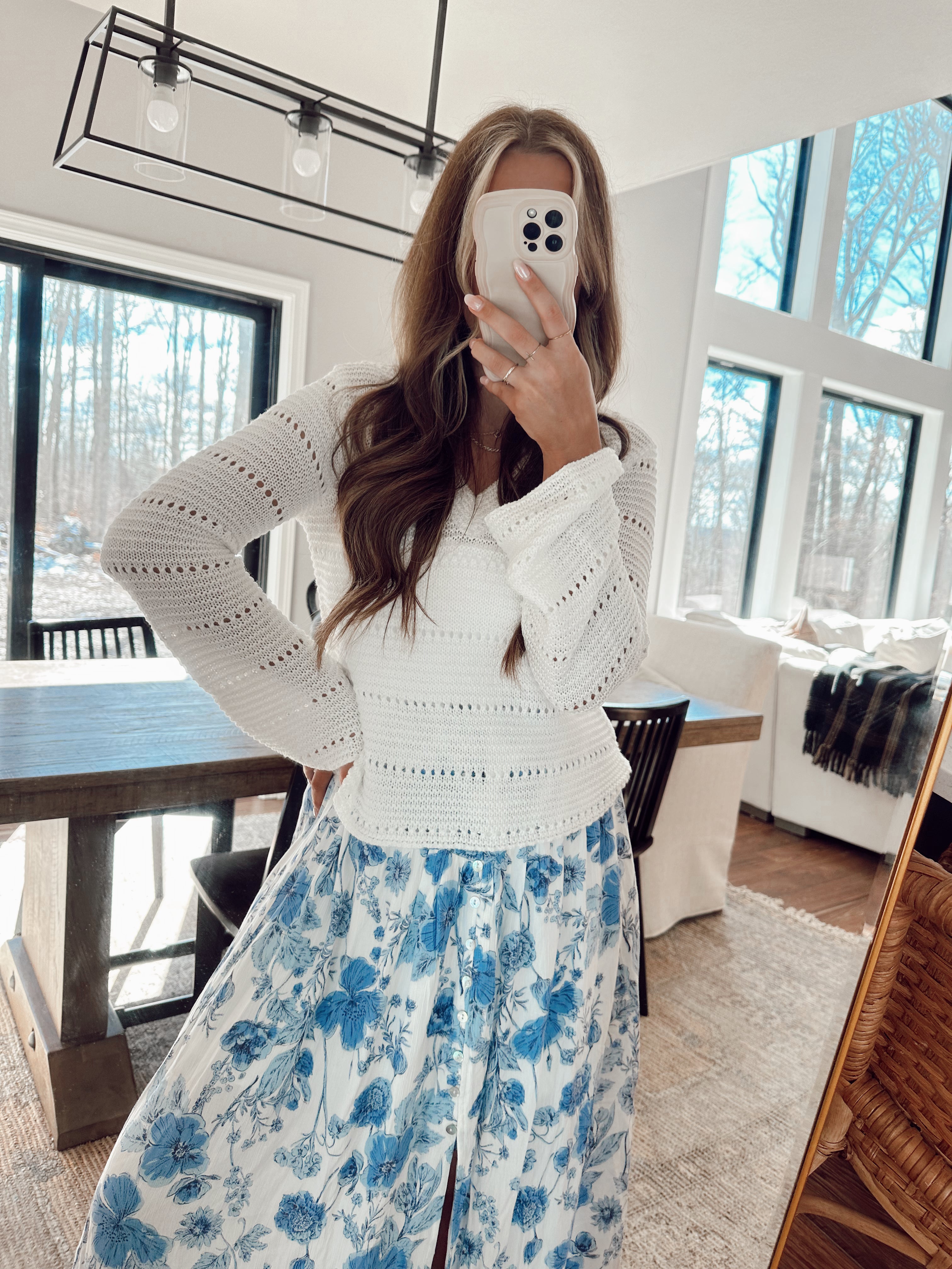 Gorgeous sweater to throw over your maxis or maybe just to wear with denim / shorts! Relaxed fit.. not long but I’d say average for