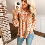 Enough Said Pink Floral Mix Laced Up Peasant Top