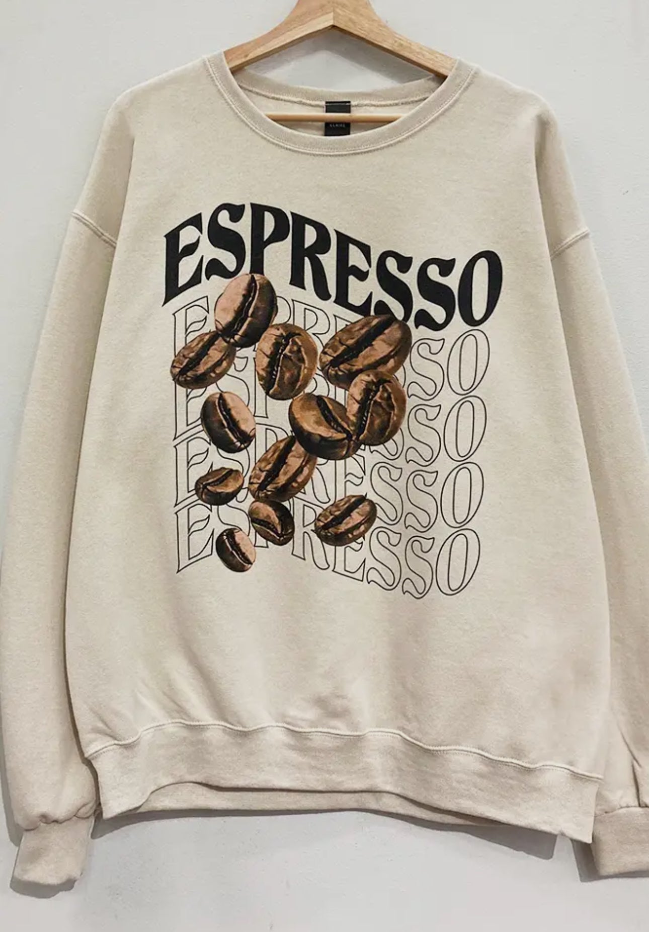 More espresso - less depresso! Oversized fit - in stock and ready to ship