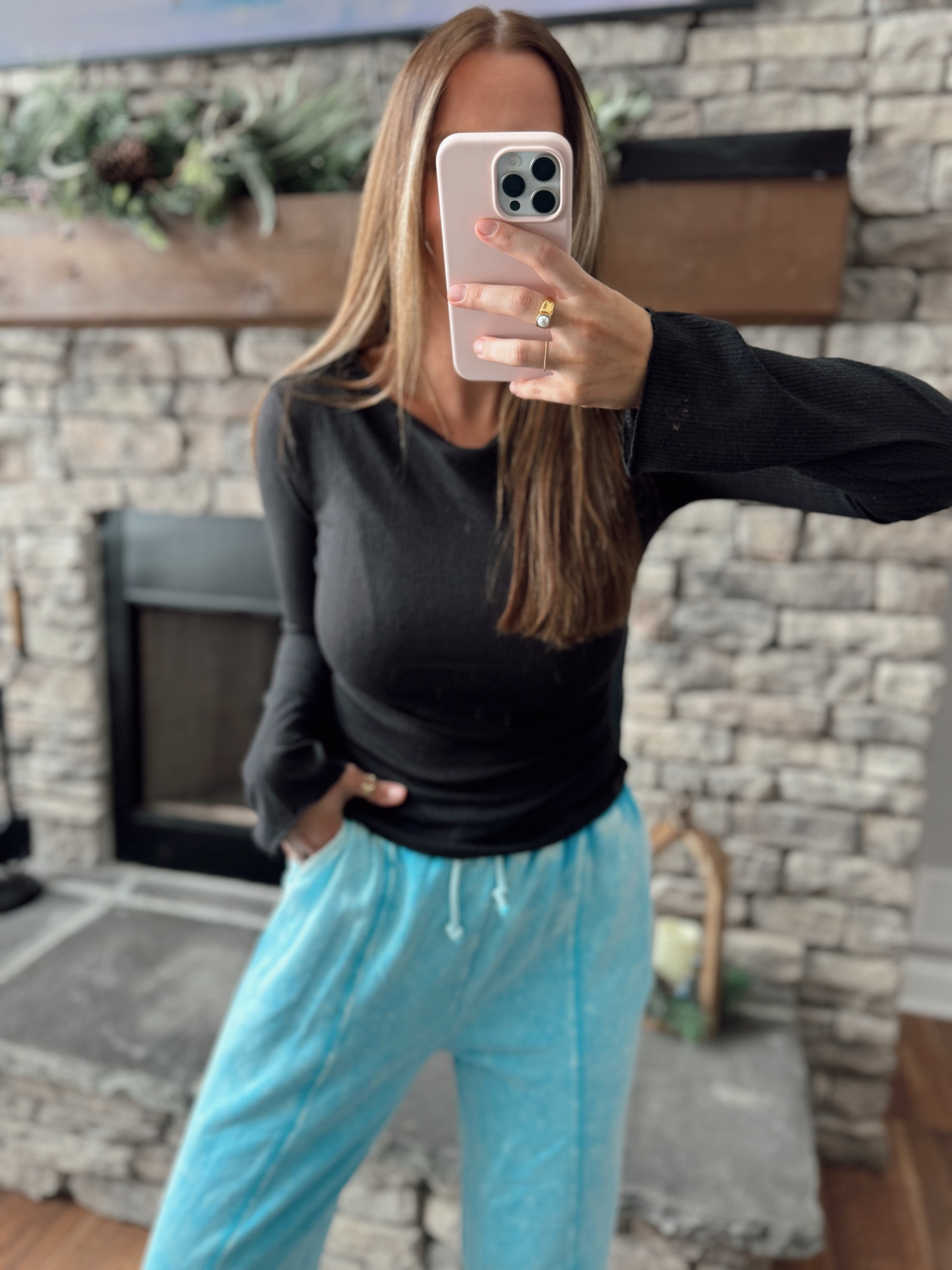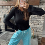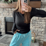 Everyday Basics Black Boat Neck Ribbed Long Sleeve