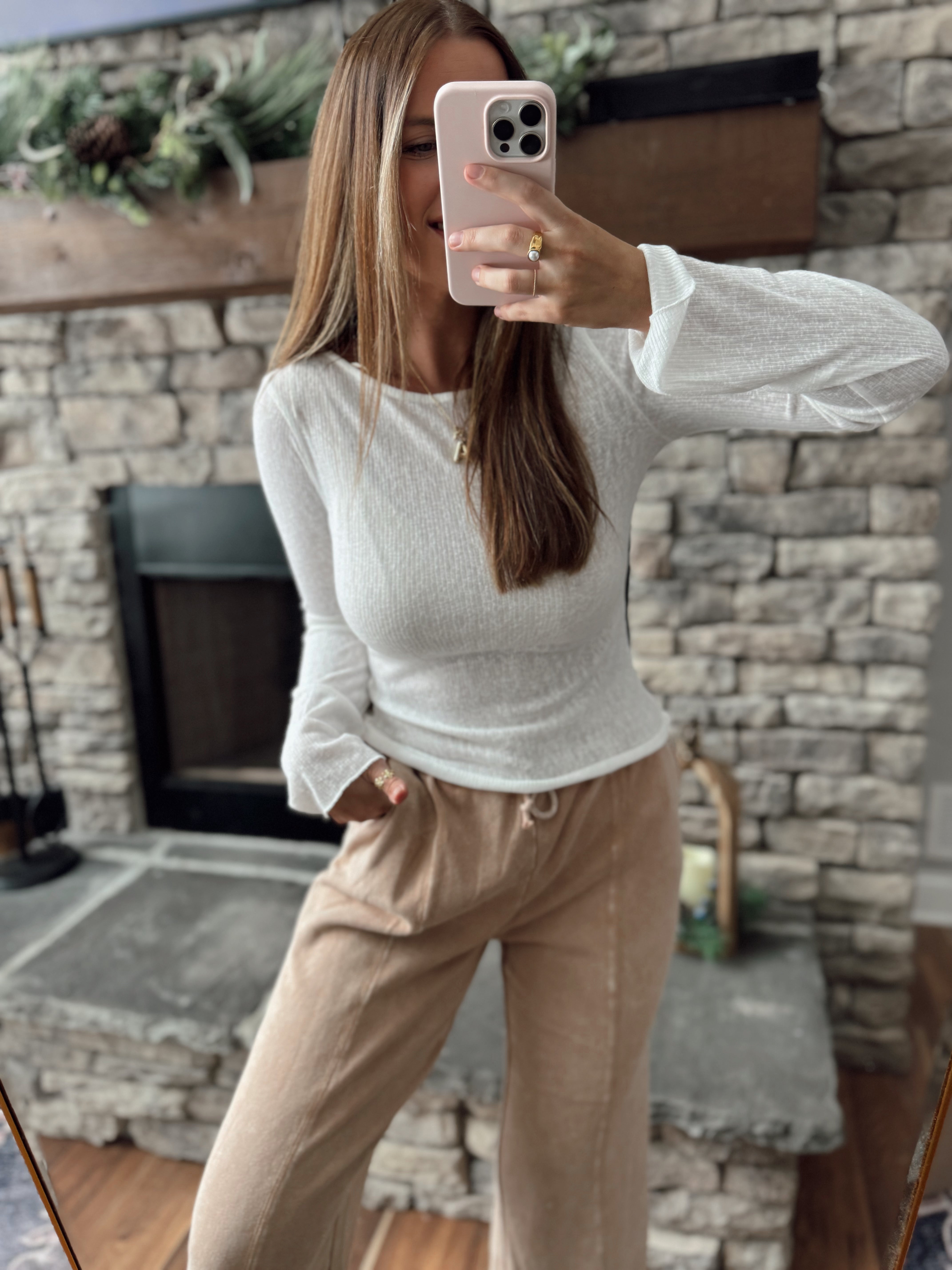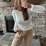Everyday Basics Off White Boat Neck Ribbed Long Sleeve