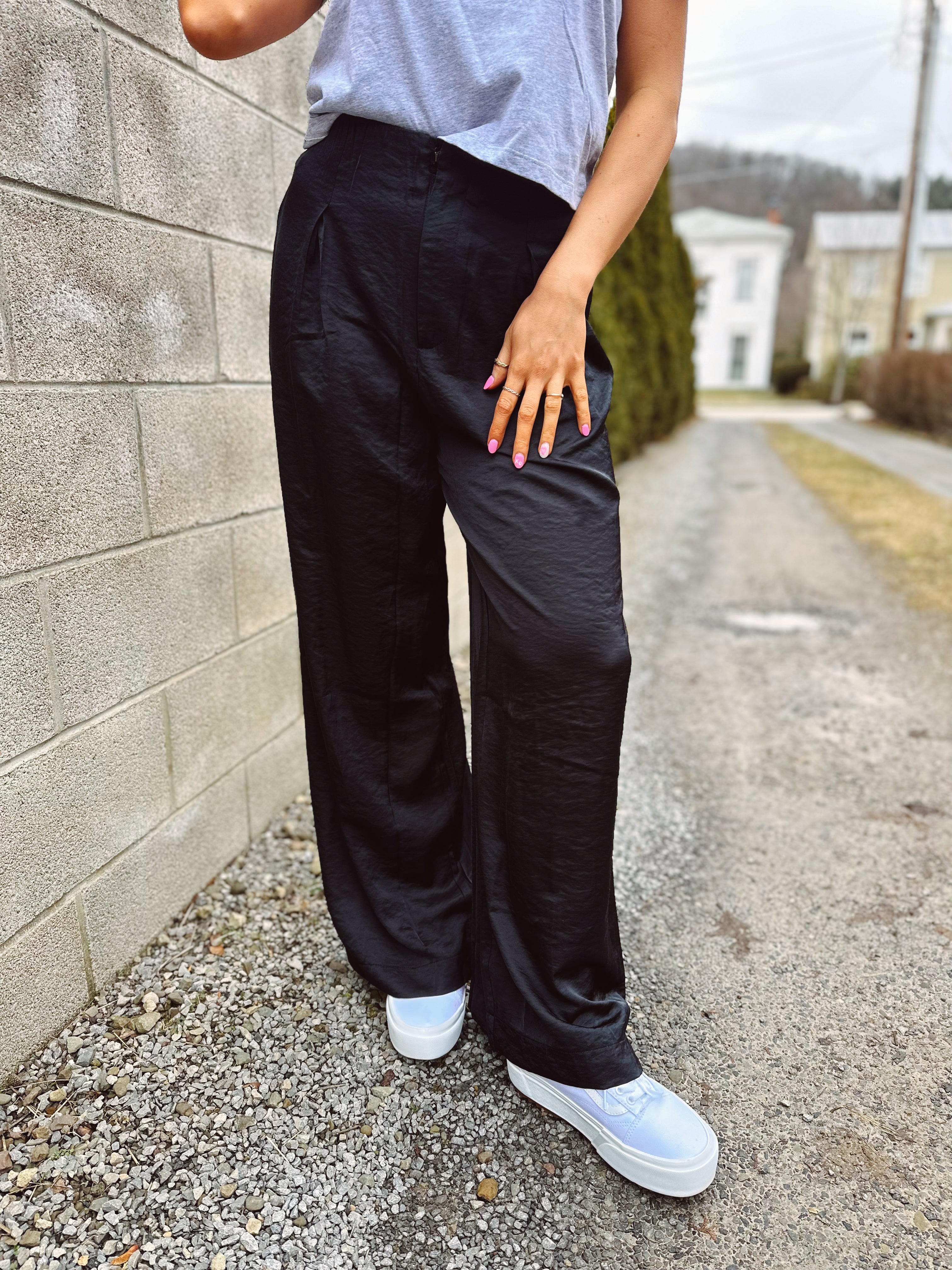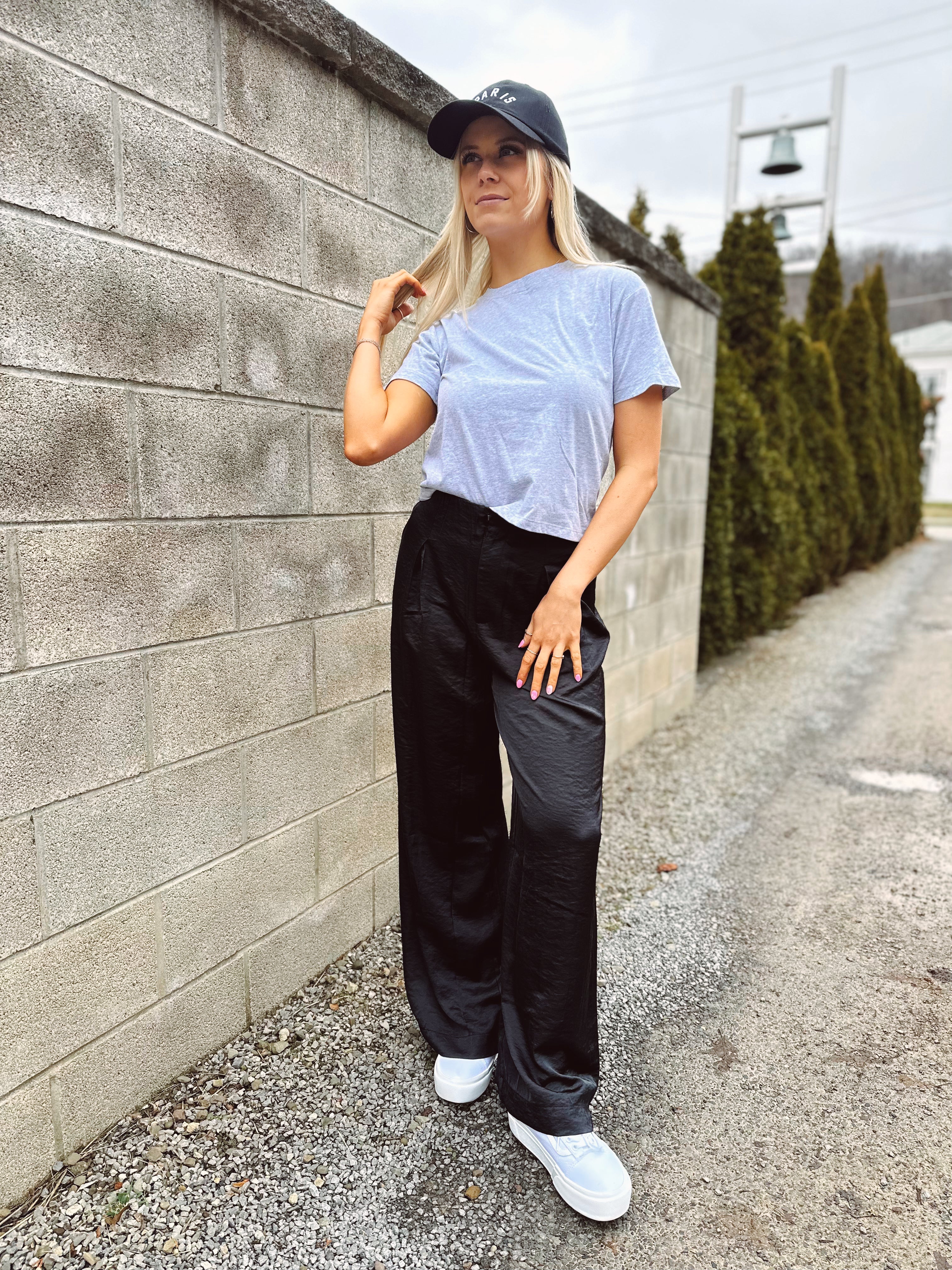 Trendy & comfortable! True in the waist (some wiggle room) and wide legged! dress up for our offices girlys or down for a casual look
