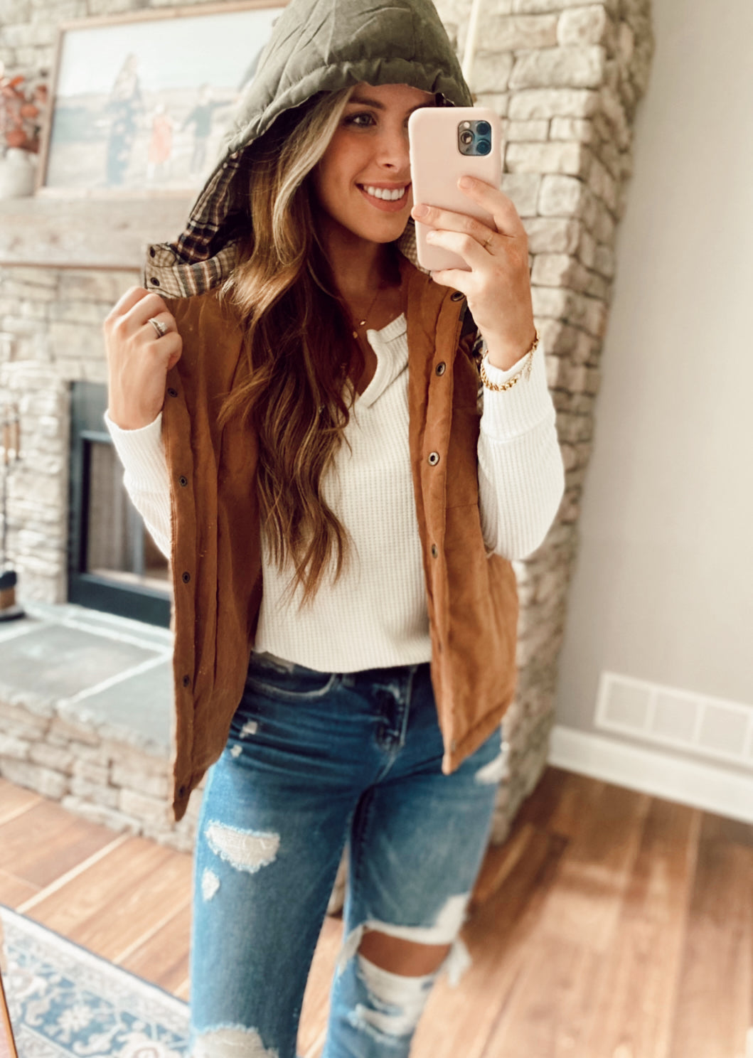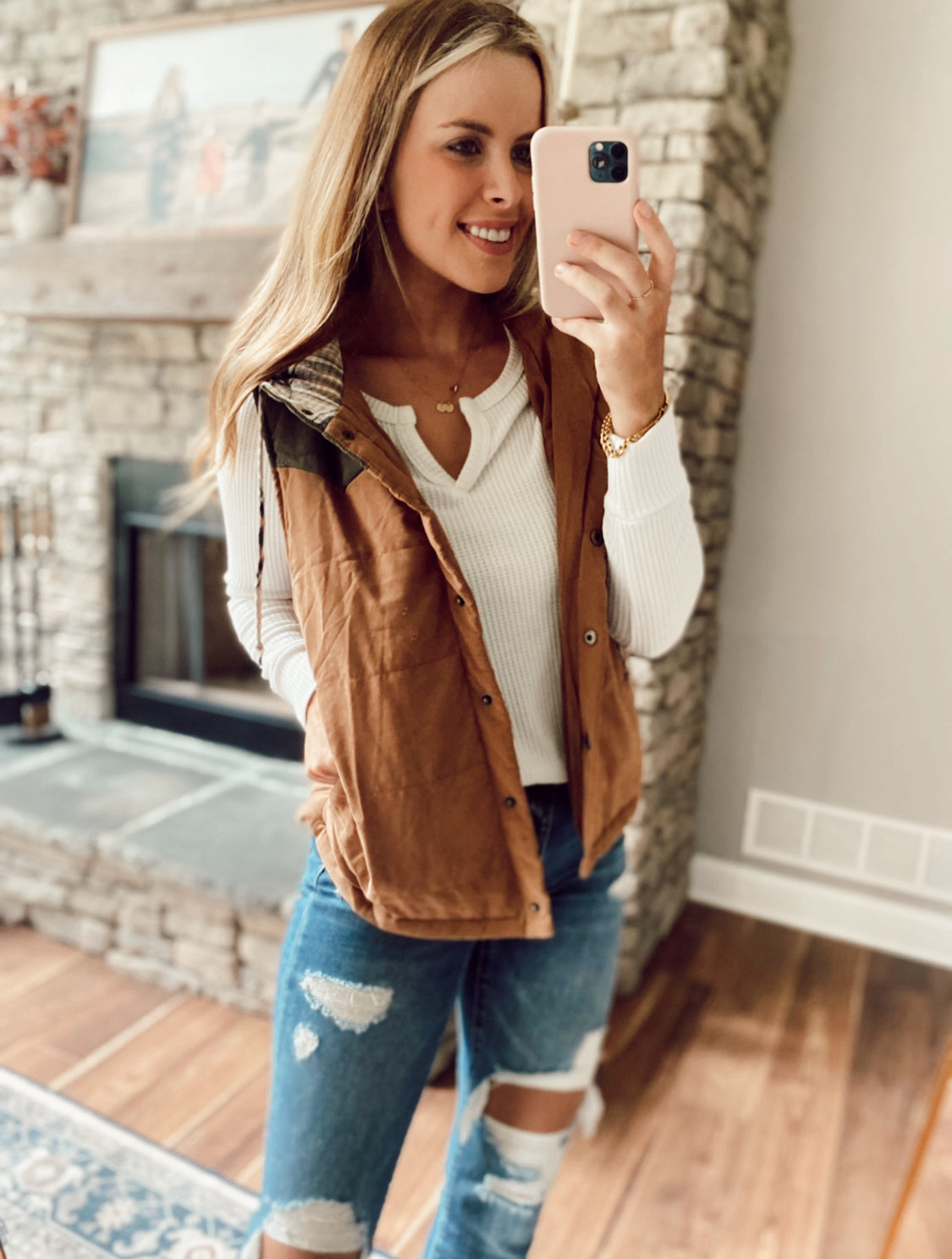 Fallin' For You Colorblock Plaid Hoodie Vest