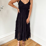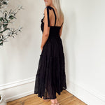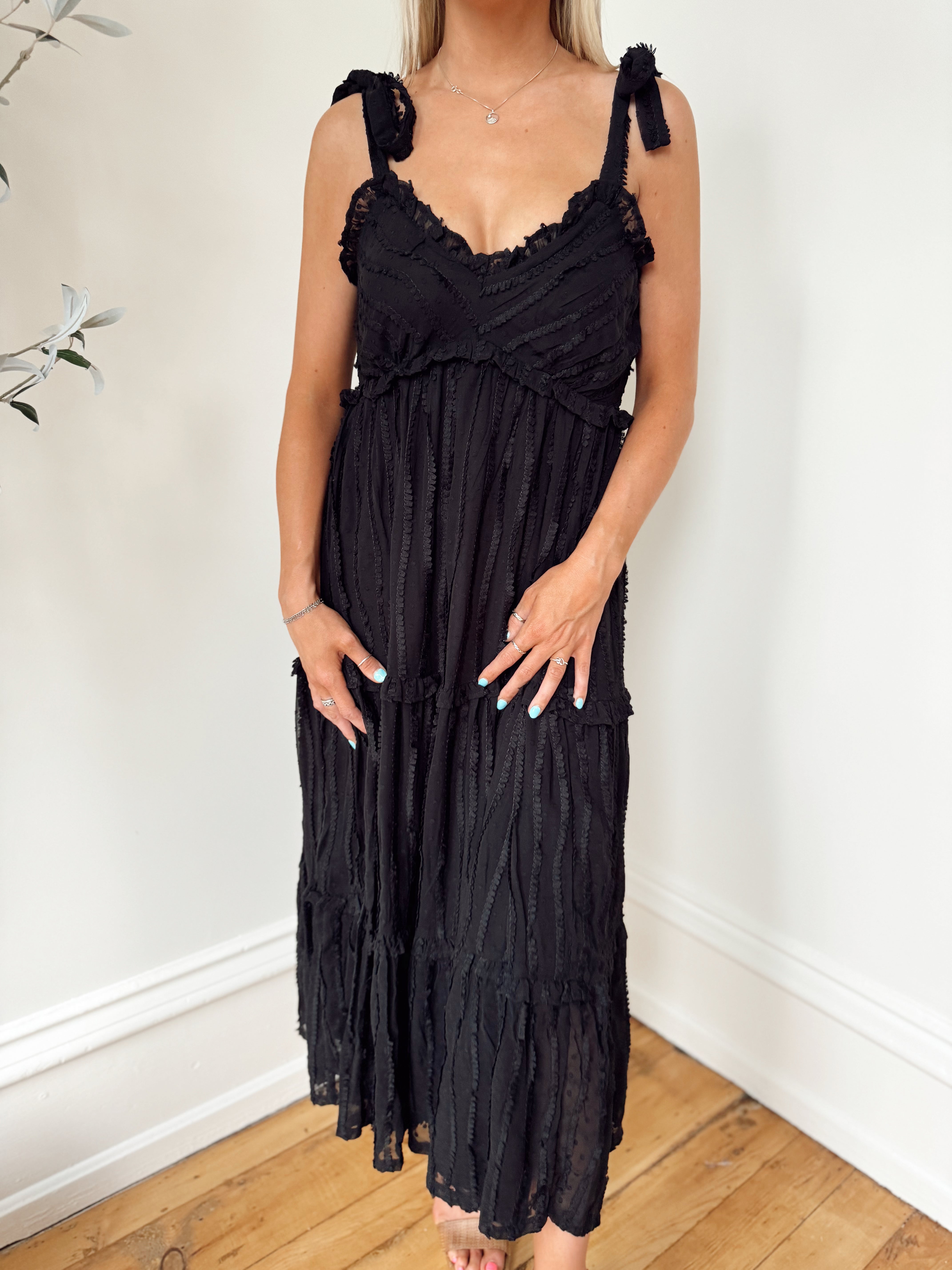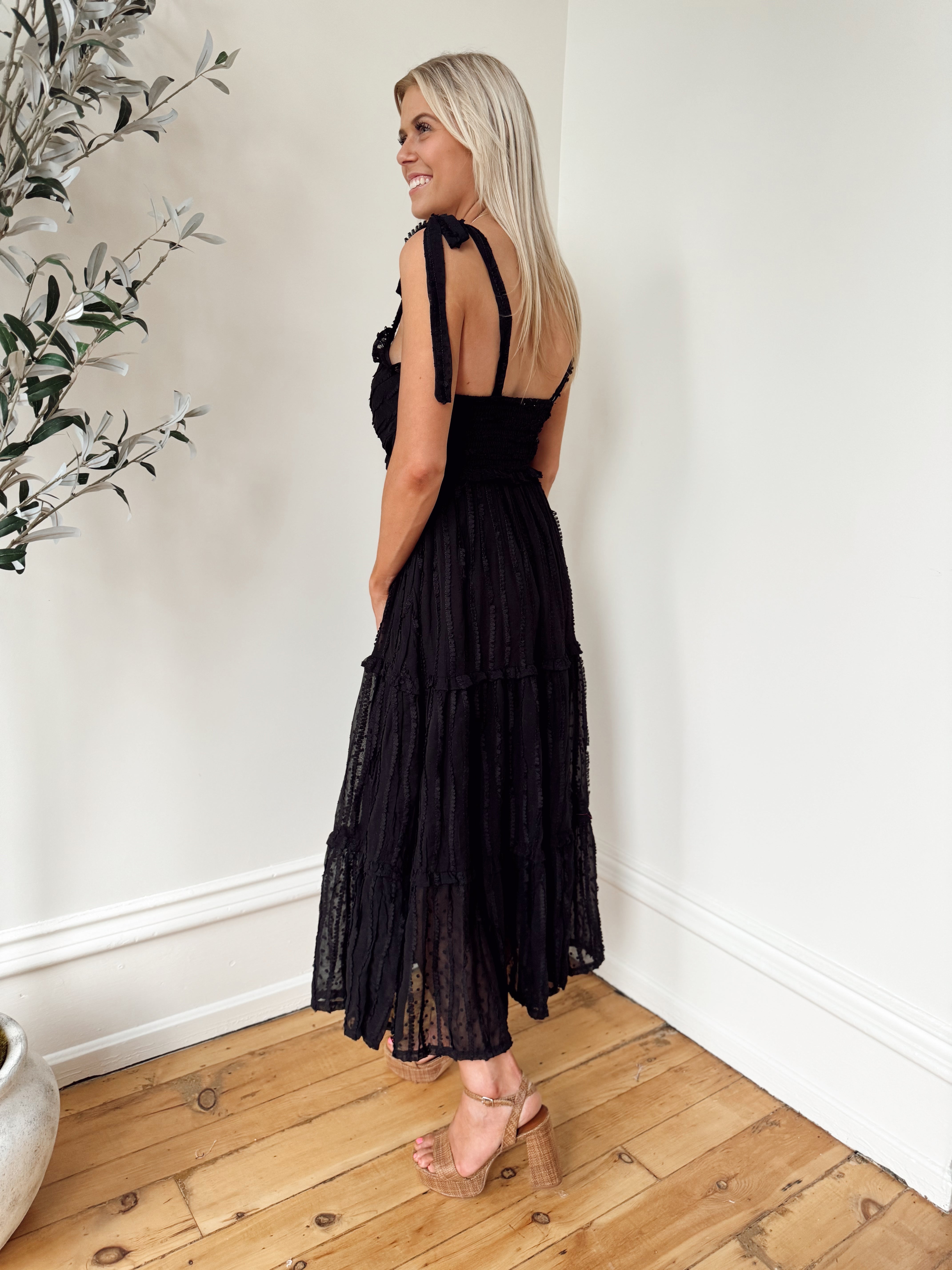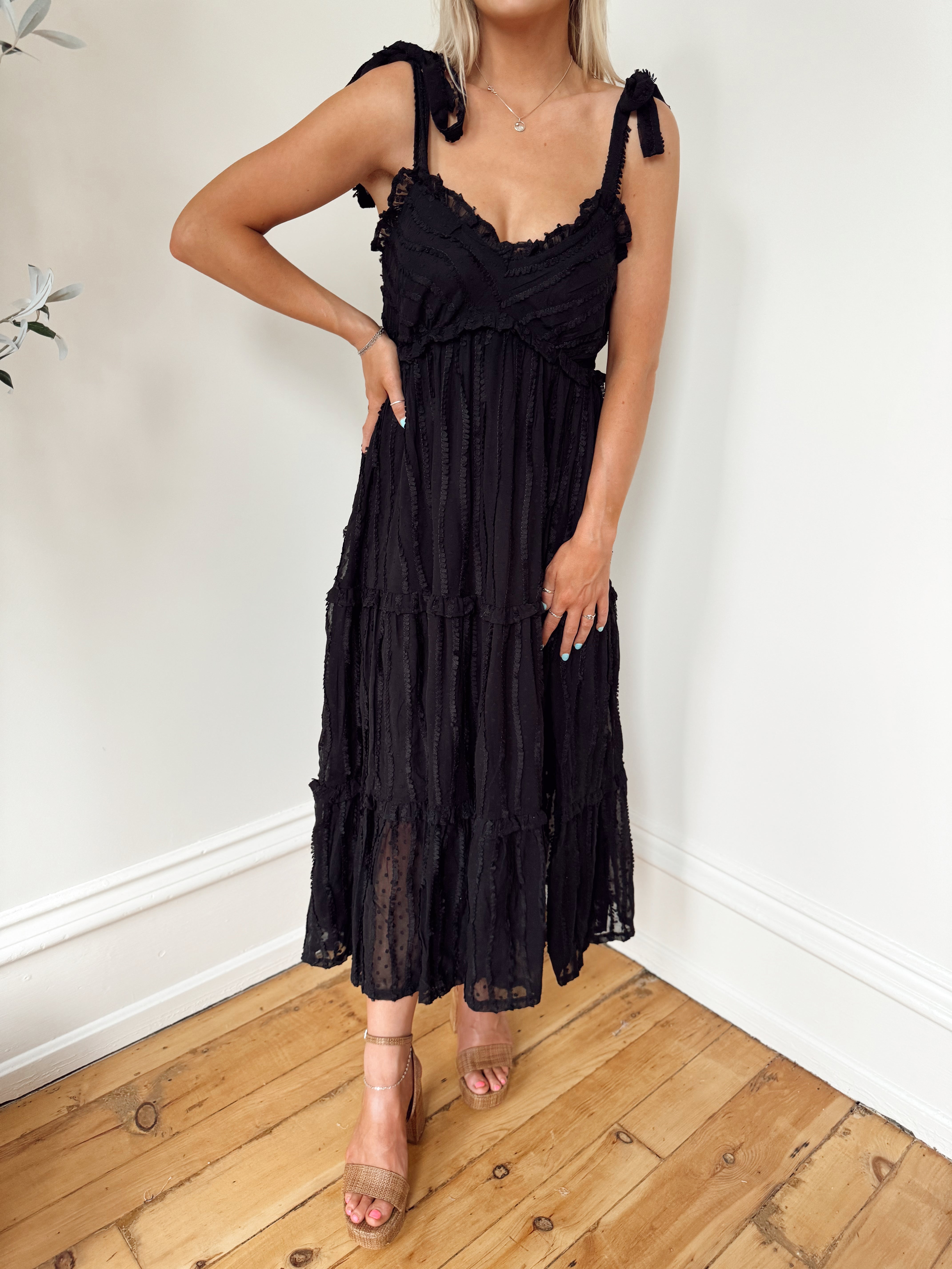 Flawless Presence Black Textured Tie-Shoulder Midi
